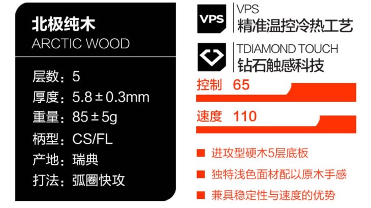 Stiga斯帝卡 Arctic Wood北极木七剑寒剑5层纯木