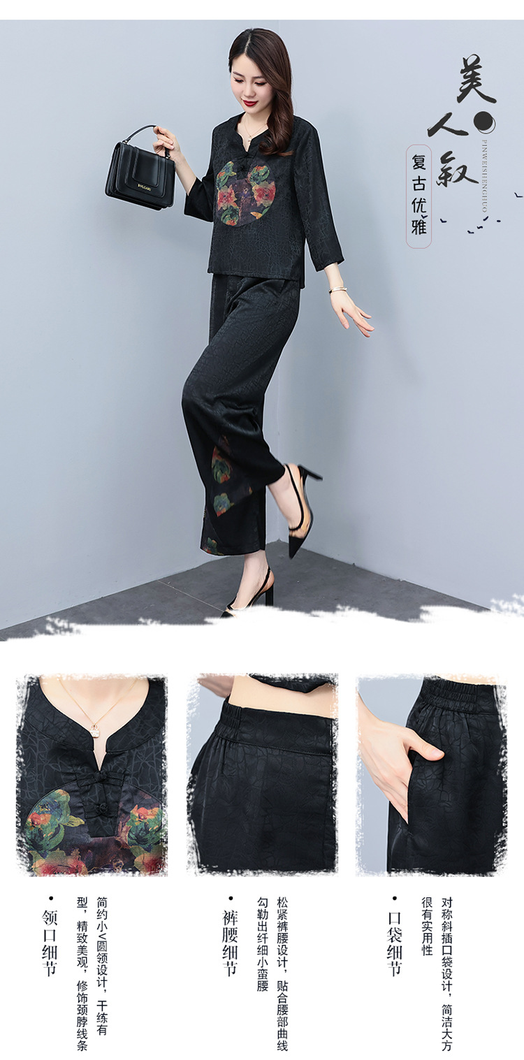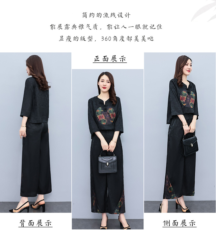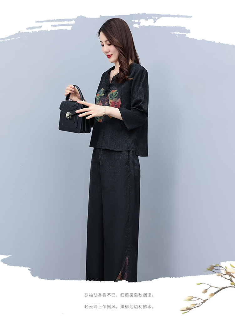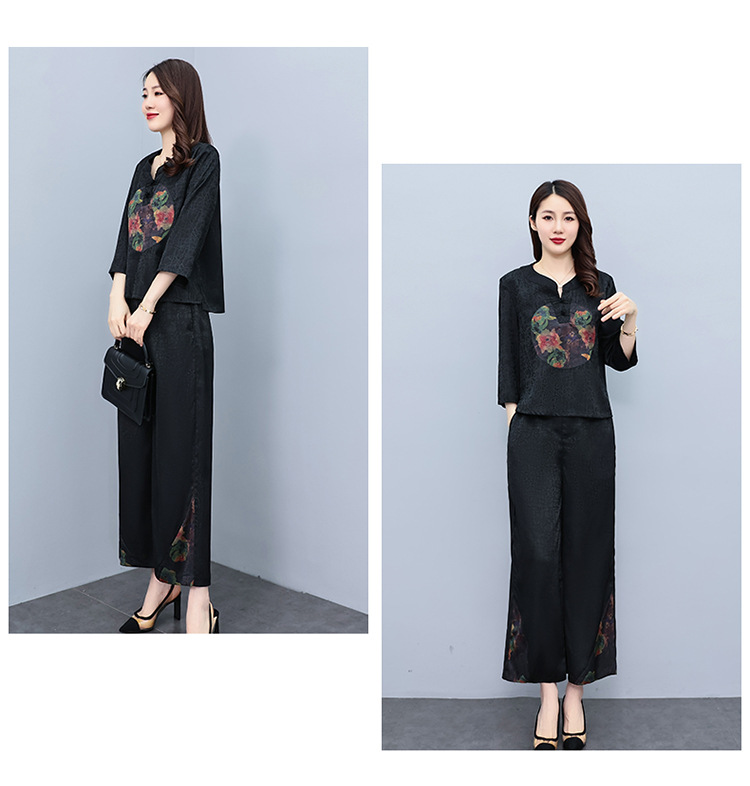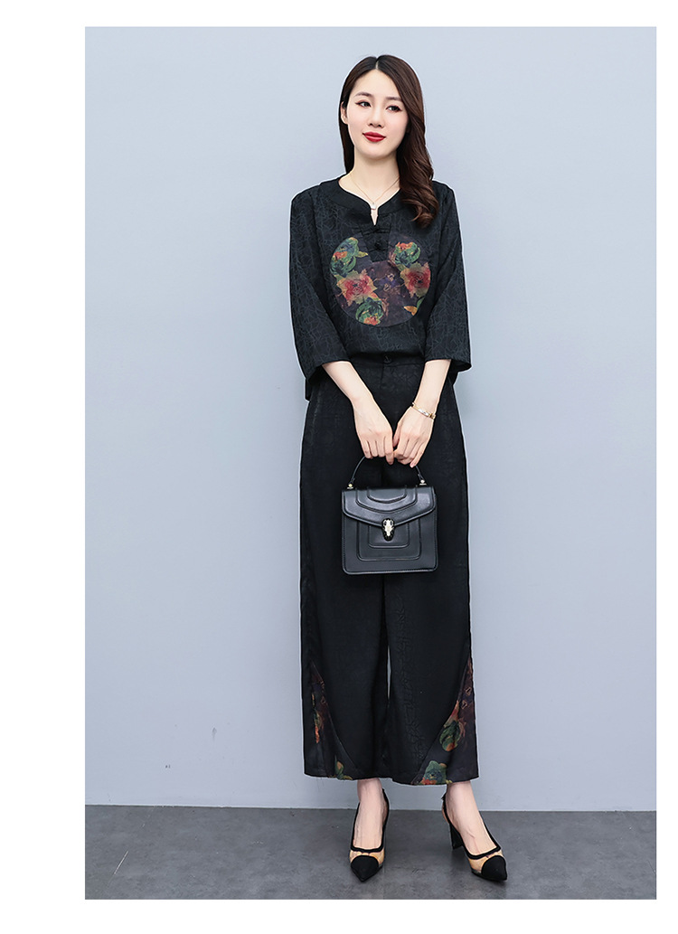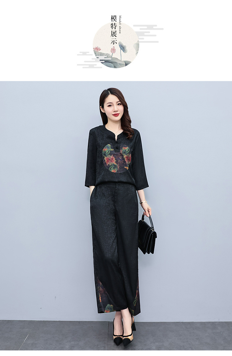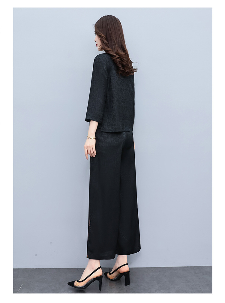 (秋季上新)HXY803香云纱2022夏新款高端真丝时尚洋气复古套装阔腿裤两件套【XP】