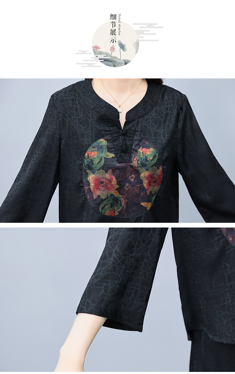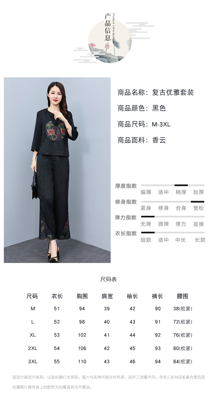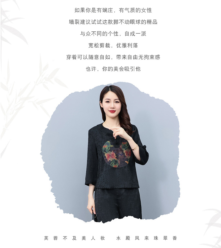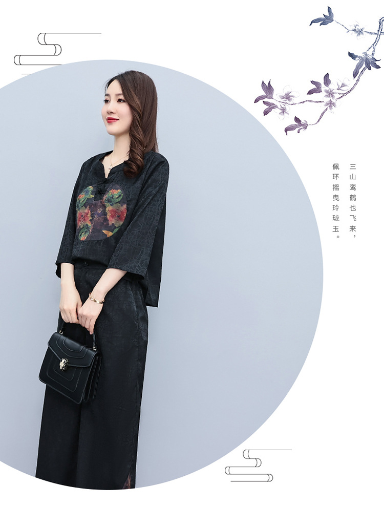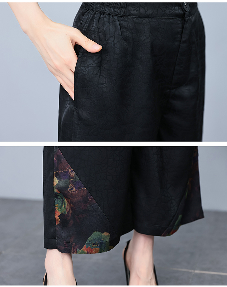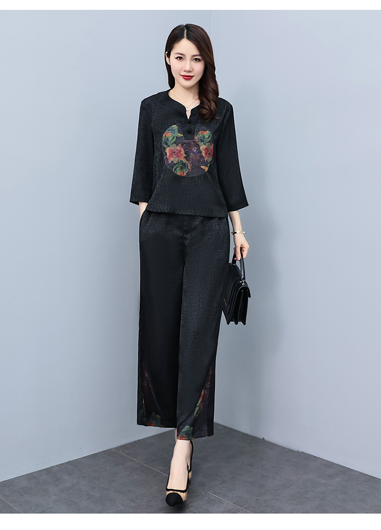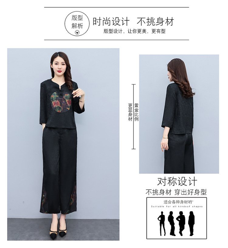 (秋季上新)HXY803香云纱2022夏新款高端真丝时尚洋气复古套装阔腿裤两件套【XP】