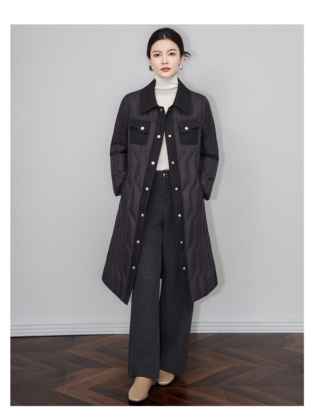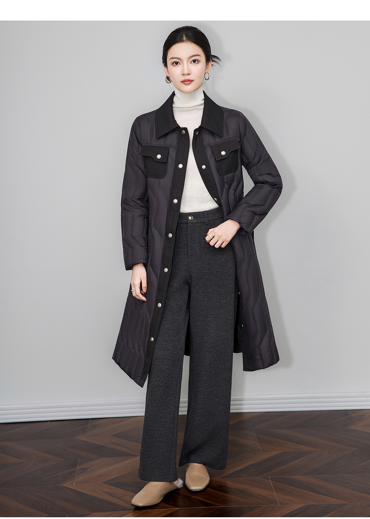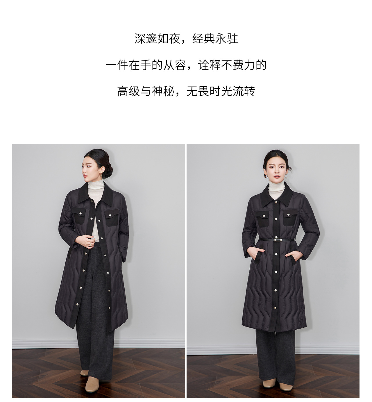 「高货wl」全新升级【铂金会员735/天猫999/差价264】(03349)洛诗琳轻奢90白鹅绒羽绒服2025冬季显瘦过膝长款保暖外套
