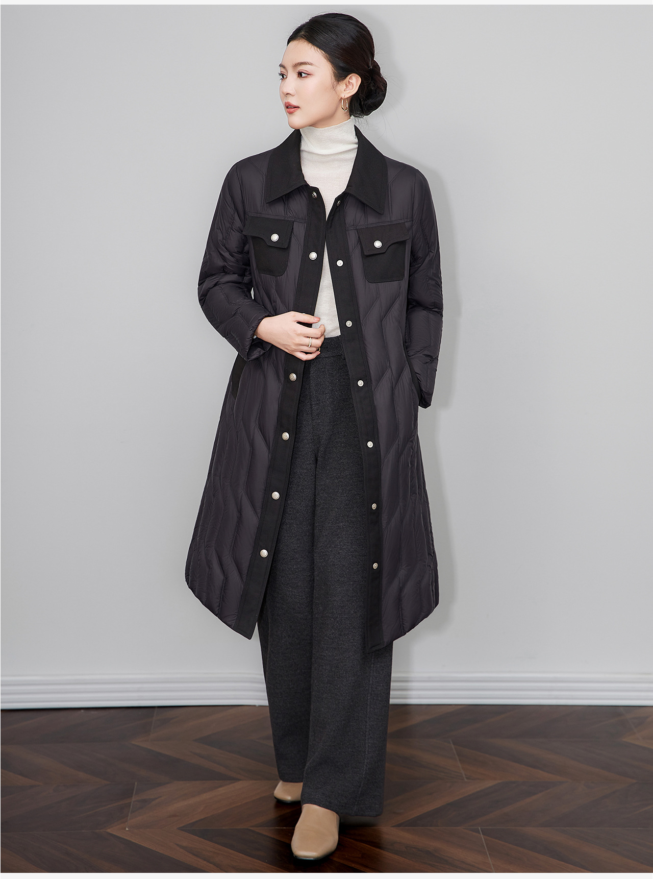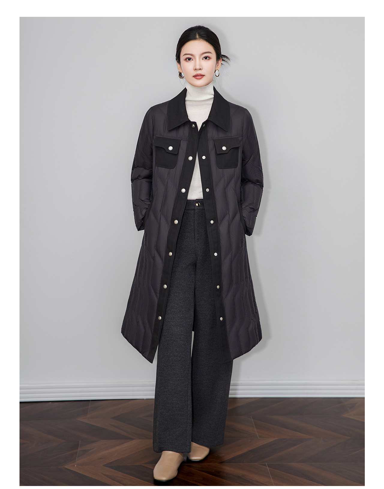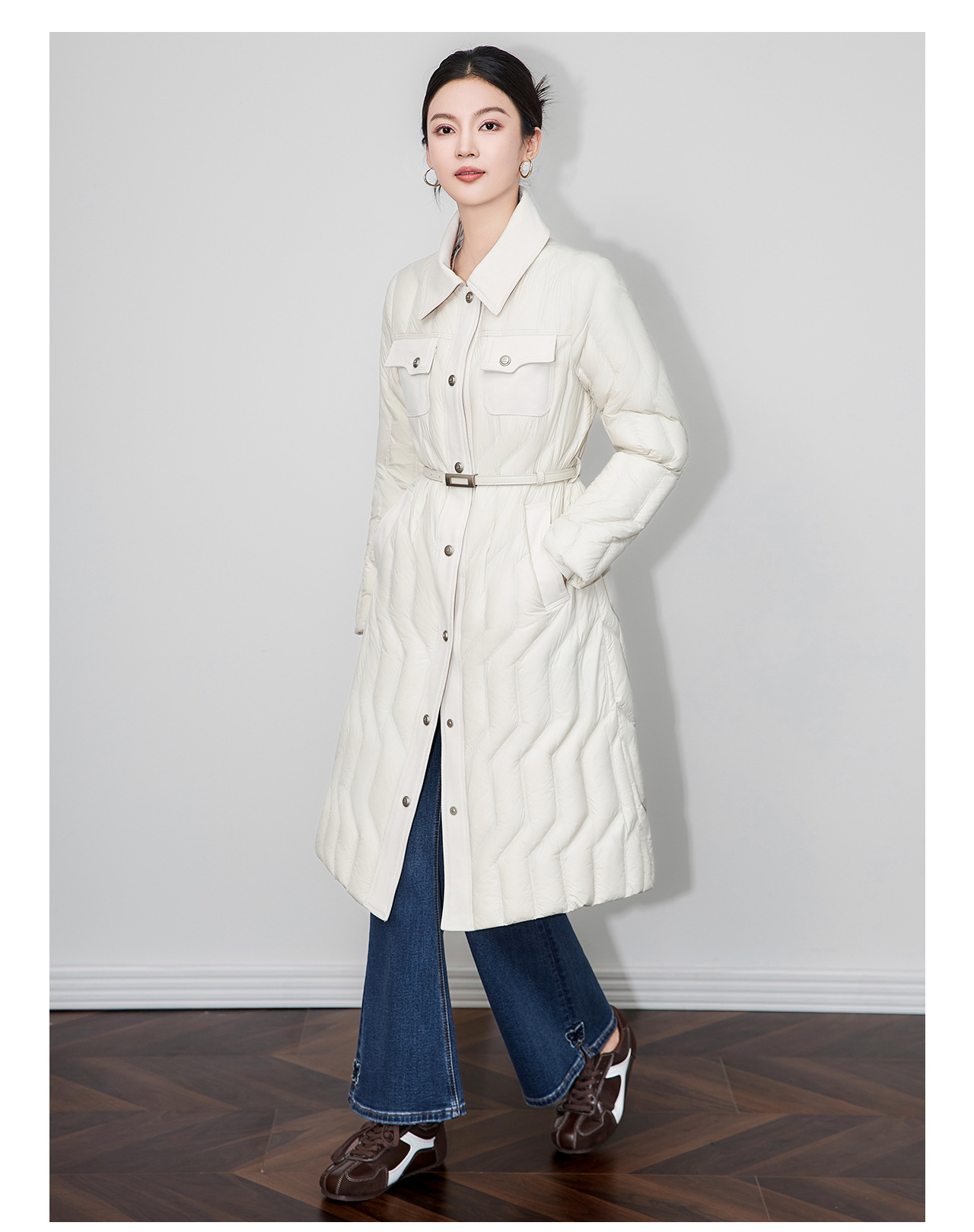 「高货wl」全新升级【铂金会员735/天猫999/差价264】(03349)洛诗琳轻奢90白鹅绒羽绒服2025冬季显瘦过膝长款保暖外套