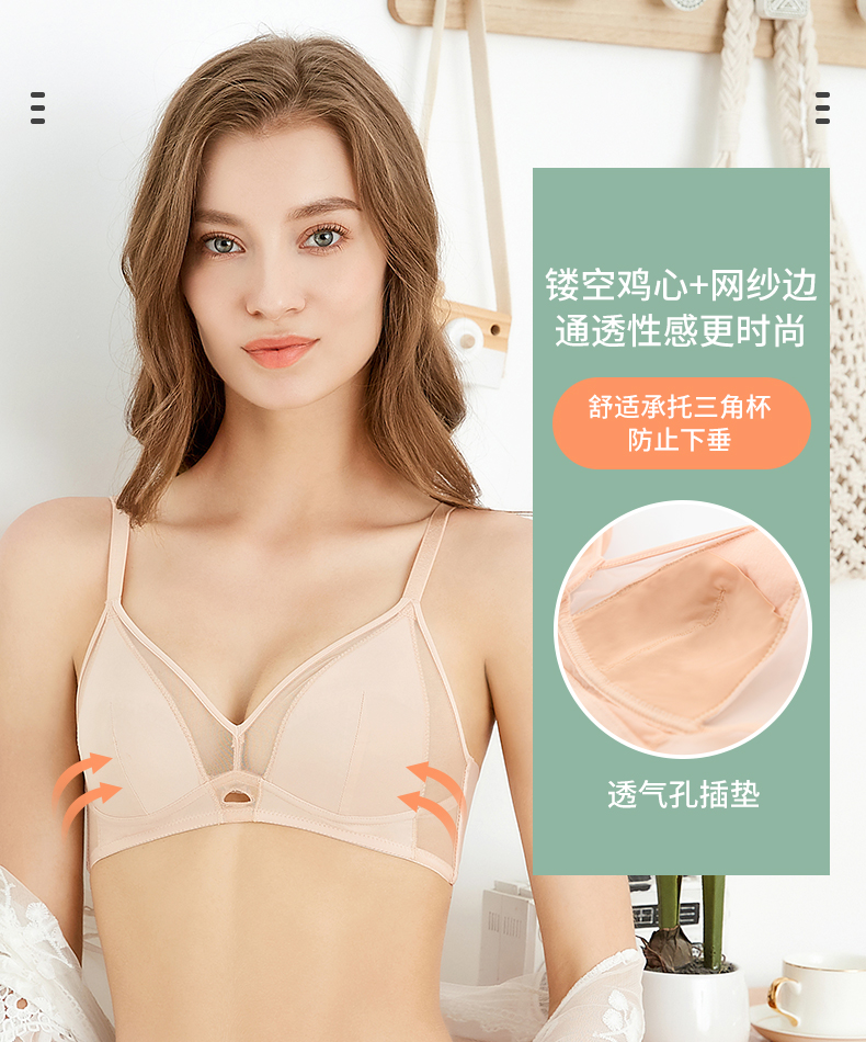 贝佳人新品镂空鸡心性感内衣透气孔三角杯无钢圈文胸弹力网纱边BW32804
