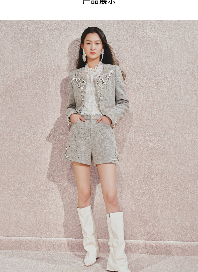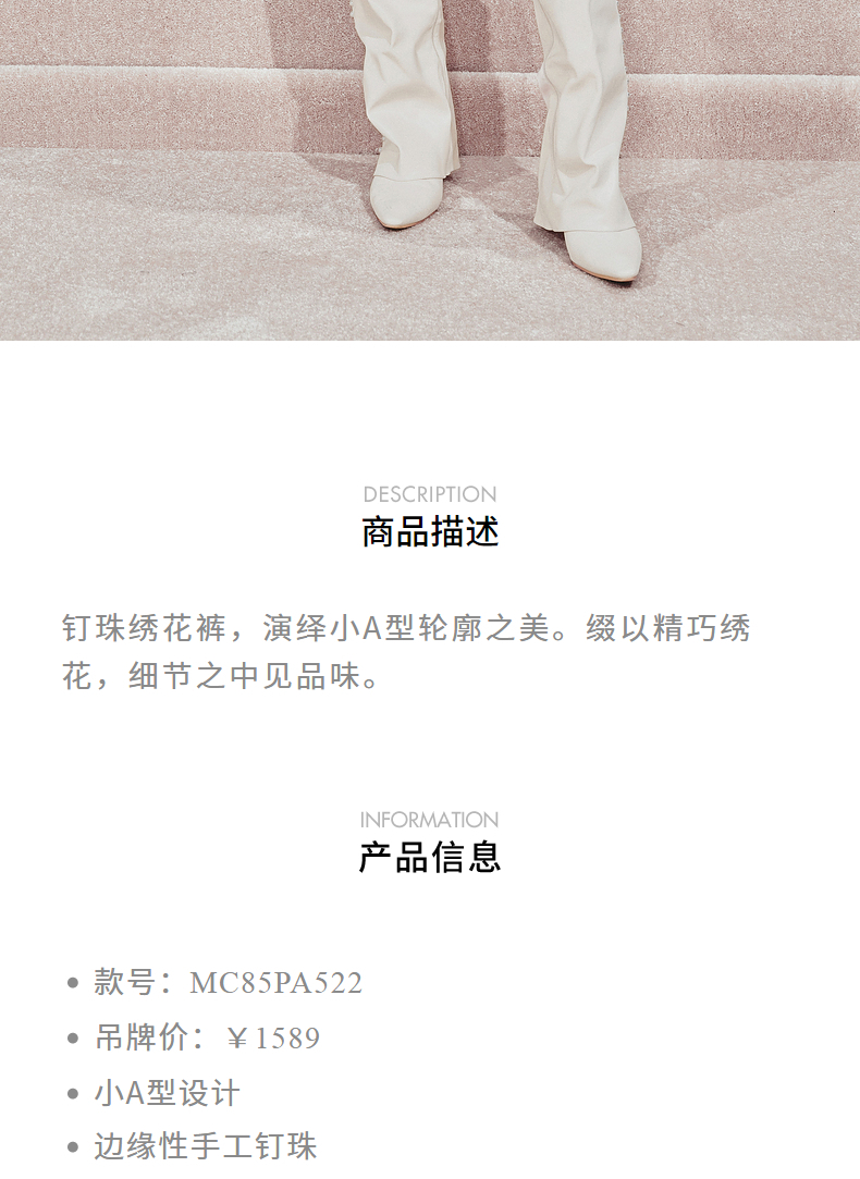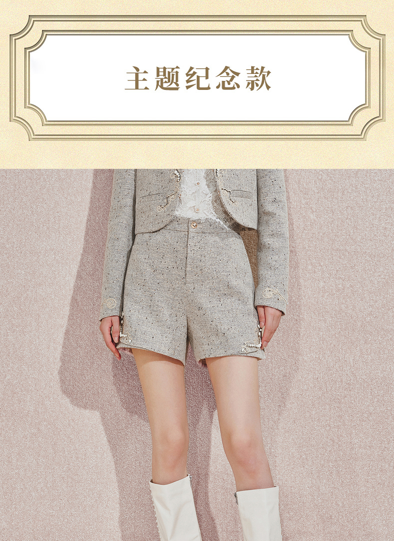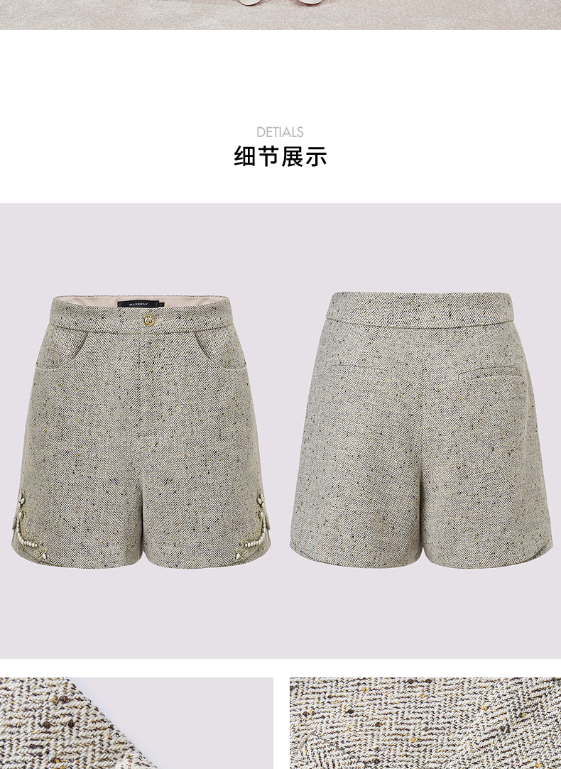玛克门店发货:MAXRIENY*日常钉珠装饰小A型短裤(货号:MC85PA522)