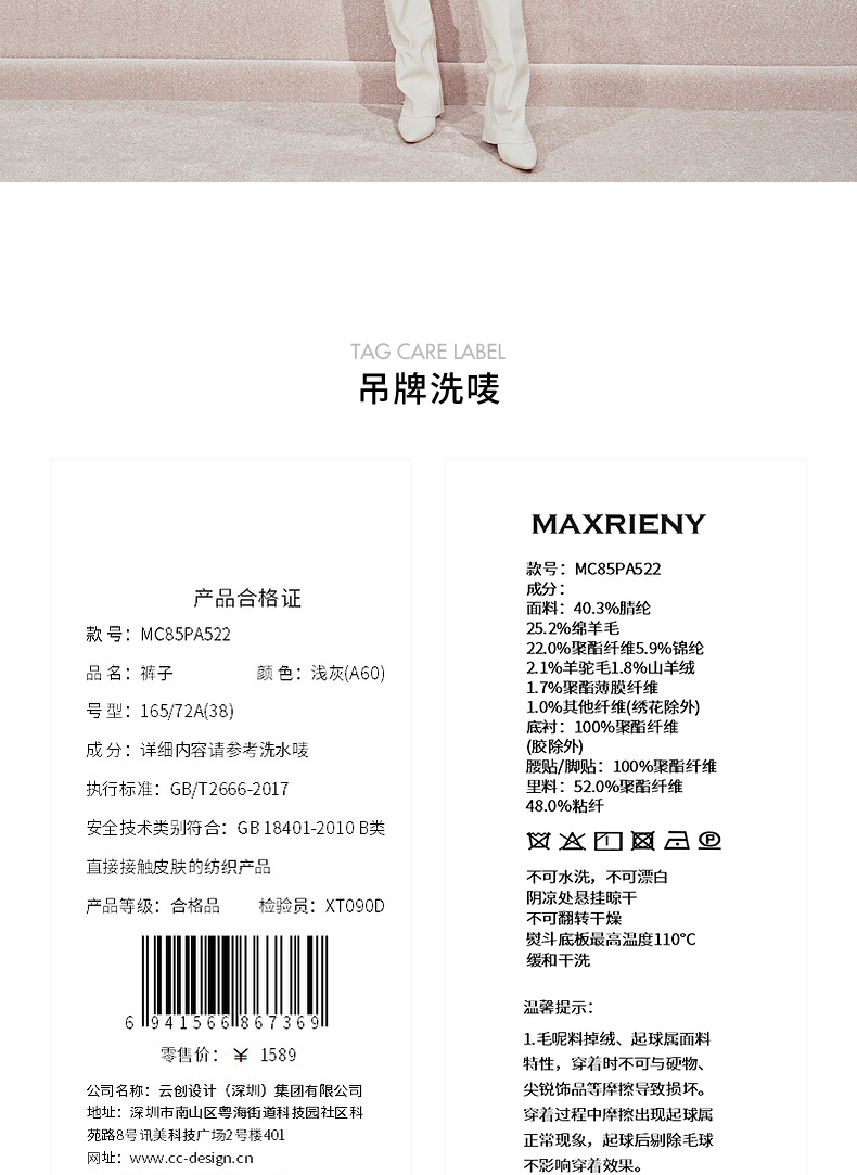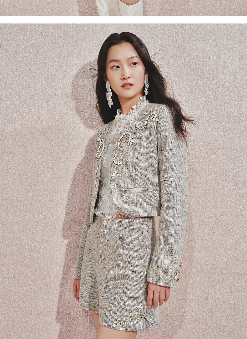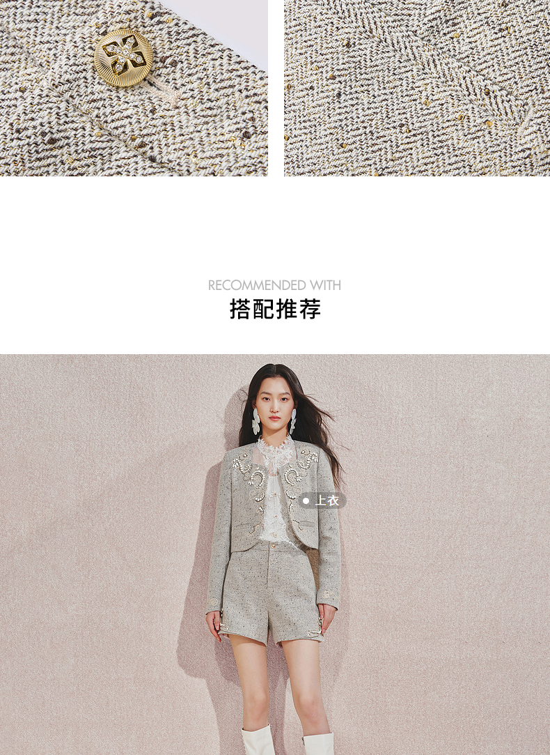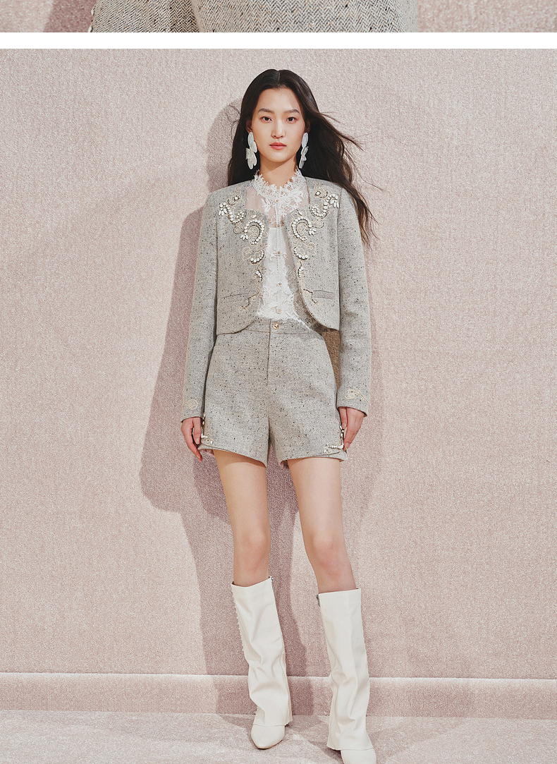玛克门店发货:MAXRIENY*日常钉珠装饰小A型短裤(货号:MC85PA522)