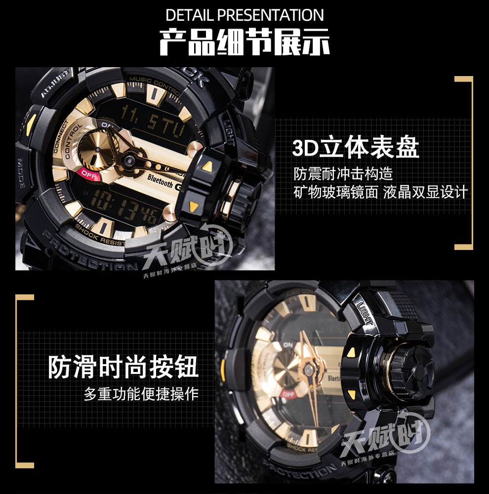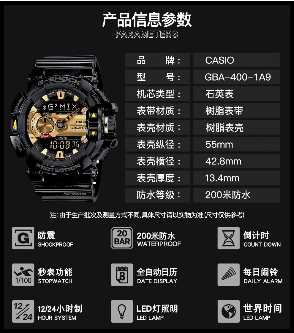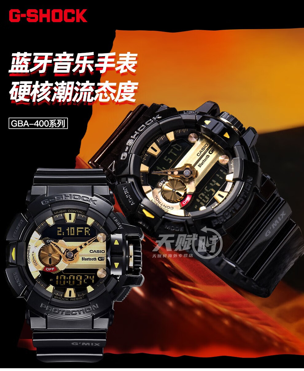 【时计廊】卡西欧(CASIO) 男表G-SHOCK蓝牙音乐运动防水潮流手表 GBA-400-1A