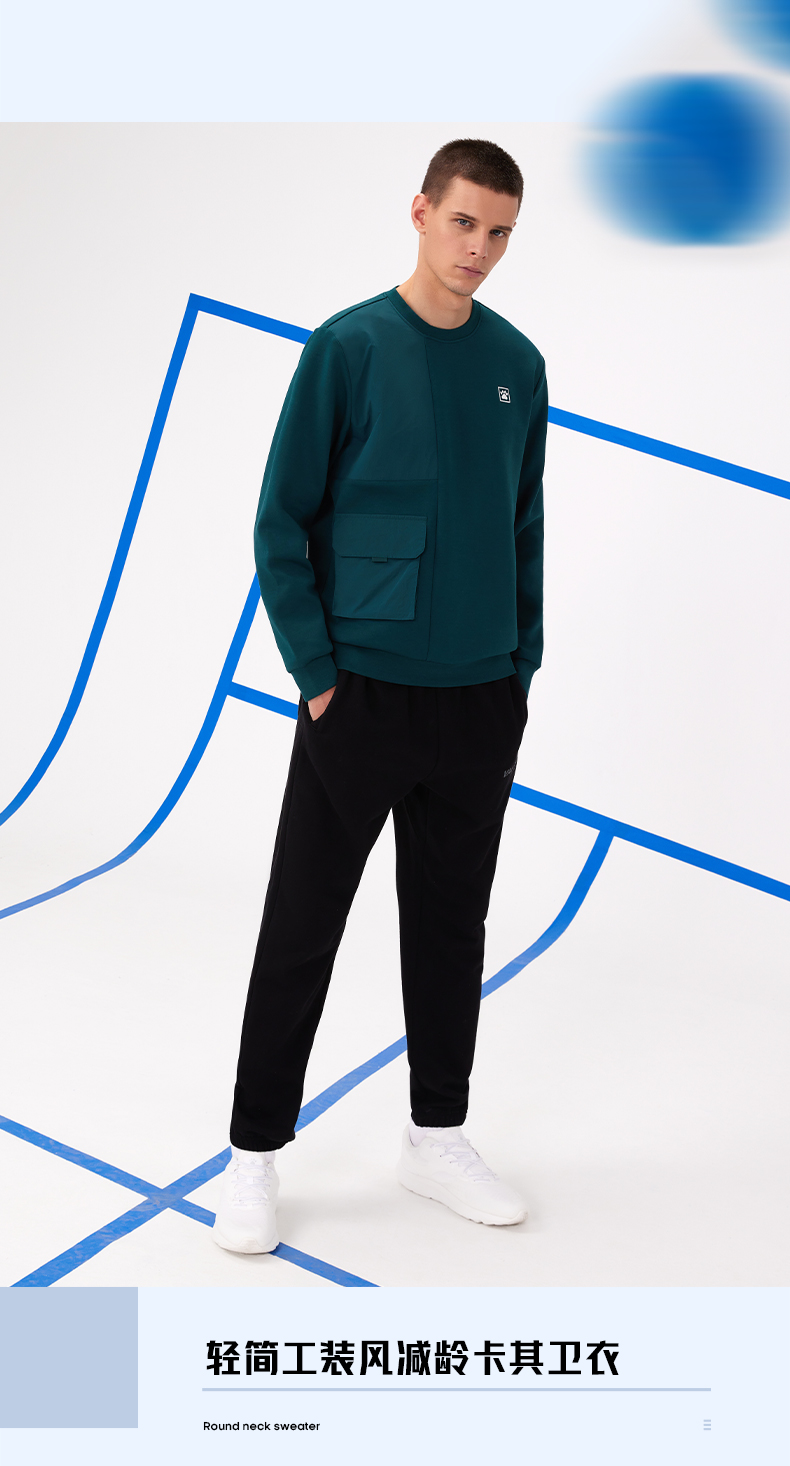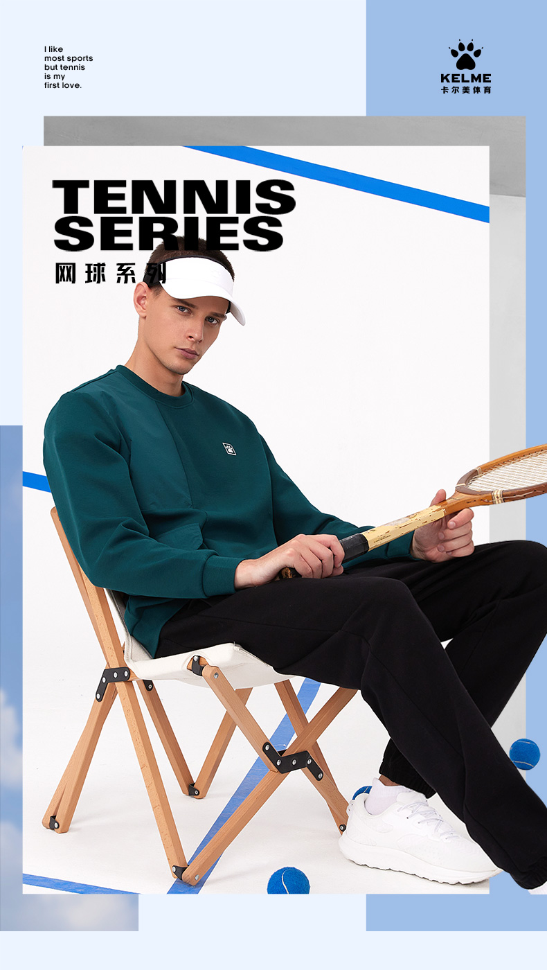 卡尔美运动卫衣新款网球系列套头长袖男工装风上衣