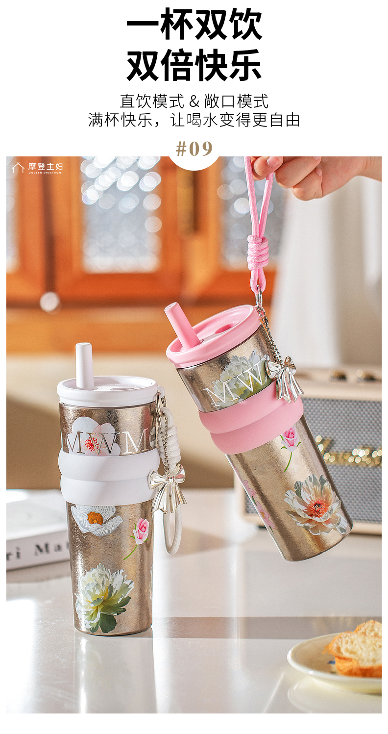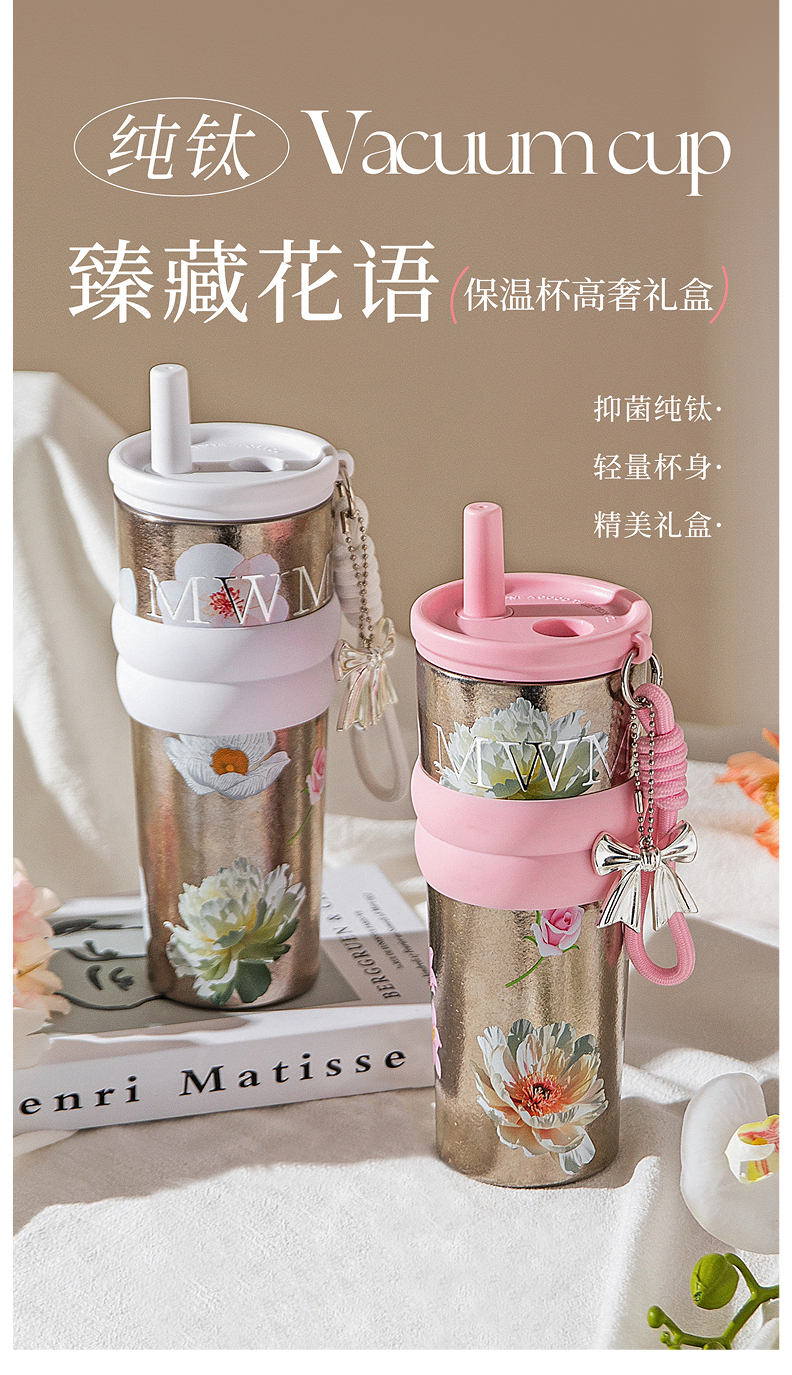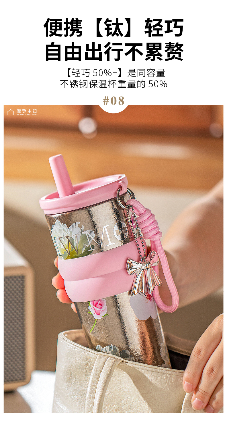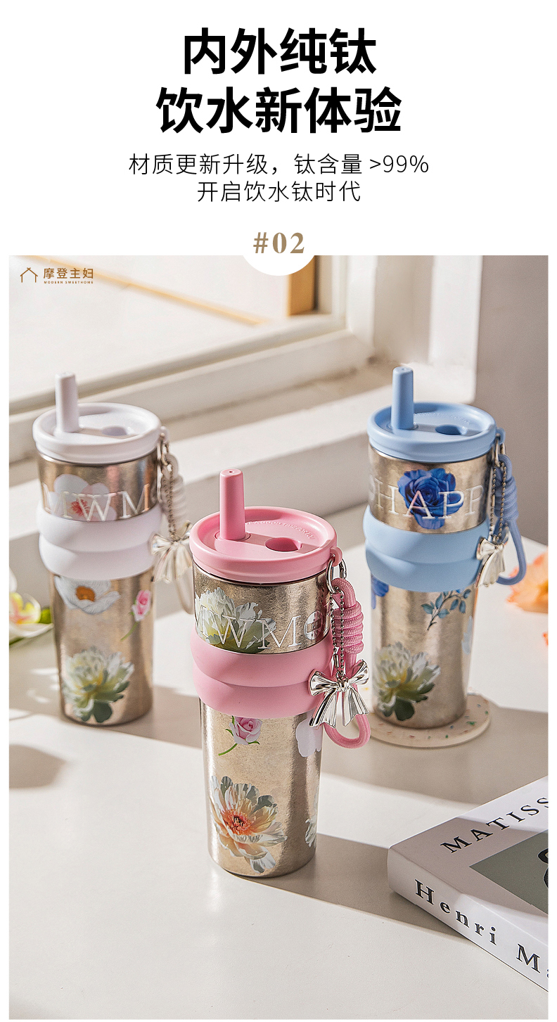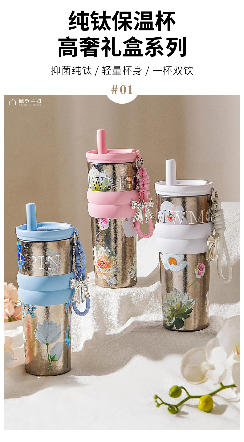 摩登主妇纯钛保温杯2025新款女生日礼物大容量水杯咖啡杯吸管杯子