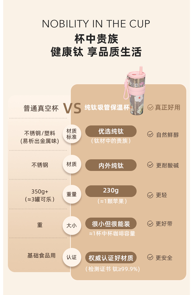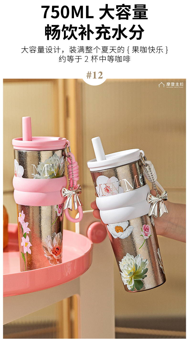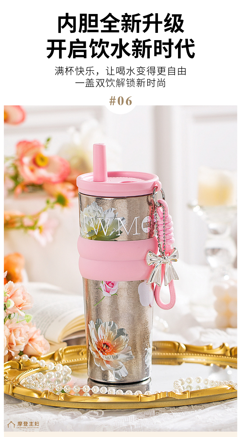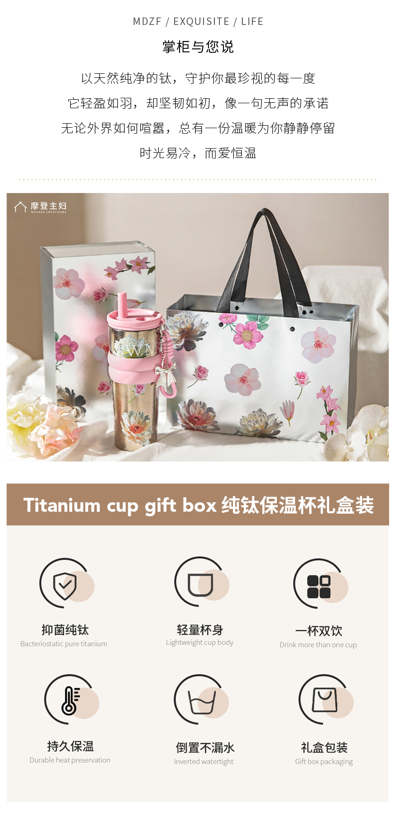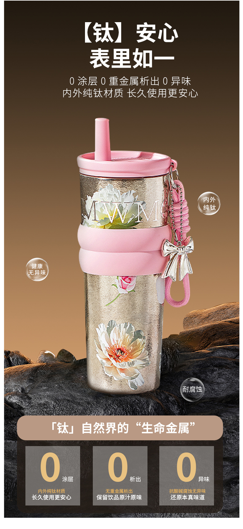 摩登主妇纯钛保温杯2025新款女生日礼物大容量水杯咖啡杯吸管杯子