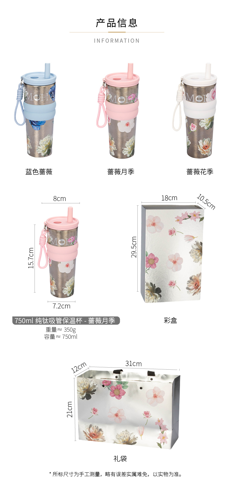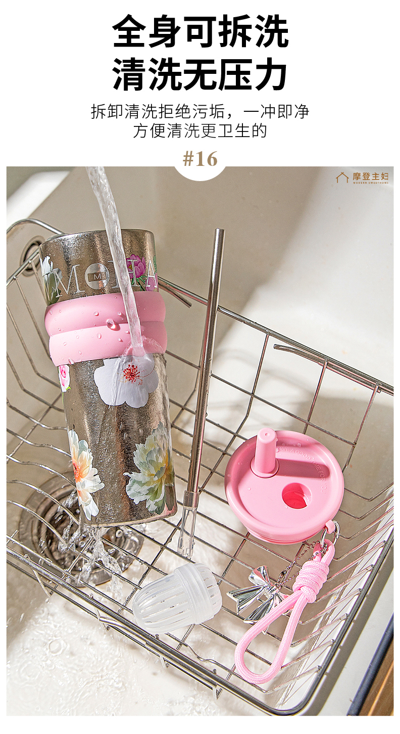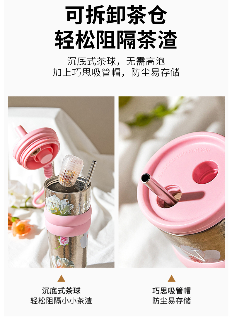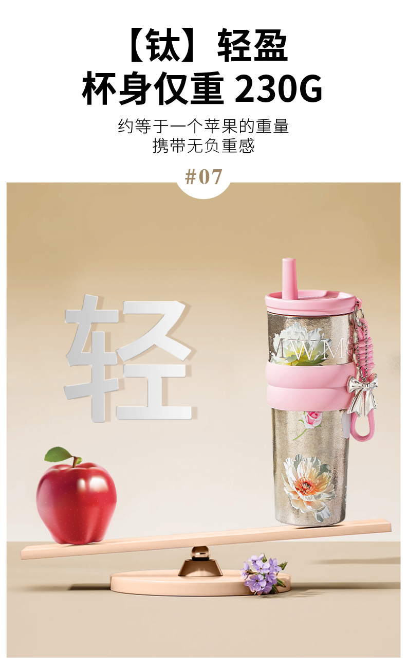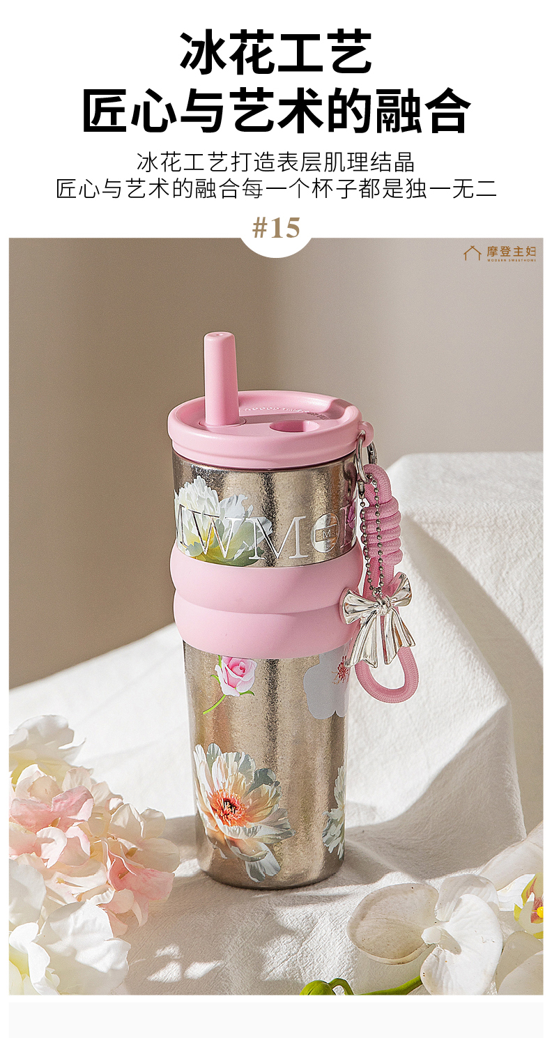 摩登主妇纯钛保温杯2025新款女生日礼物大容量水杯咖啡杯吸管杯子