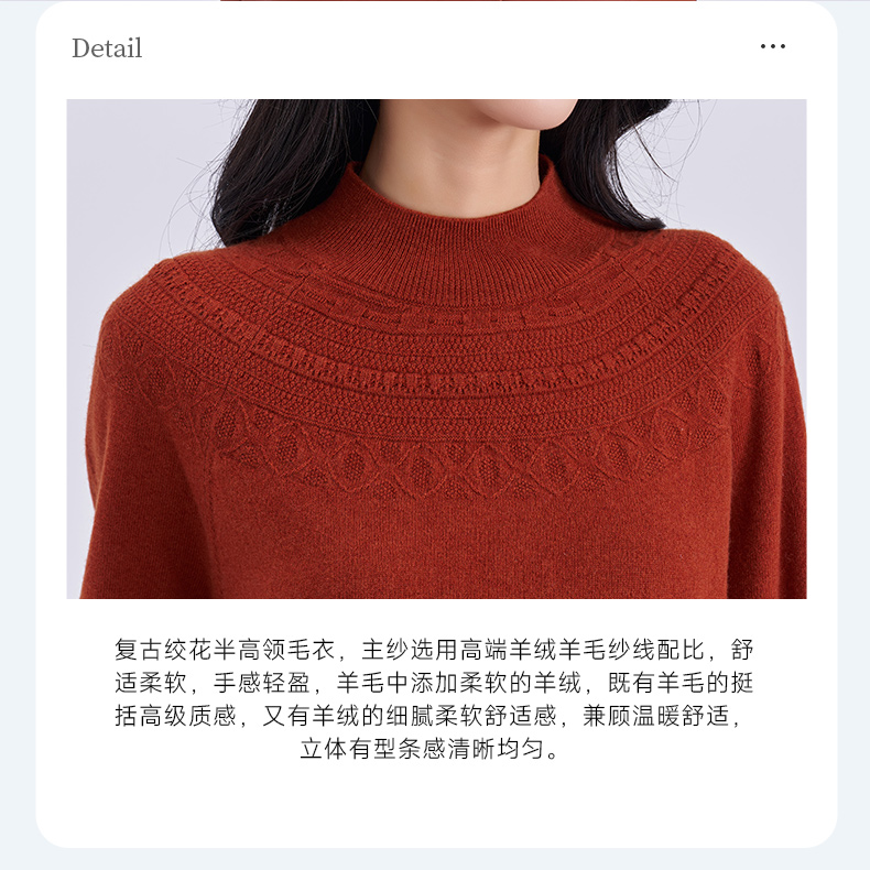 乔万尼2025冬新品复古费尔岛绞花半高领保暖羊毛羊绒混纺打底衫ED4M812
