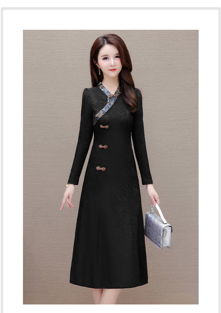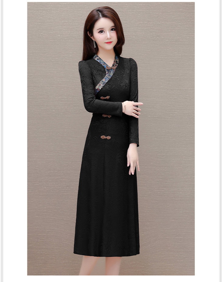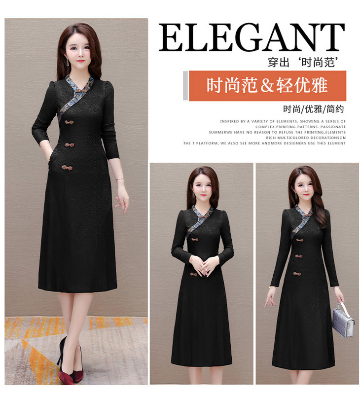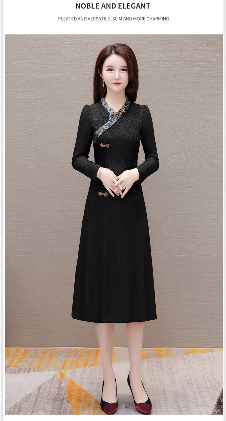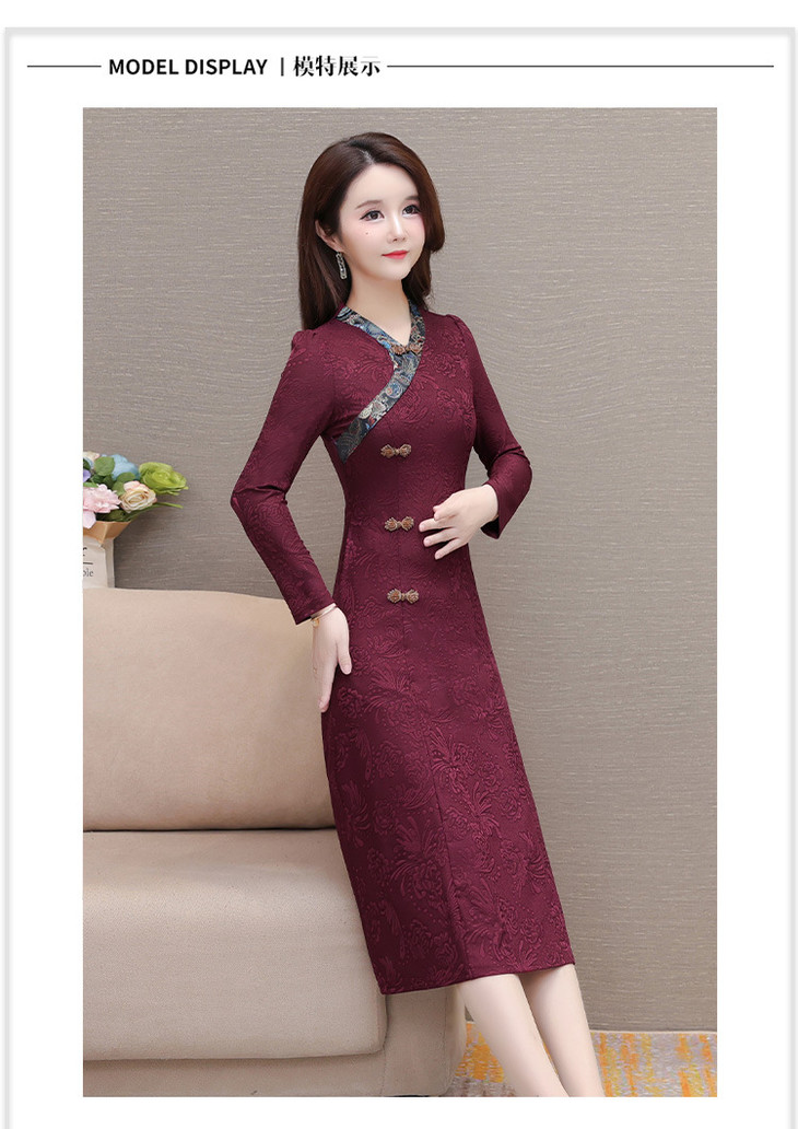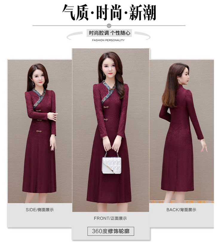 喜婆婆婚宴礼服旗袍裙,改良复古裙中长款长衩提花连衣裙QYM-LRX-J5C528-Y