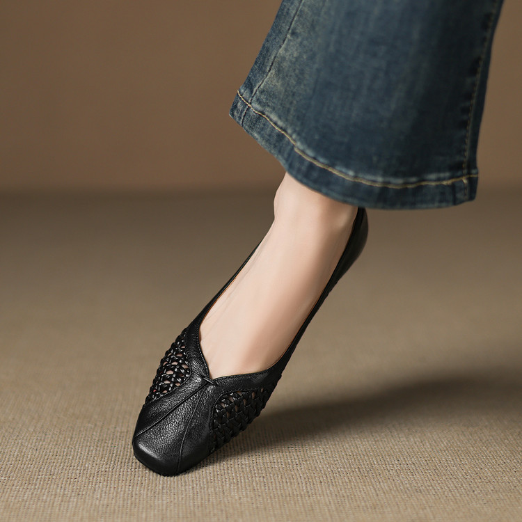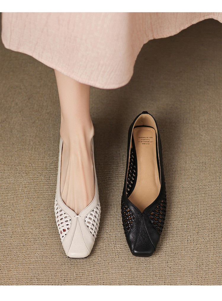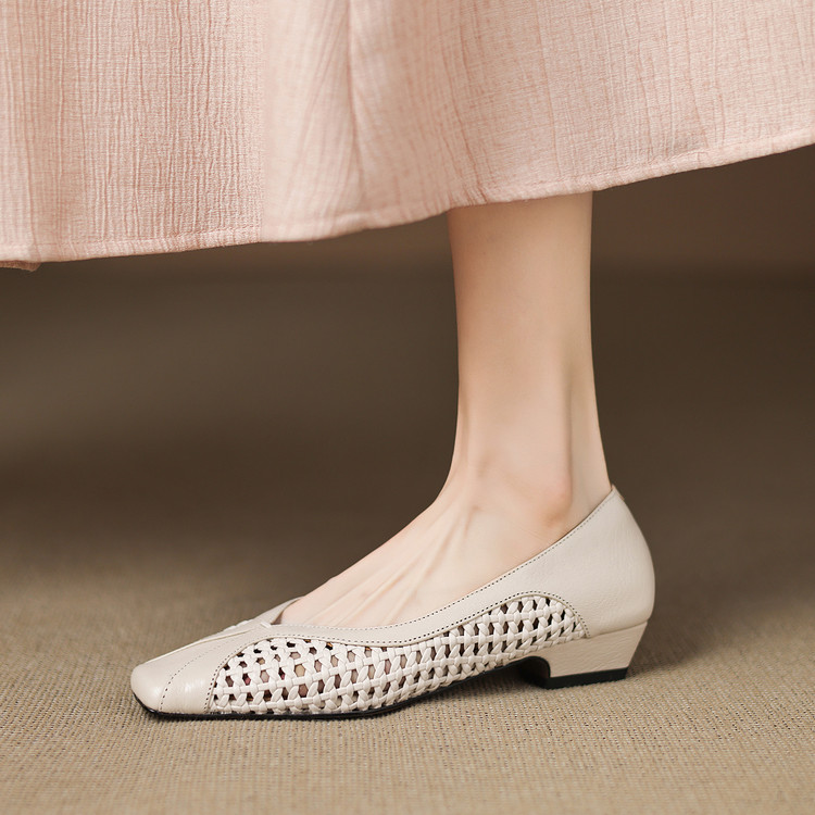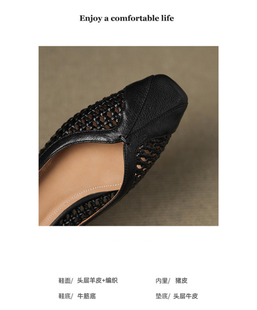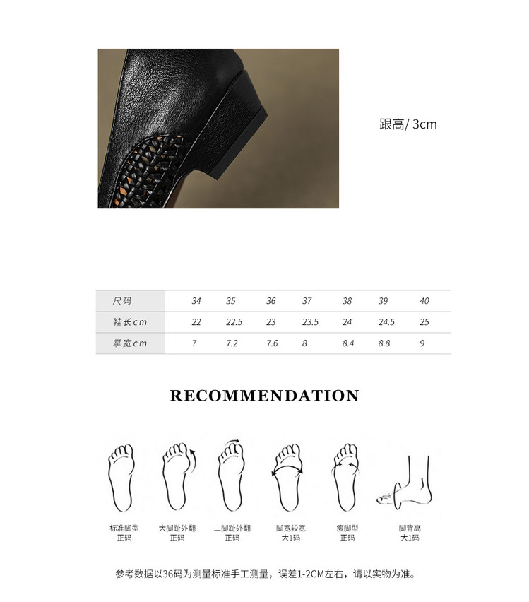 【货 号】72-151【鞋 面】头层羊皮+编织【内 里】猪皮【鞋 垫】头层牛皮【鞋 底】牛筋底【跟 高】3cm【颜 色】米白色 黑色【尺 码】34-40(大小定制不退换)