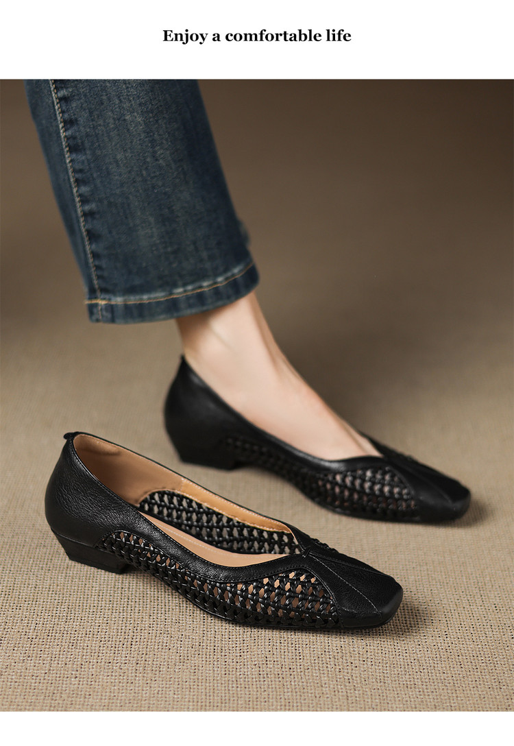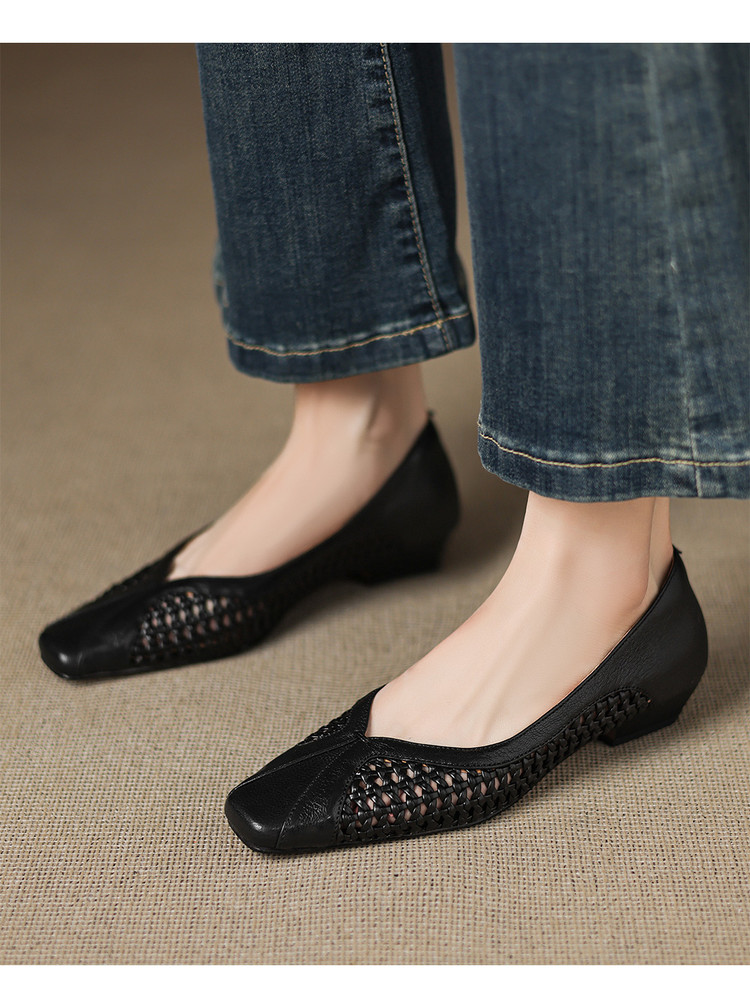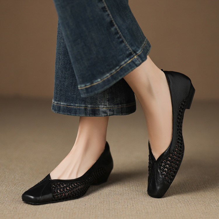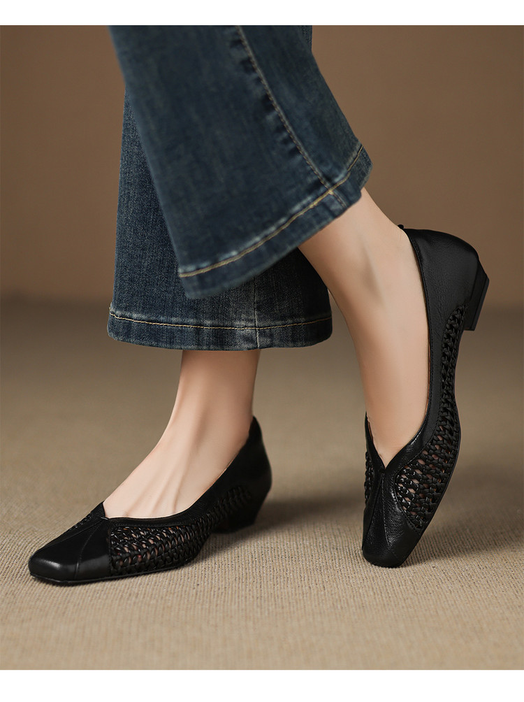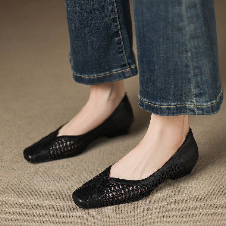 【货 号】72-151【鞋 面】头层羊皮+编织【内 里】猪皮【鞋 垫】头层牛皮【鞋 底】牛筋底【跟 高】3cm【颜 色】米白色 黑色【尺 码】34-40(大小定制不退换)