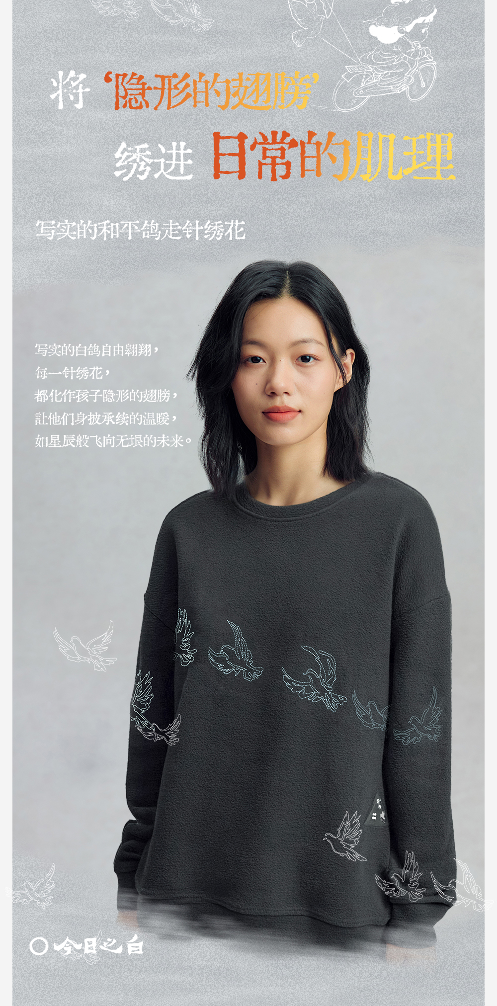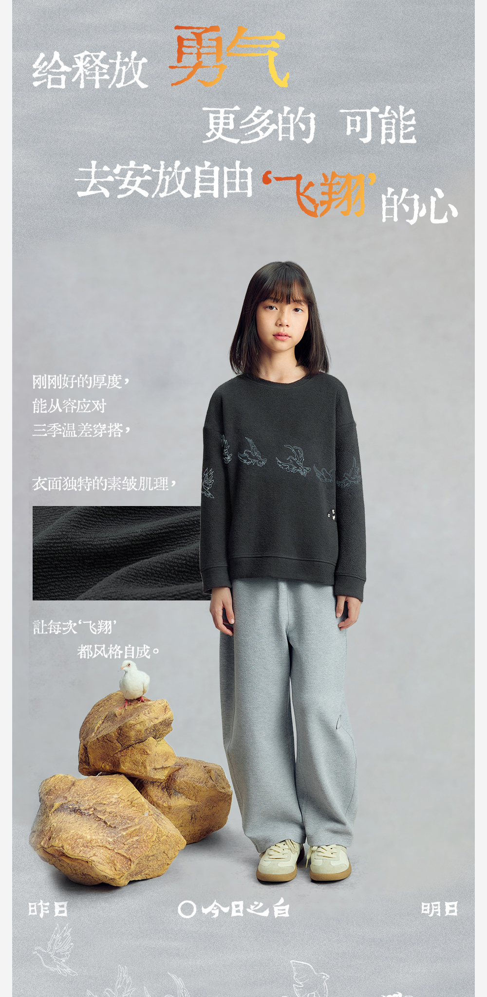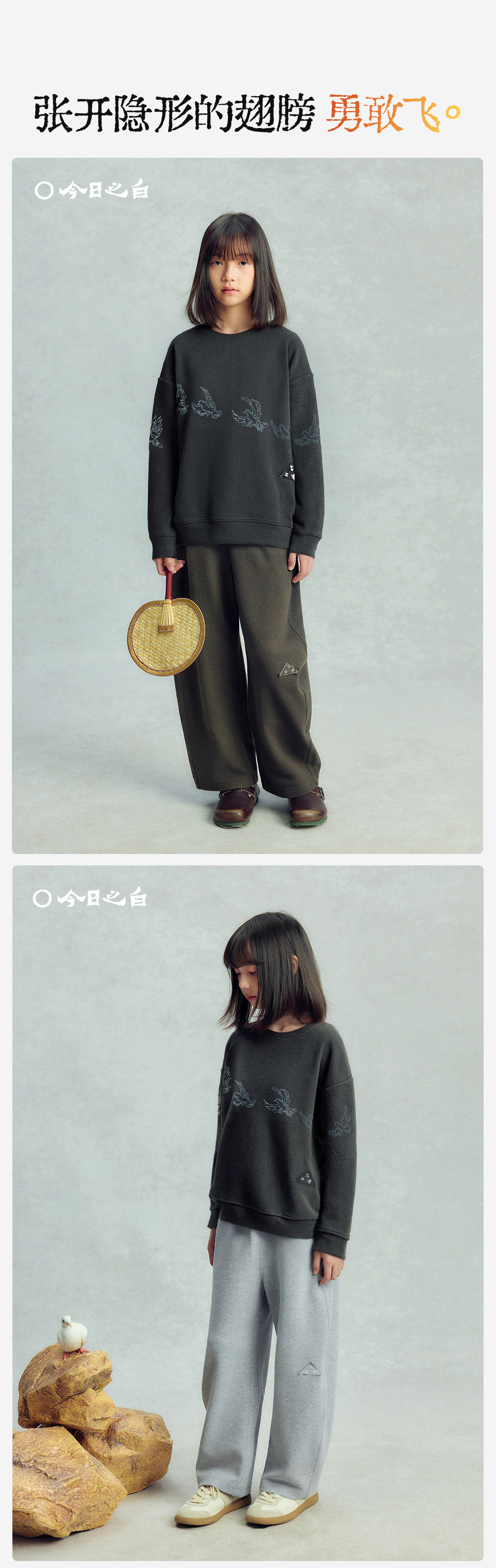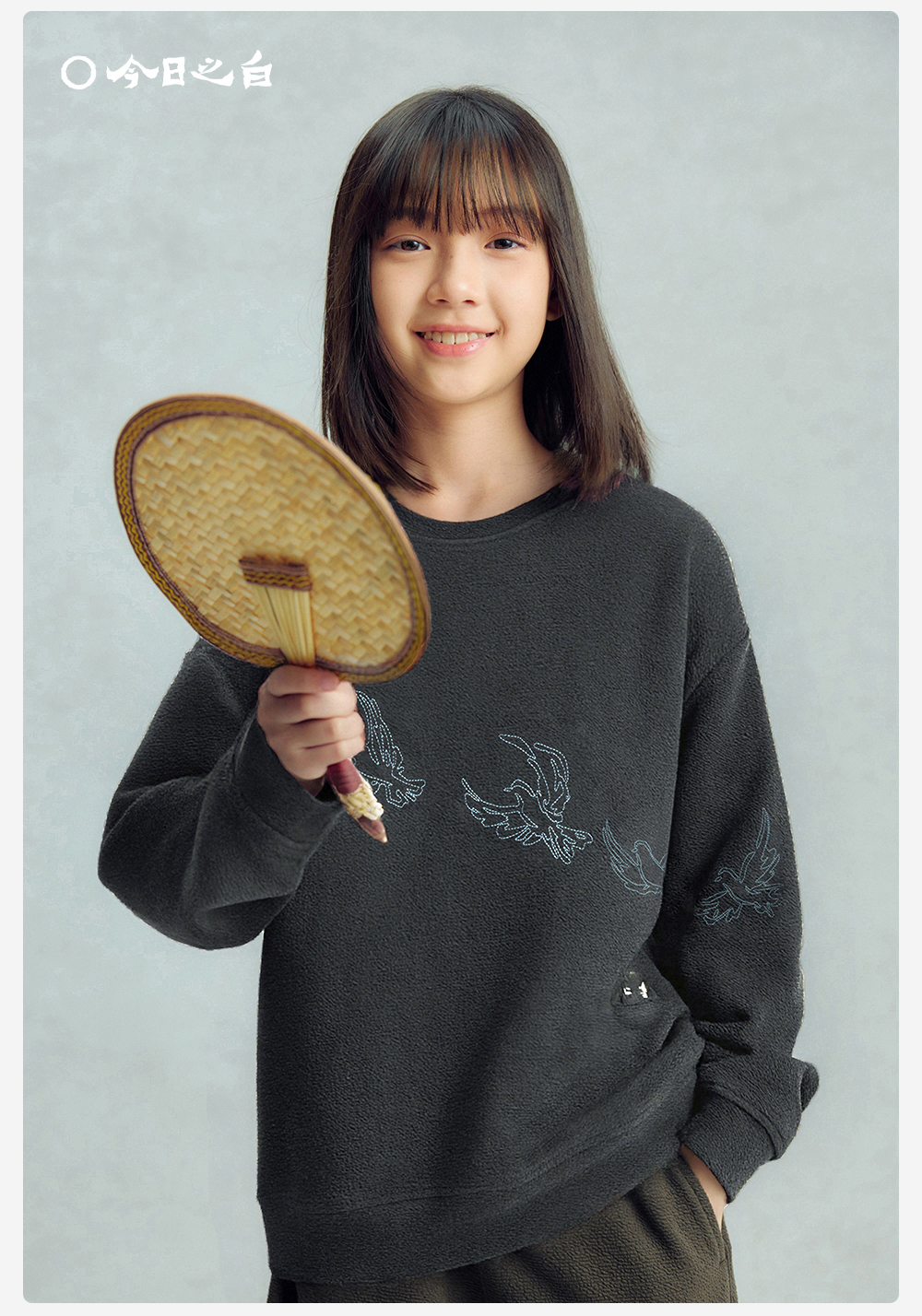 【今日之白系列】森林棠26新款儿童棉感舒适弹力宽松圆领绣花卫衣20361532