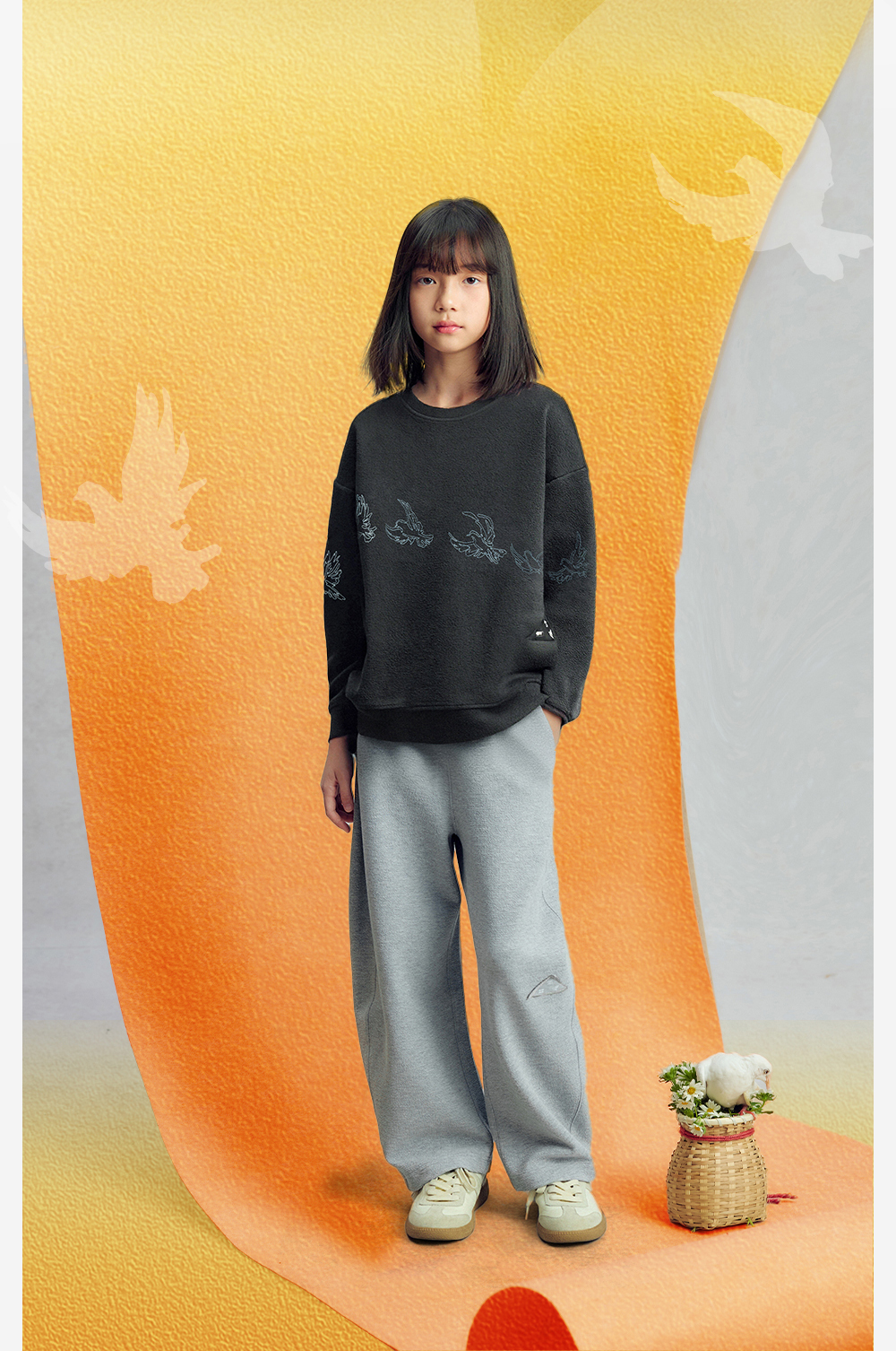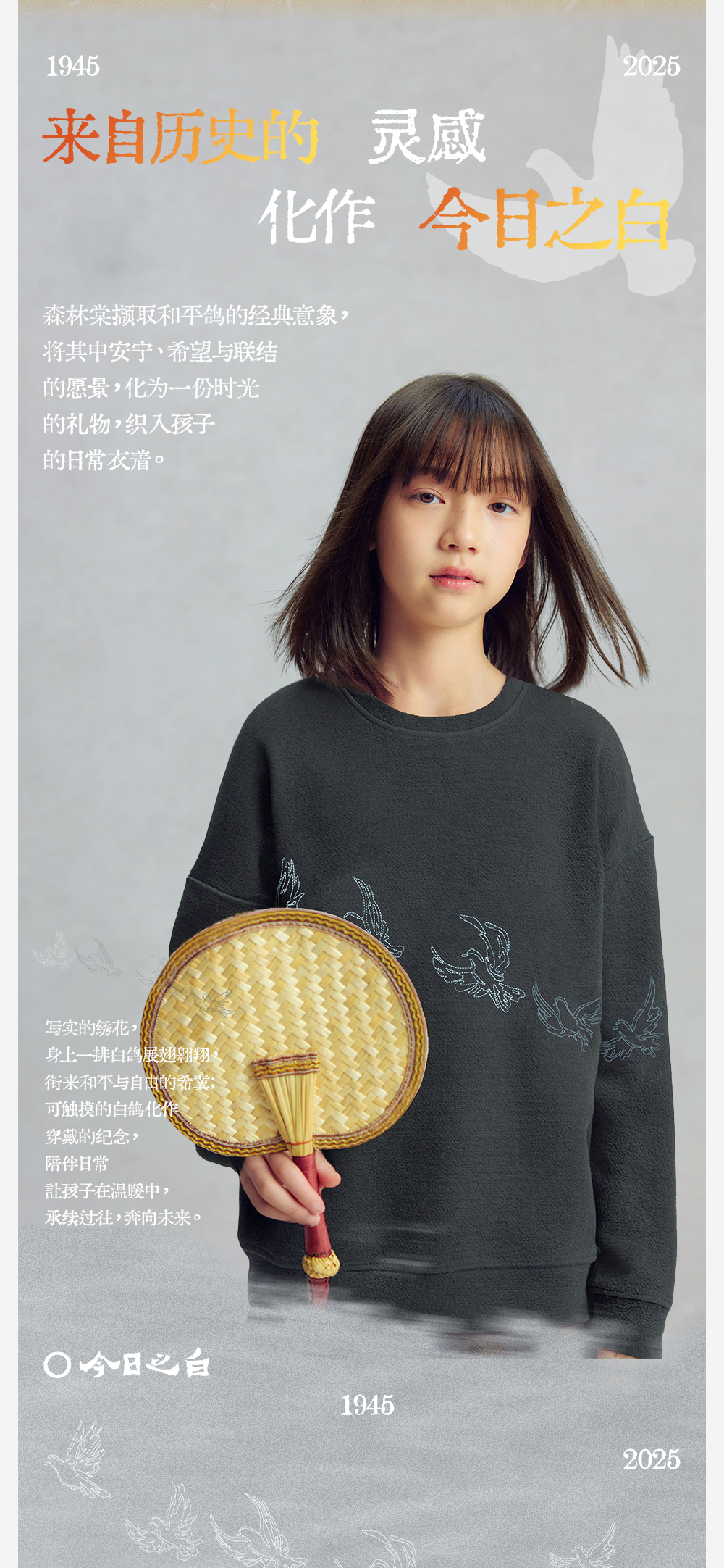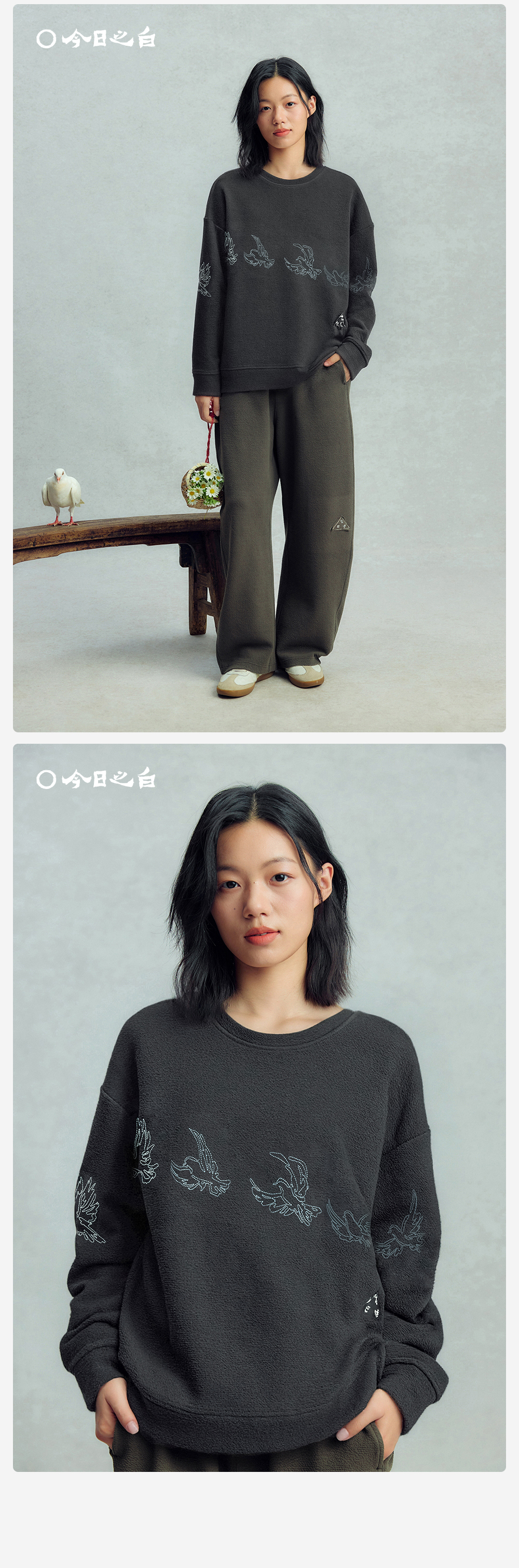 【今日之白系列】森林棠26新款儿童棉感舒适弹力宽松圆领绣花卫衣20361532