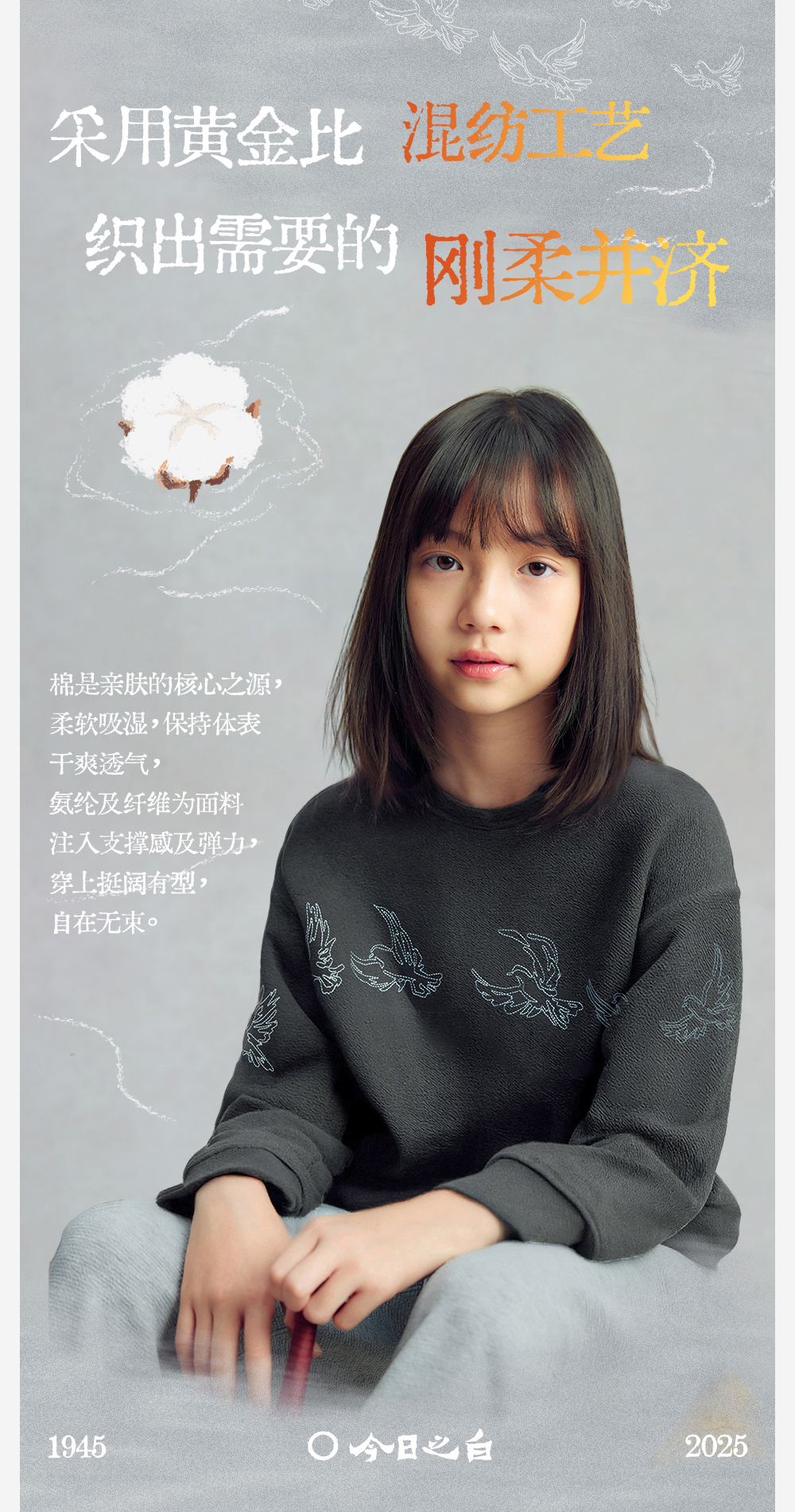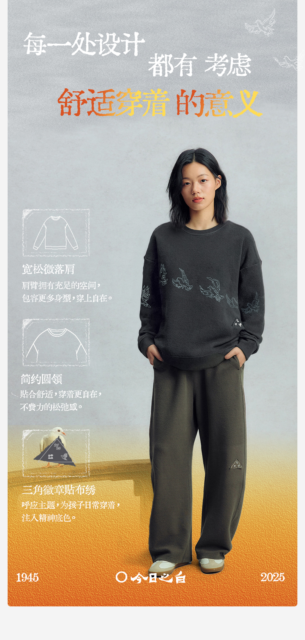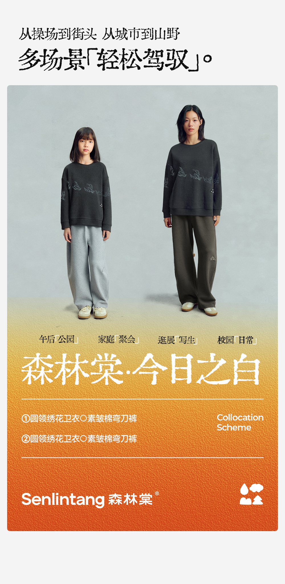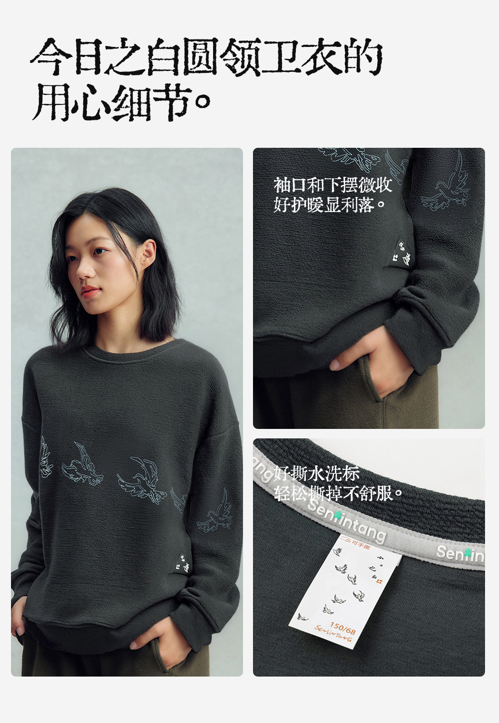 【今日之白系列】森林棠26新款儿童棉感舒适弹力宽松圆领绣花卫衣20361532
