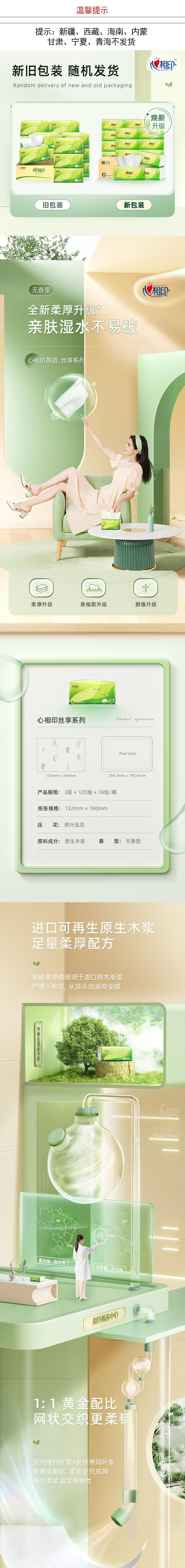 心相印 茶语丝享系列120抽三层塑装纸面巾18包装 DT15120