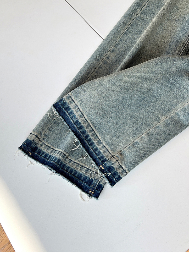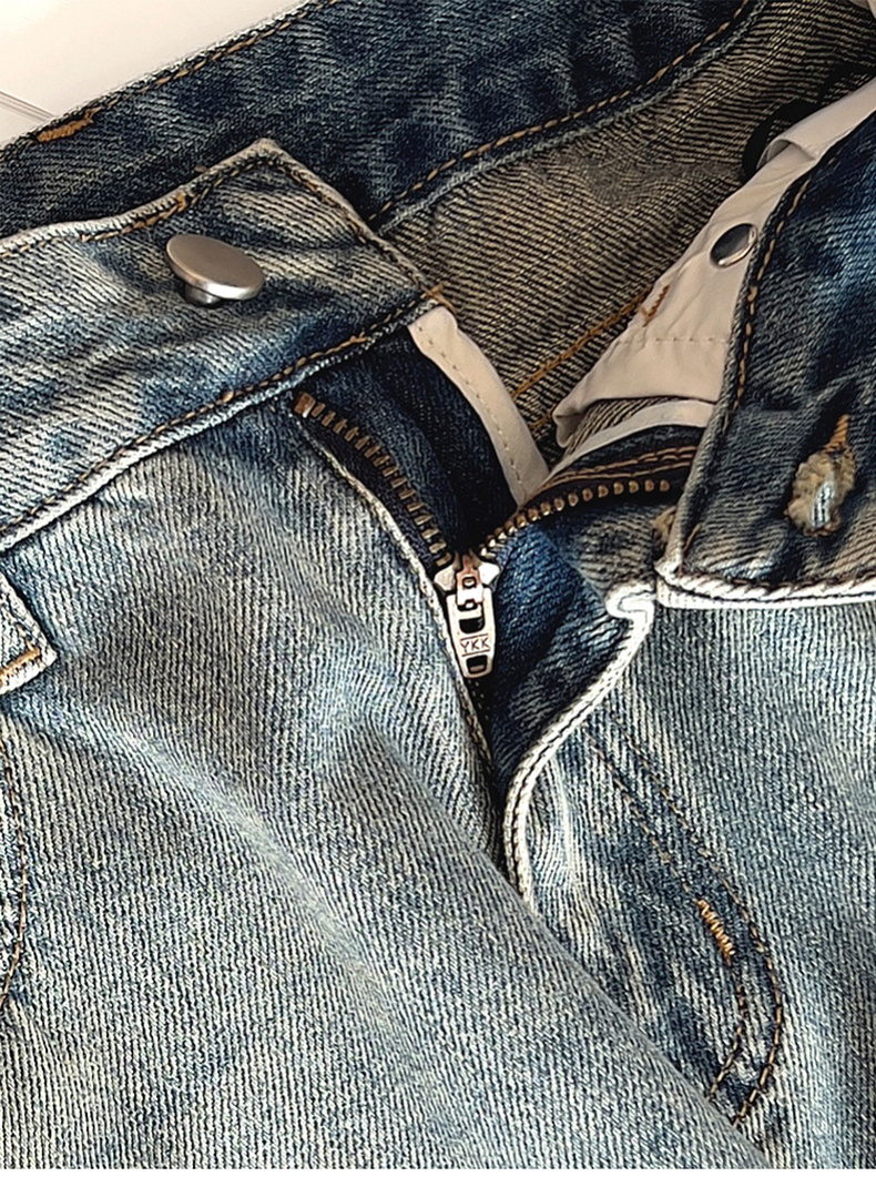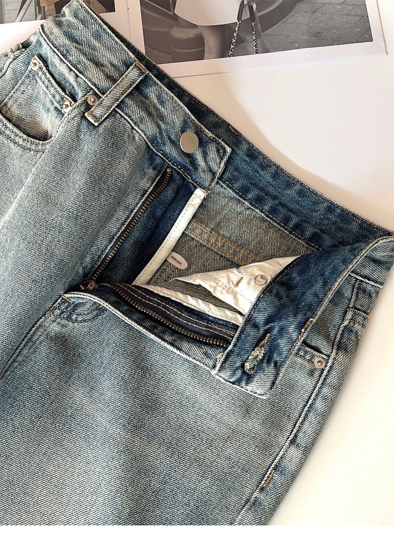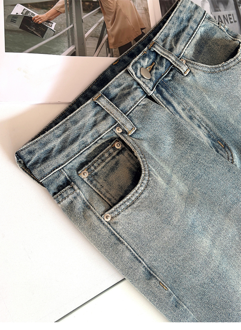 专柜实拍【细腿/复古毛边】拉夏贝尔/La Chapelle高腰遮胯显瘦直筒裤复古水洗浅蓝牛仔裤