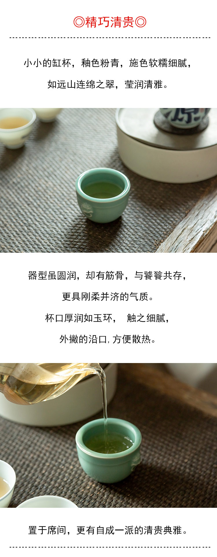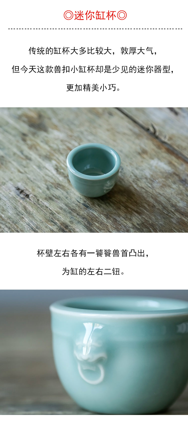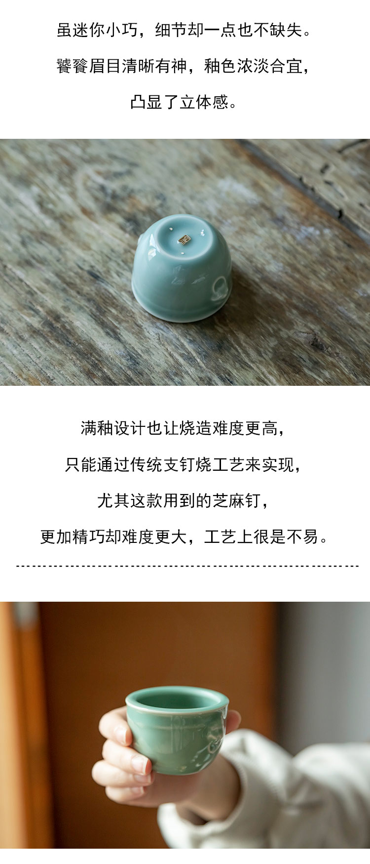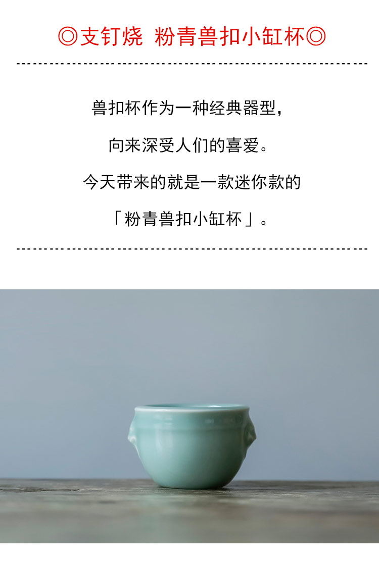 茶香记 龙泉青瓷支钉烧粉青兽扣小缸杯50ml主人杯传统器型茶杯