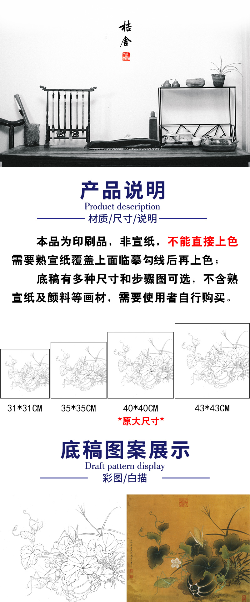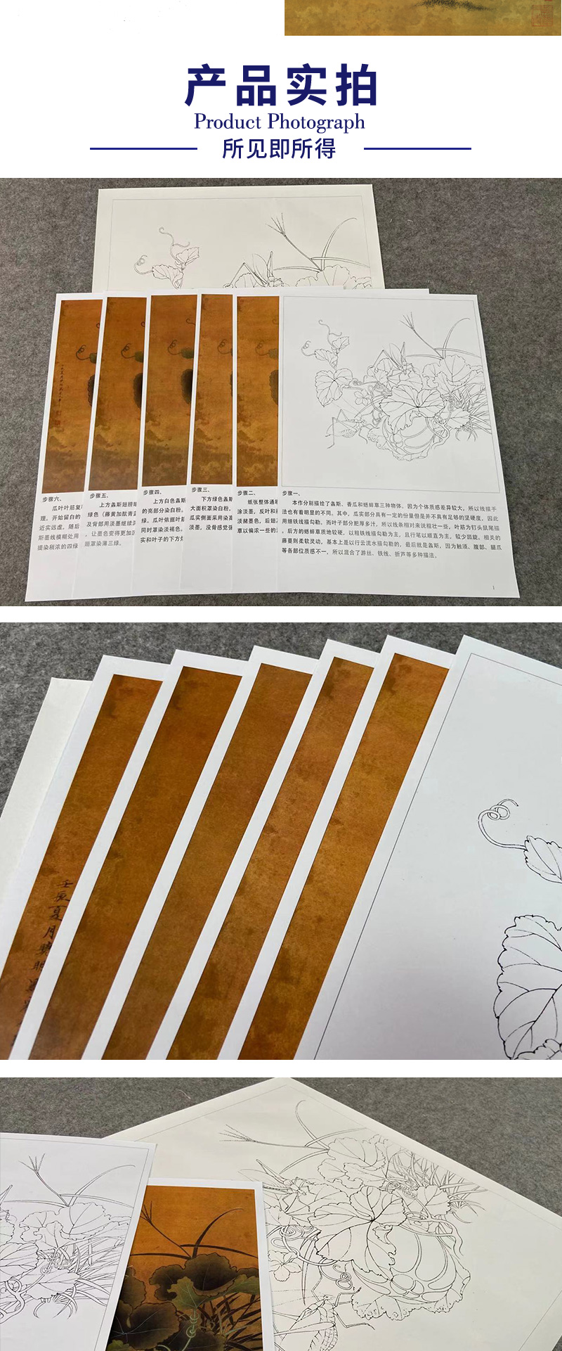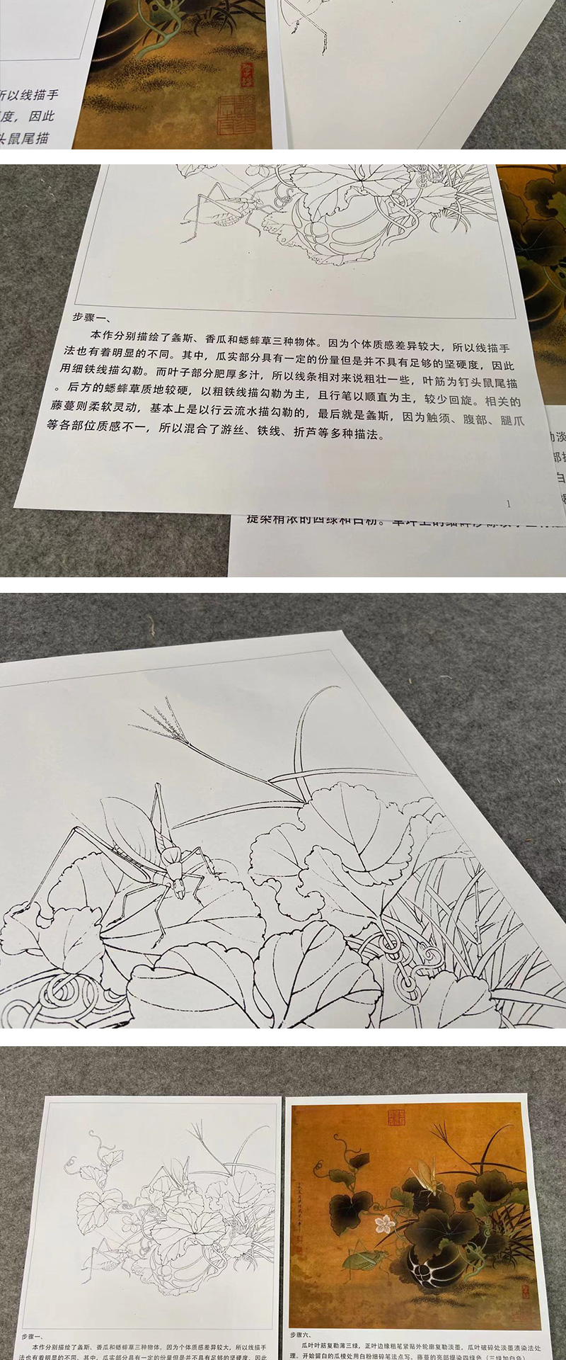 【有步骤、大彩图】李晓明工笔画白描底稿斗方小品《临宋螽斯绵瓞图》瓜果初学者临摹花鸟线稿KC17