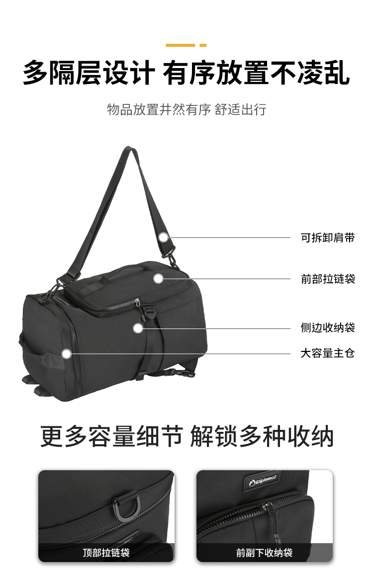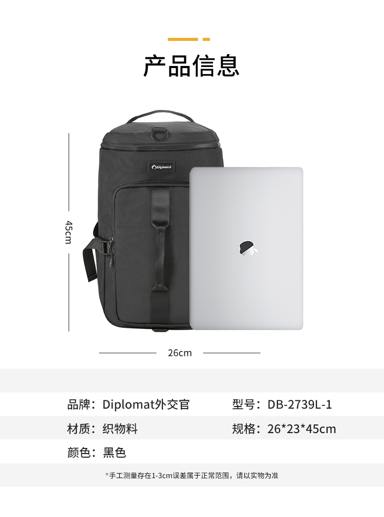 Diplomat外交官双肩背旅行袋健身包DB-2739L-1黑色(一包两用)