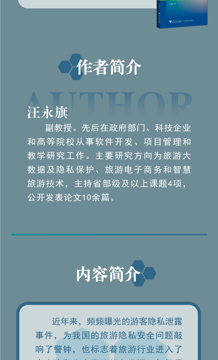 汪永旗,男,副教授,主要研究方向为旅游大数据、智慧旅游、旅游电子商务、隐私保护。近年来,主持省部级课题4项,公开发表论文10余篇,主编和参编教材3部。