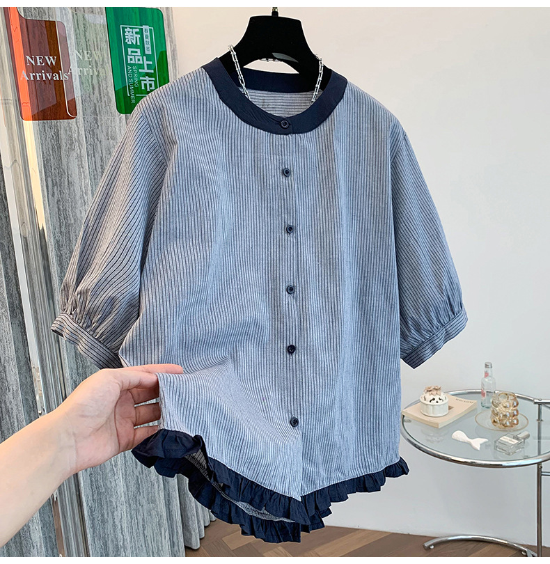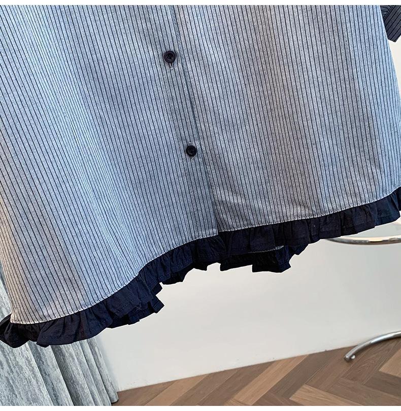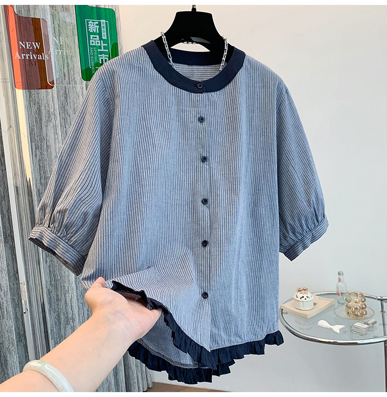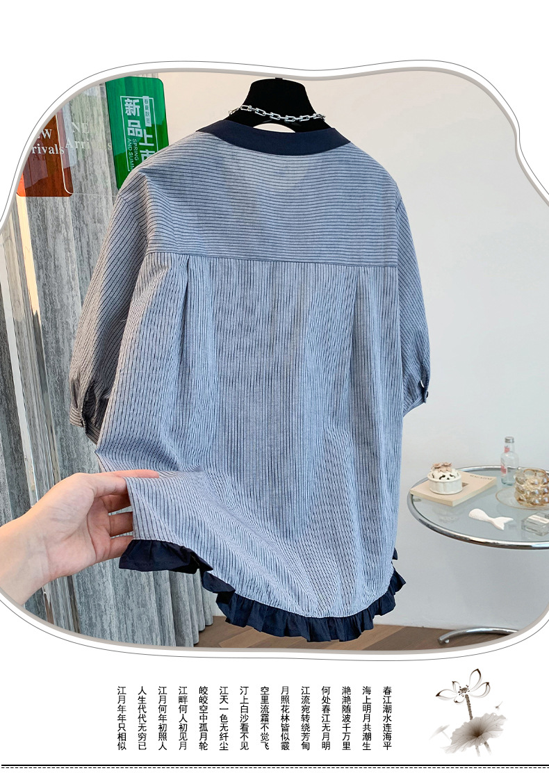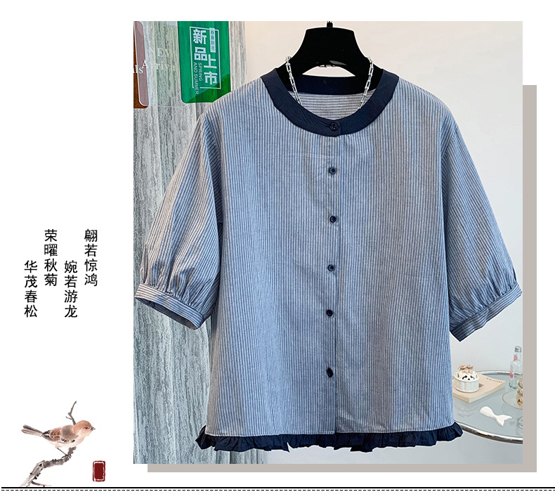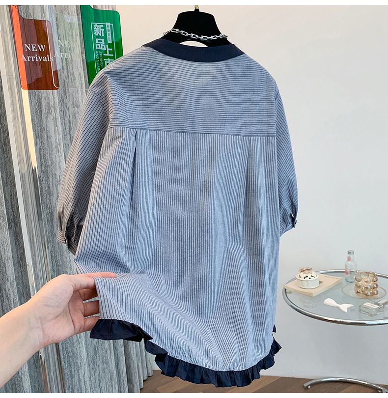 GYH 7358减龄木耳边撞色条纹短袖衬衫法式气质小衫