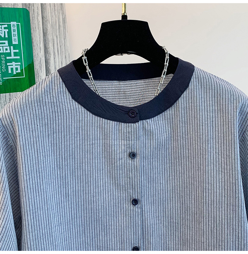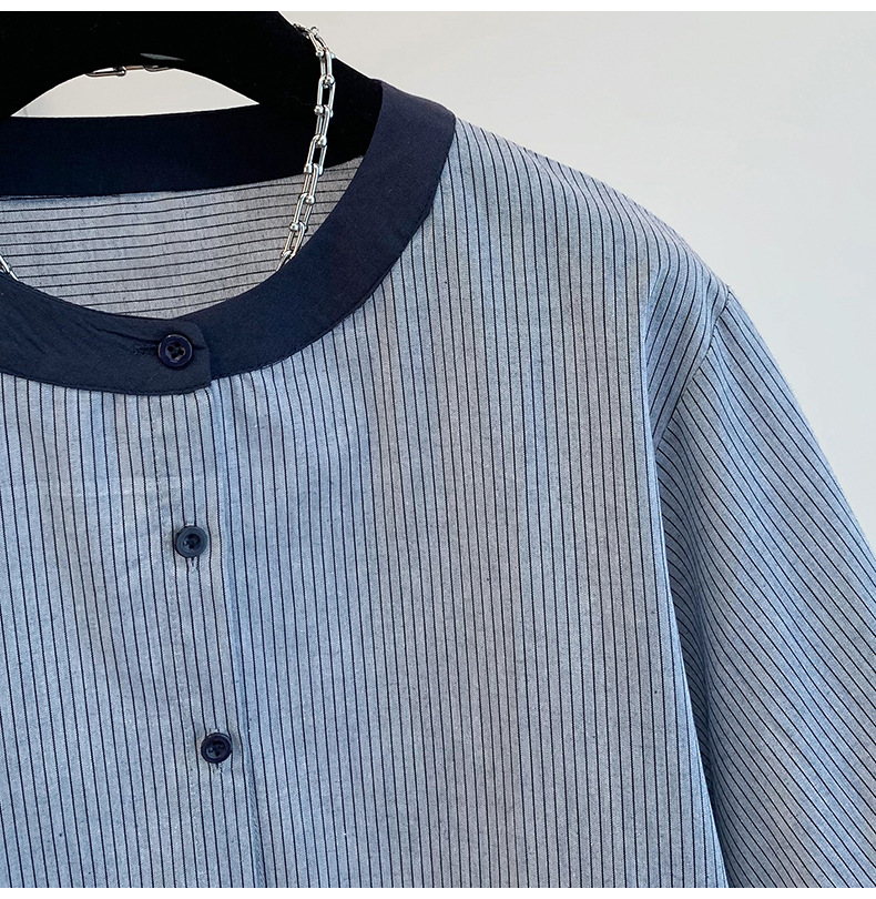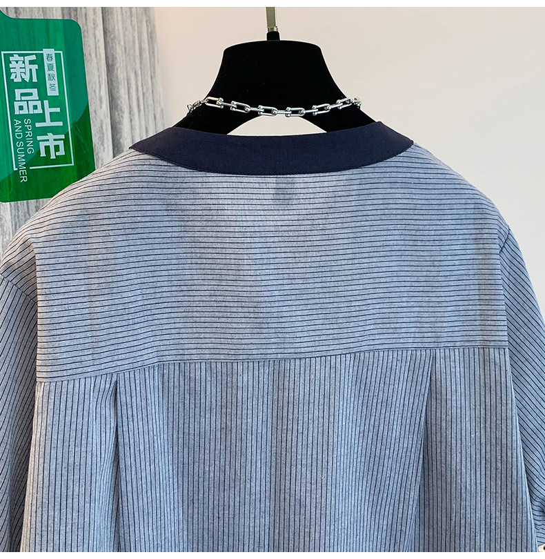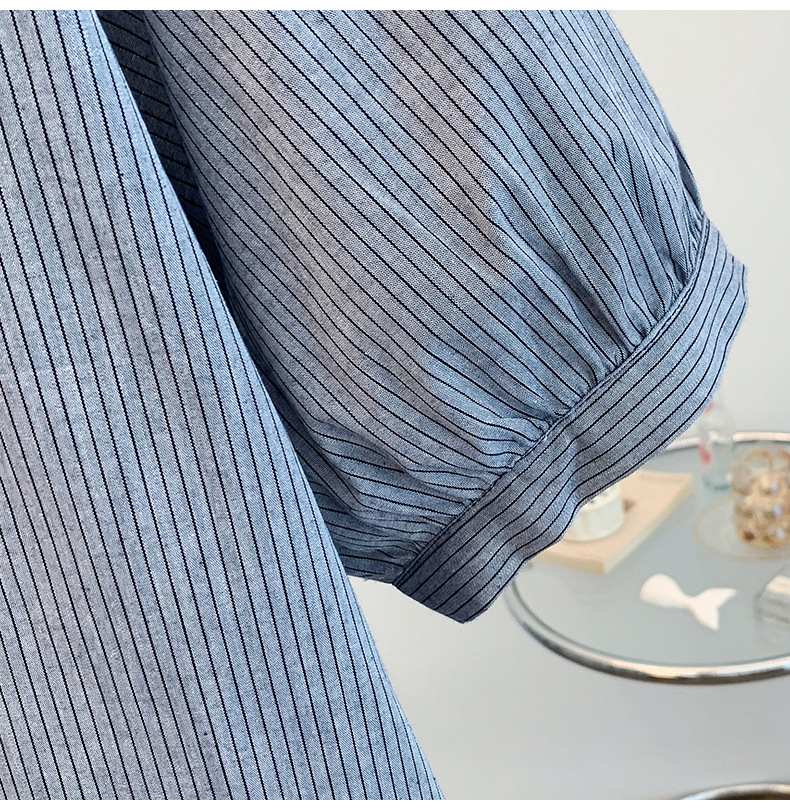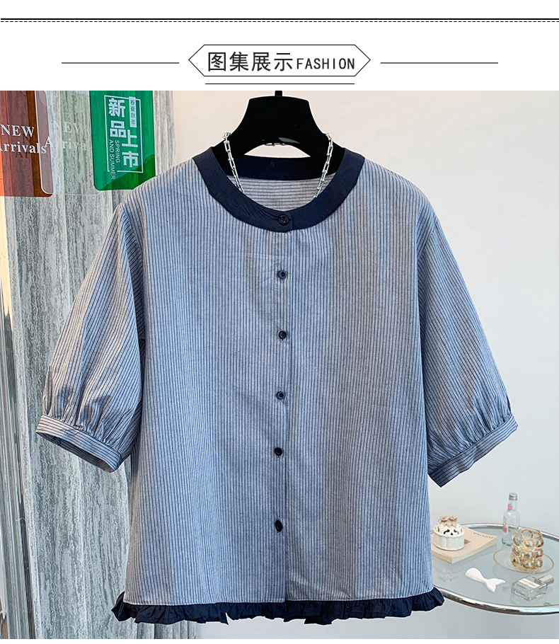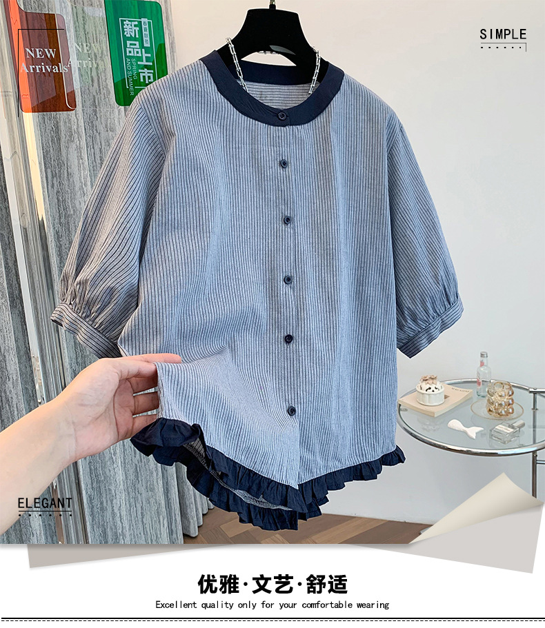 GYH 7358减龄木耳边撞色条纹短袖衬衫法式气质小衫