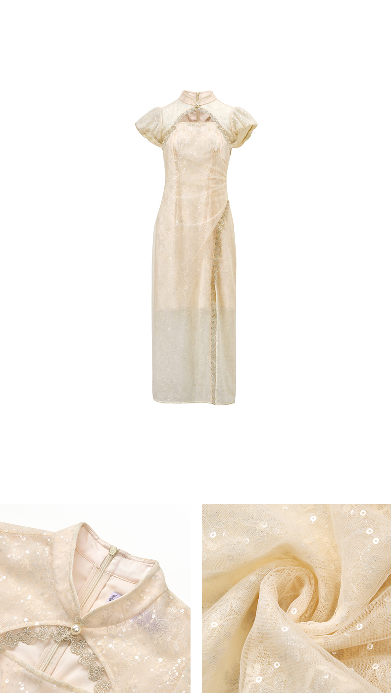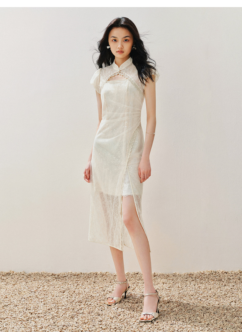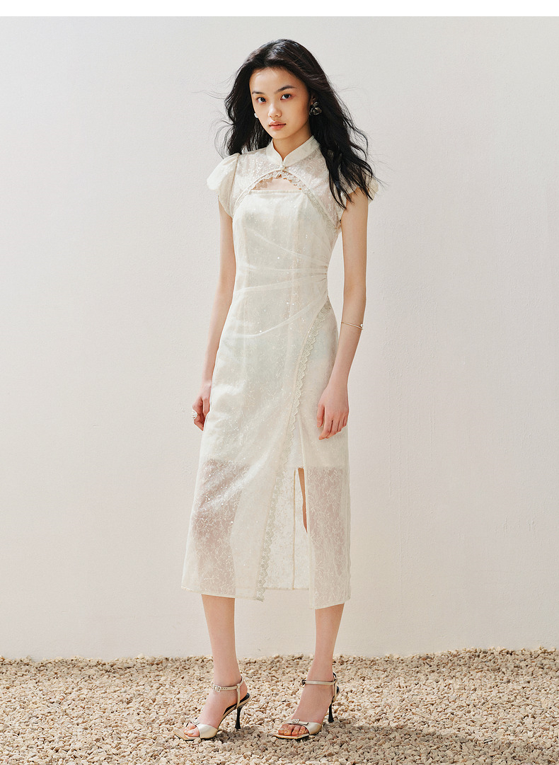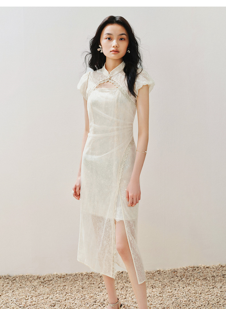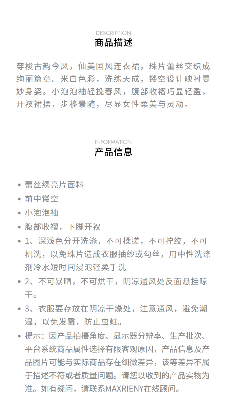 【城市静奢】MAXRIENY国风新中式连衣裙改良旗袍仙美蕾丝裙子(货号:MS85DR082)