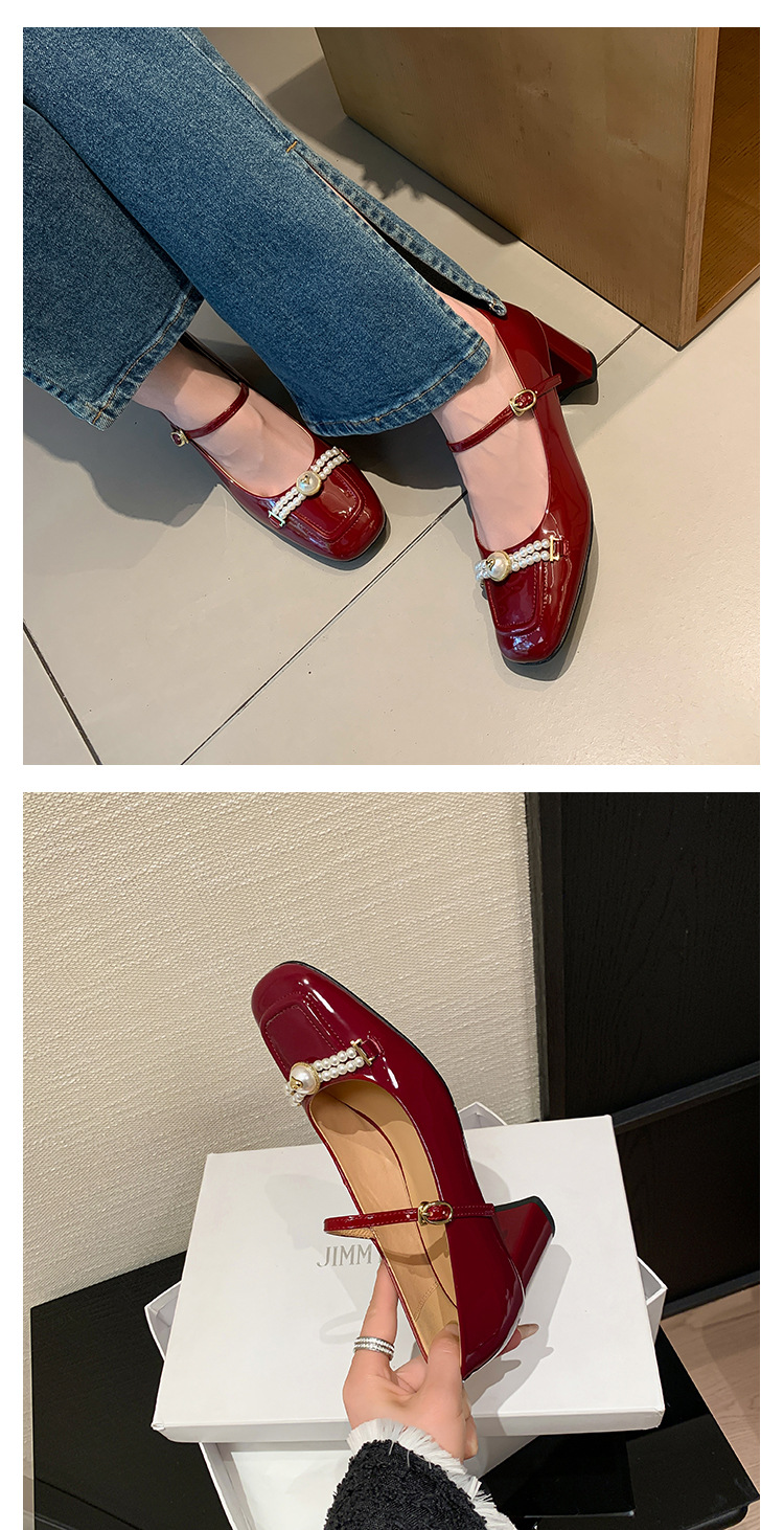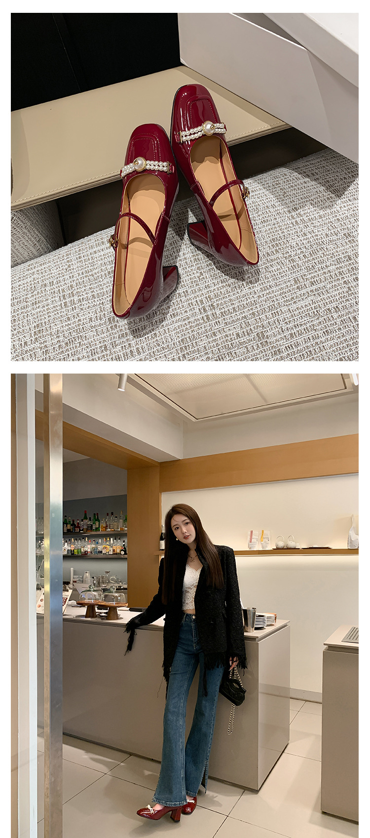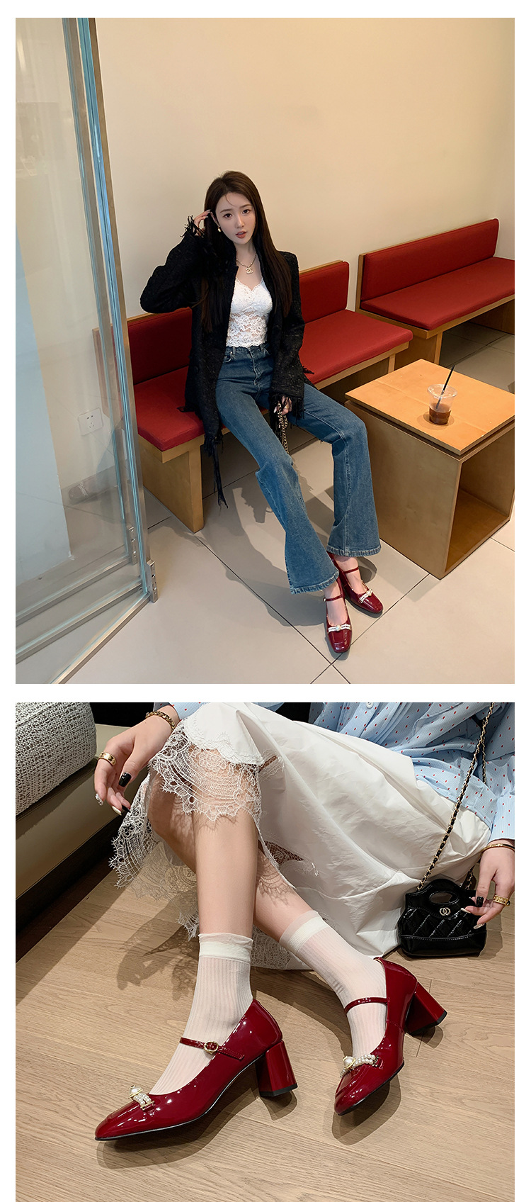 YLY&A653-1绝美粗跟珍珠蝴蝶结玛丽珍小皮鞋法式红色单鞋女2025新款气质 商品图2