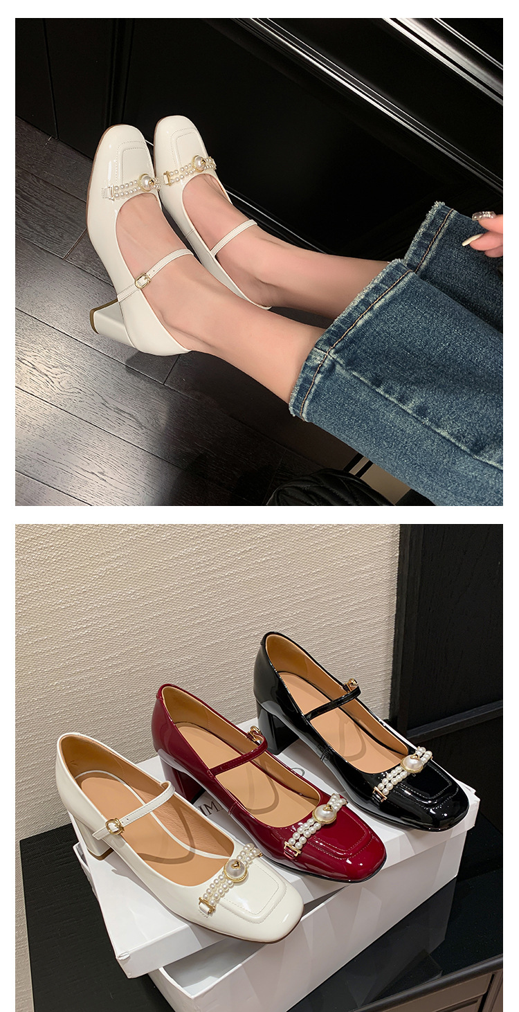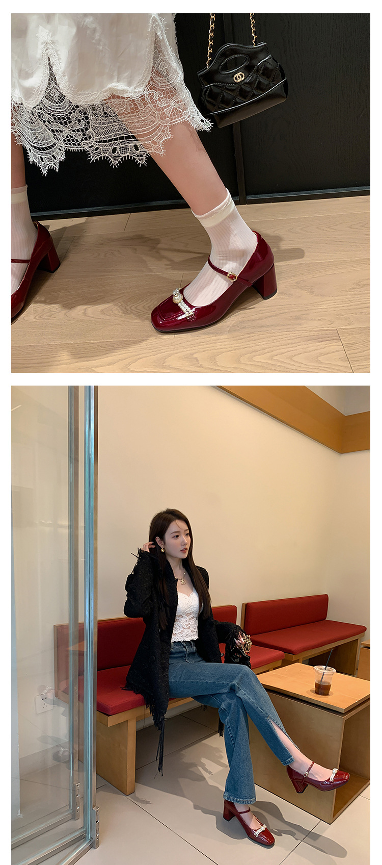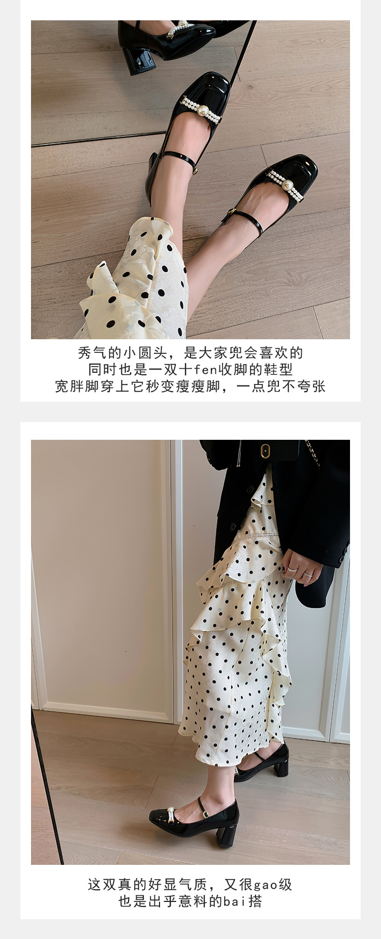 YLY&A653-1绝美粗跟珍珠蝴蝶结玛丽珍小皮鞋法式红色单鞋女2025新款气质 商品图2