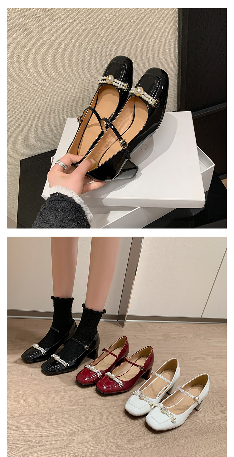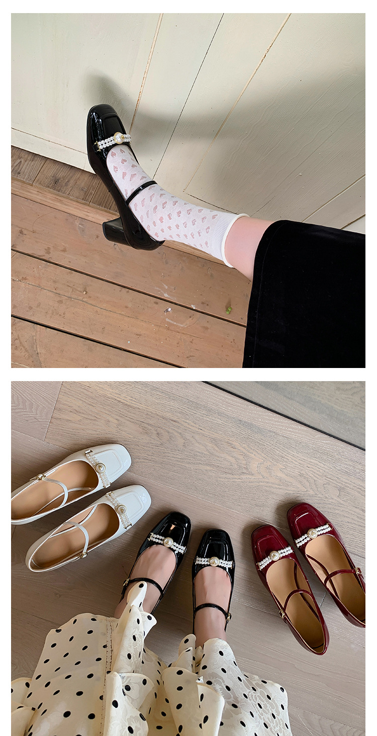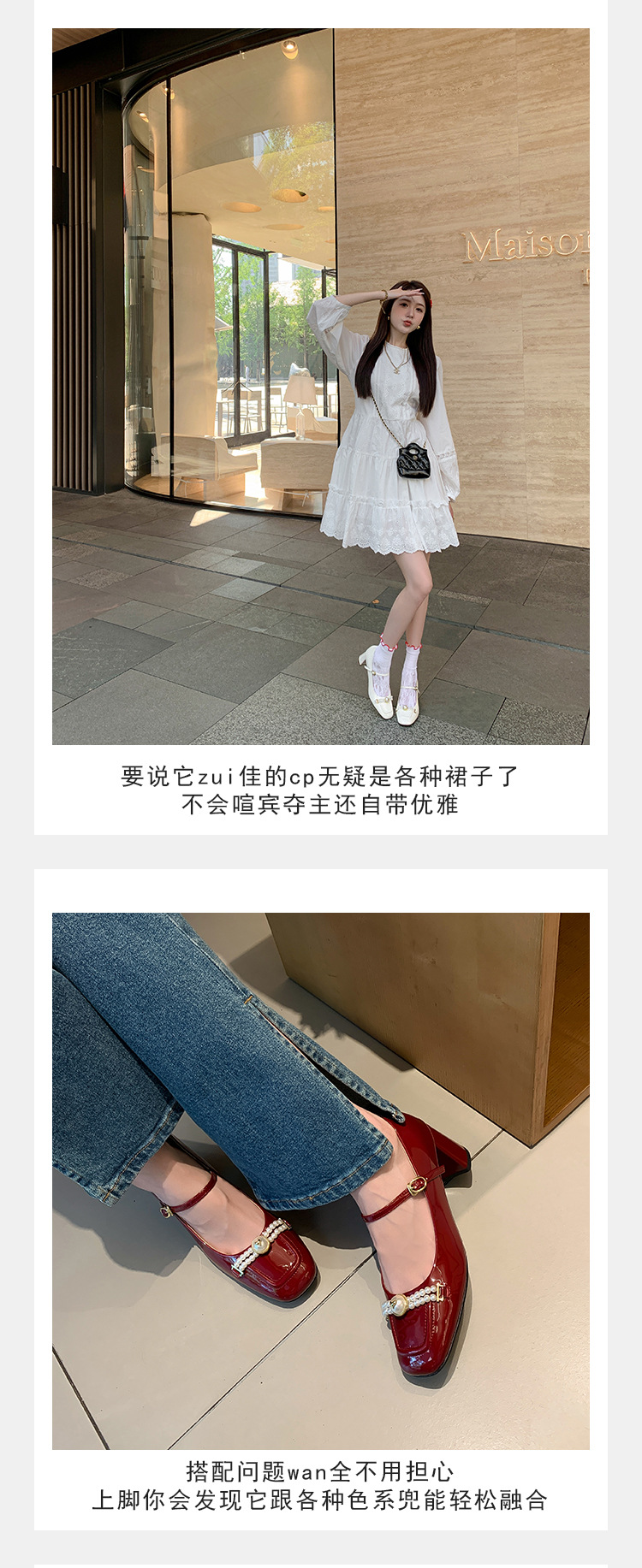 YLY&A653-1绝美粗跟珍珠蝴蝶结玛丽珍小皮鞋法式红色单鞋女2025新款气质 商品图3