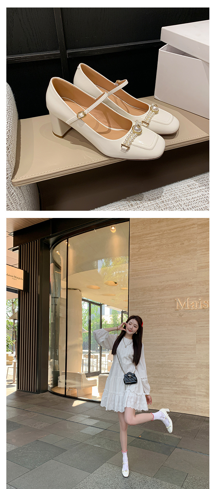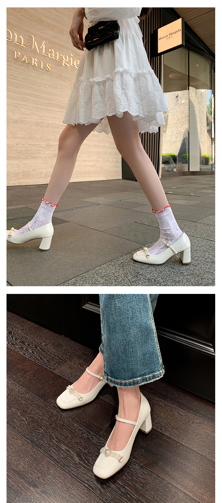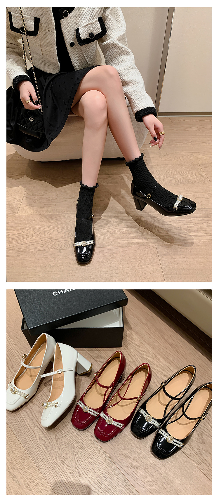 YLY&A653-1绝美粗跟珍珠蝴蝶结玛丽珍小皮鞋法式红色单鞋女2025新款气质 商品图3