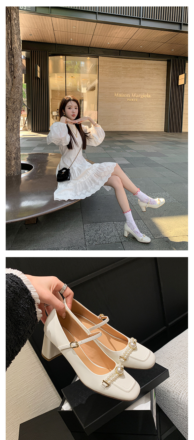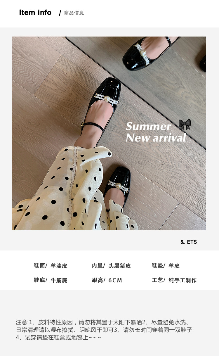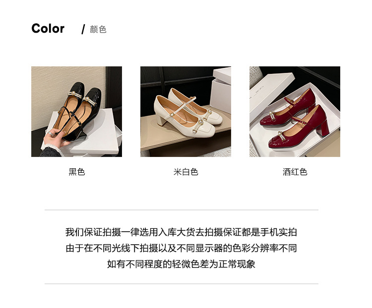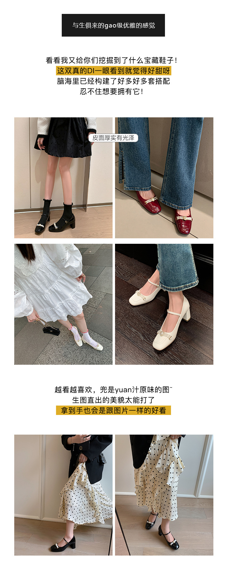 YLY&A653-1绝美粗跟珍珠蝴蝶结玛丽珍小皮鞋法式红色单鞋女2025新款气质 商品图4