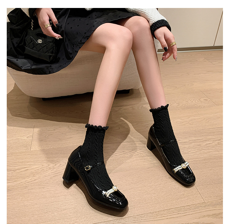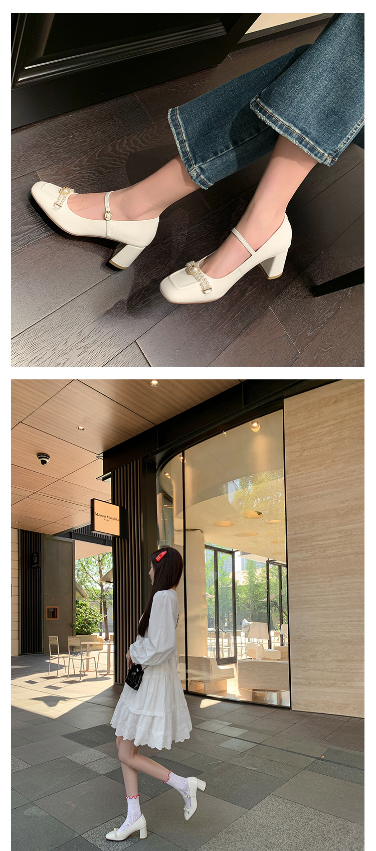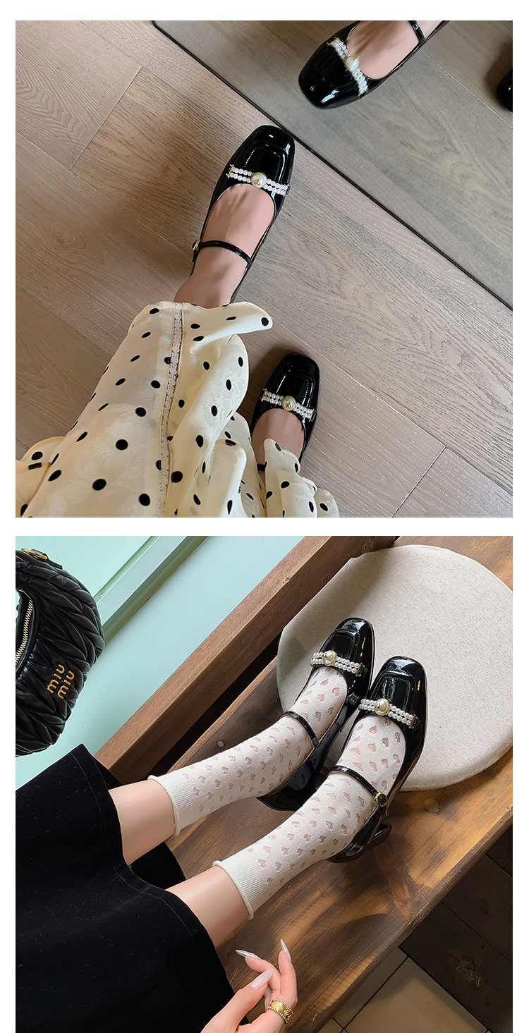 YLY&A653-1绝美粗跟珍珠蝴蝶结玛丽珍小皮鞋法式红色单鞋女2025新款气质 商品图4