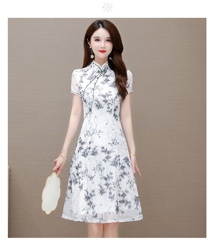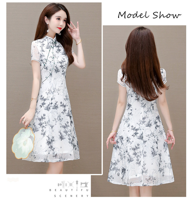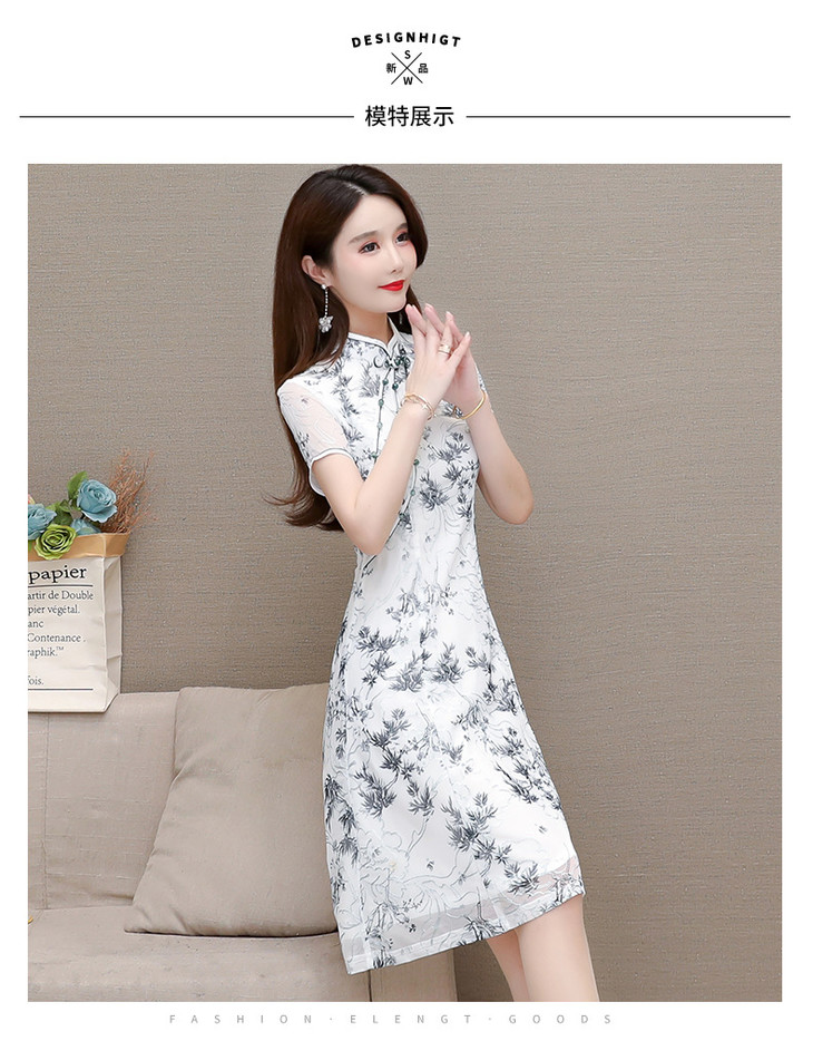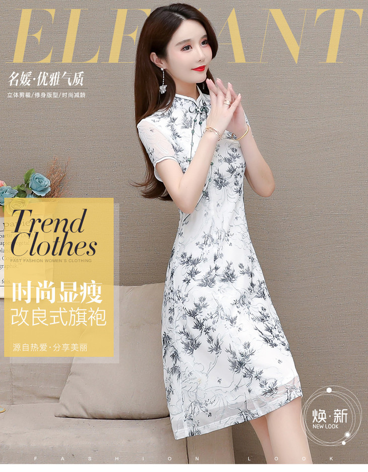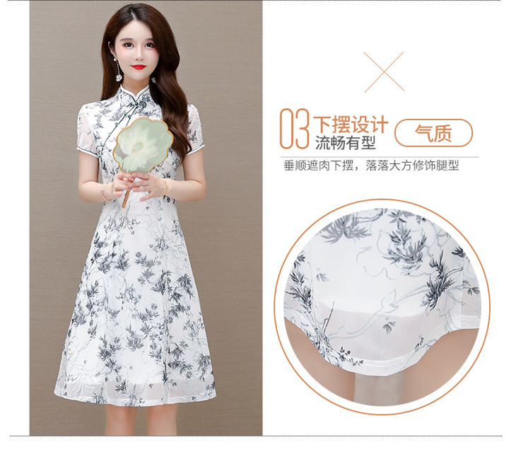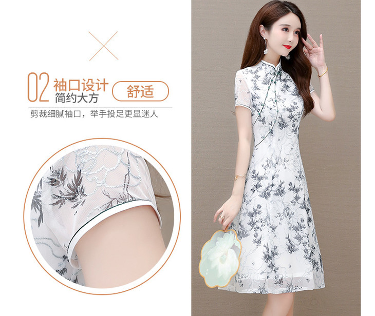 WE YNX2126印花改良版旗袍裙子2022夏装新款修身气质大码短袖连衣裙女中长款