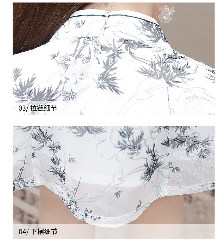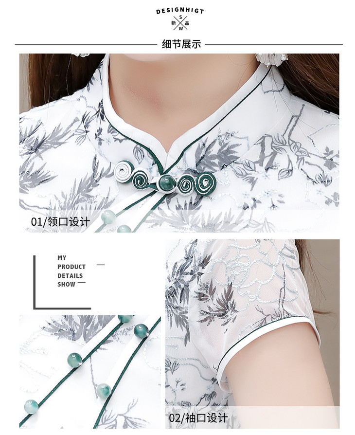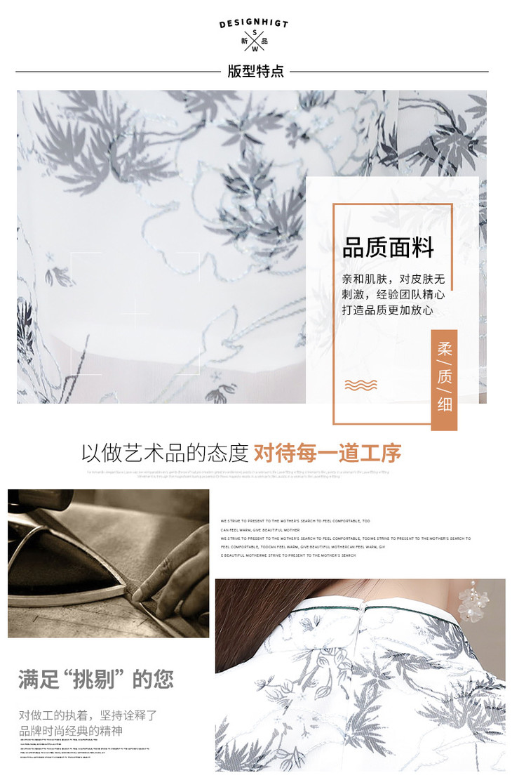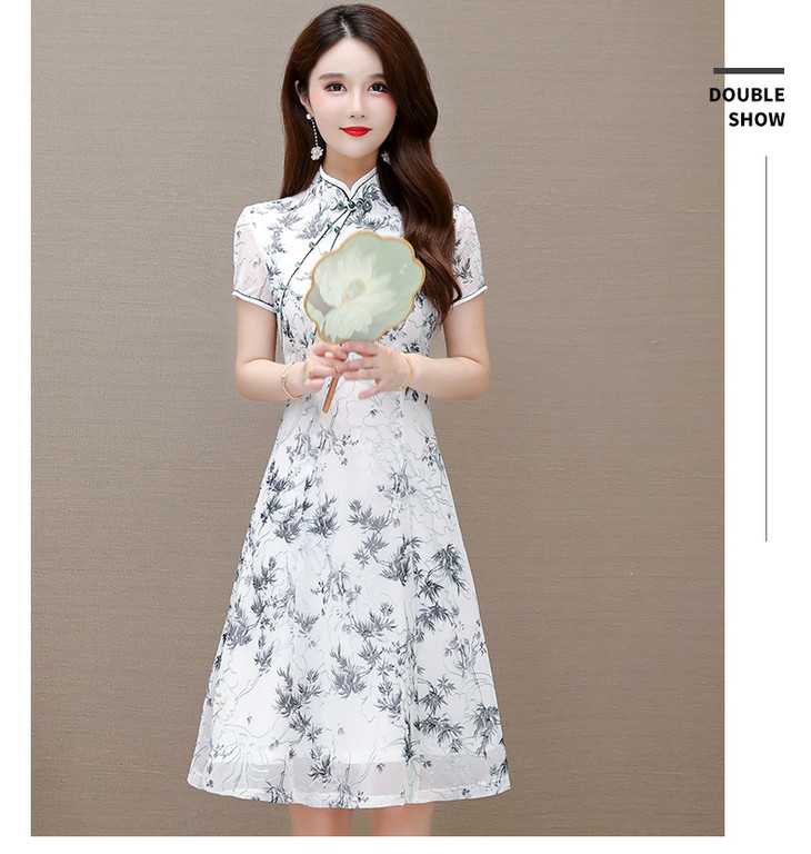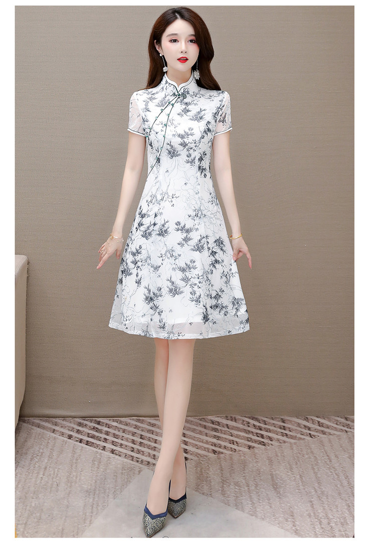 WE YNX2126印花改良版旗袍裙子2022夏装新款修身气质大码短袖连衣裙女中长款