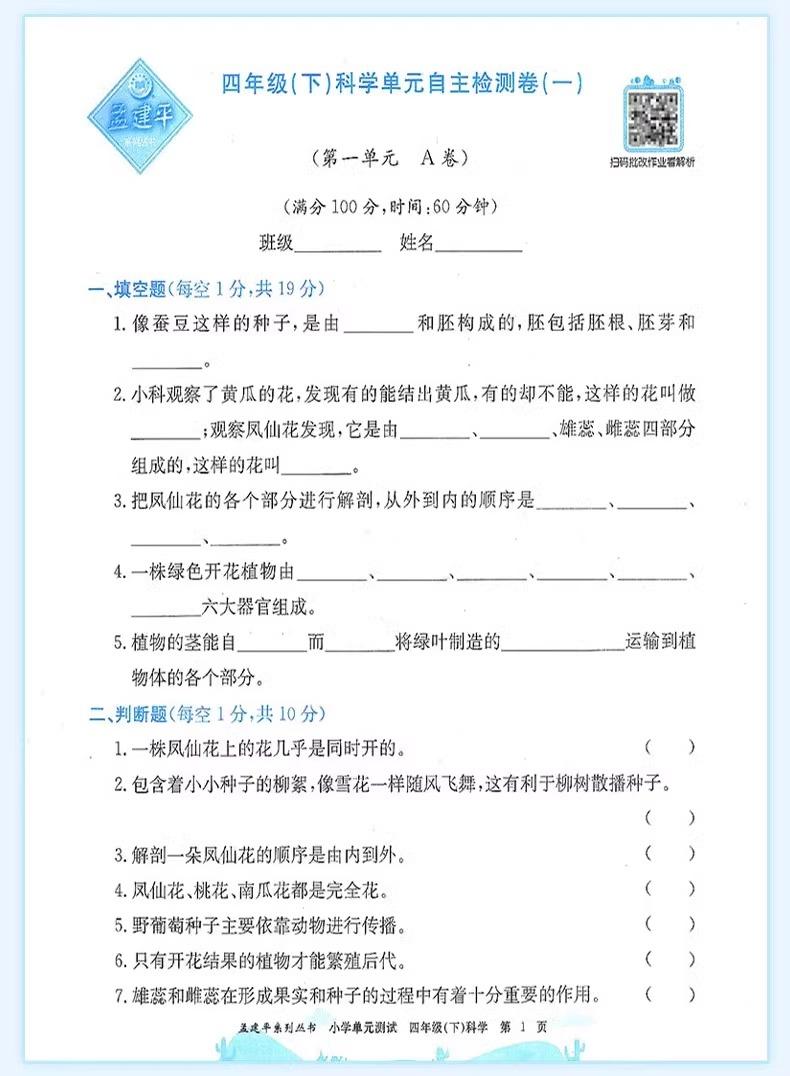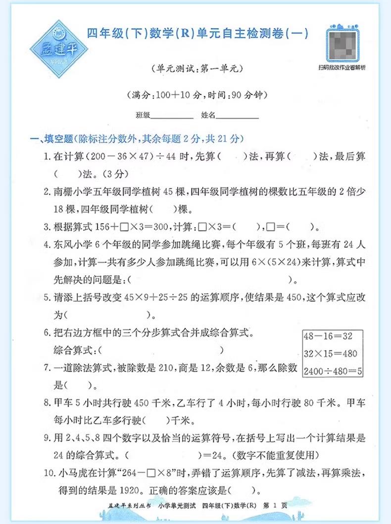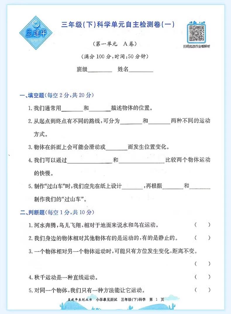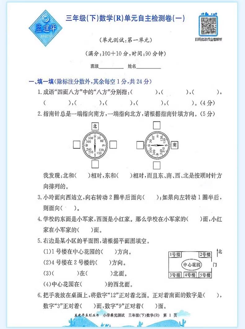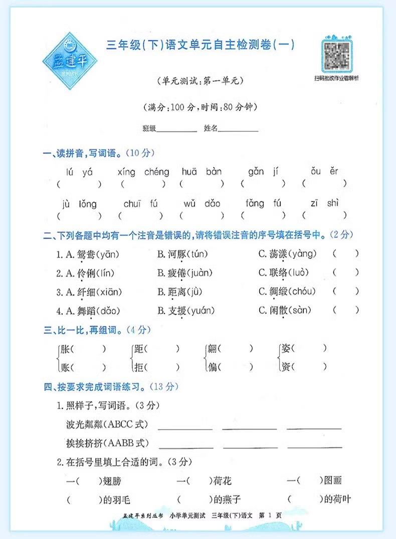 24秋孟建平小学单元测试卷上册同步单元练习卷