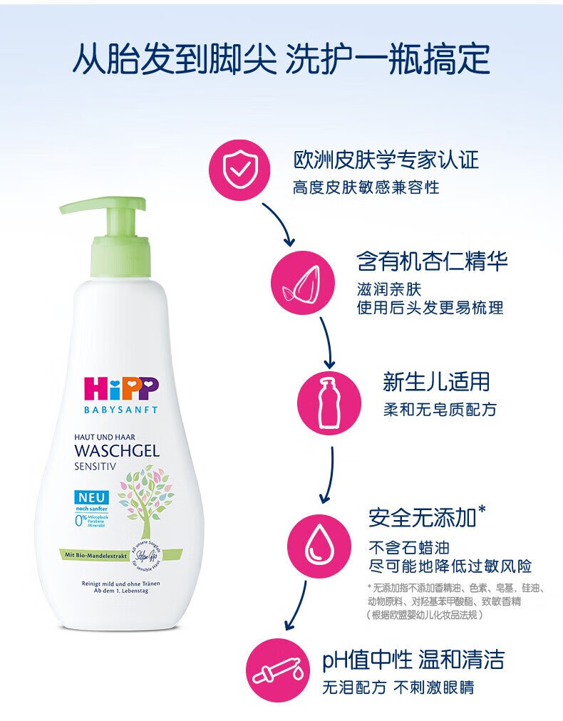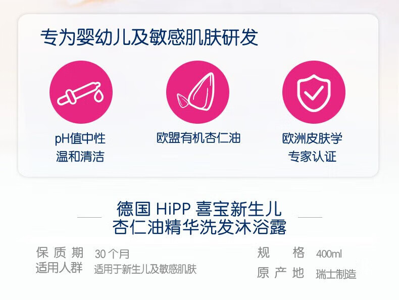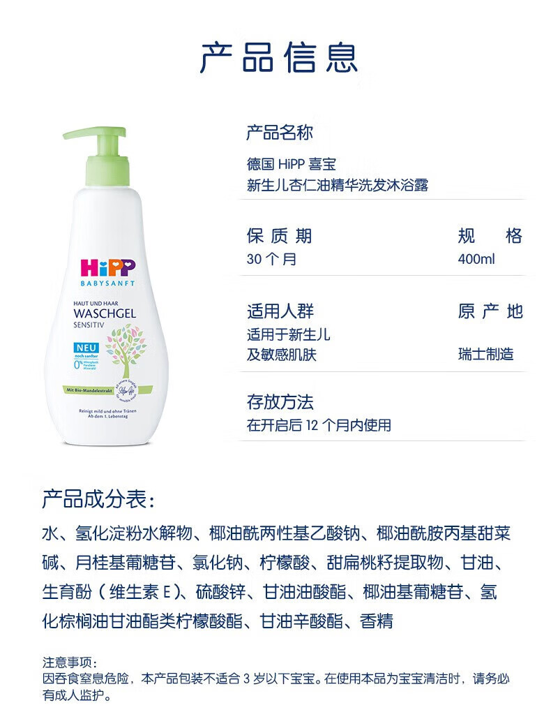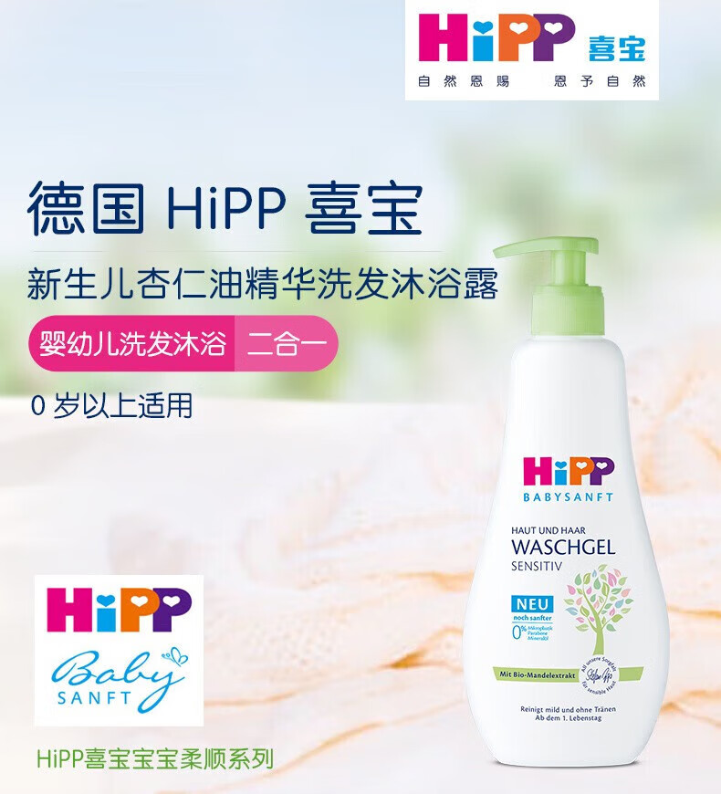 德国喜宝Hipp 婴幼儿洗发沐浴二合一 温和无泪配方 400ml 跨境购
