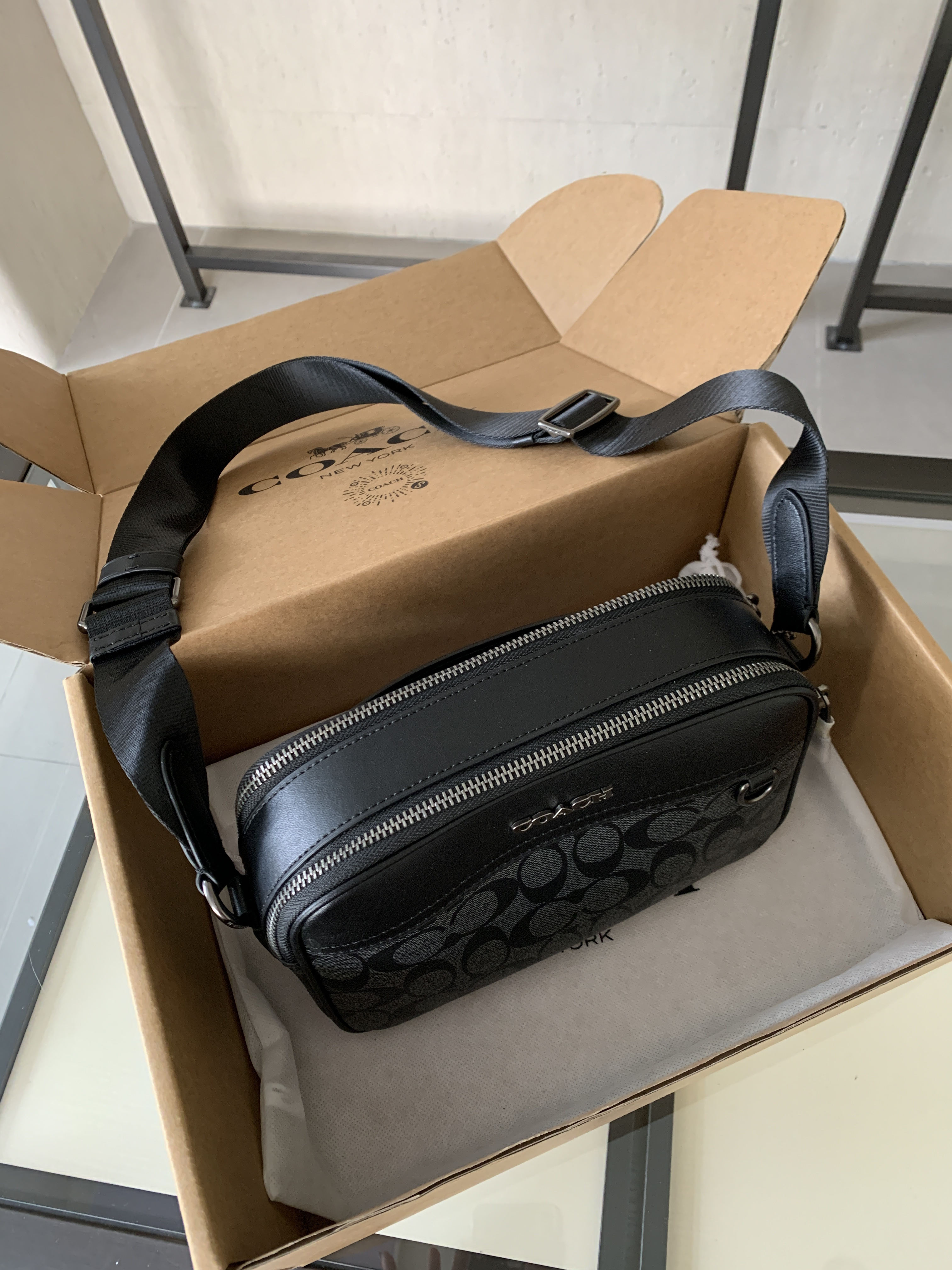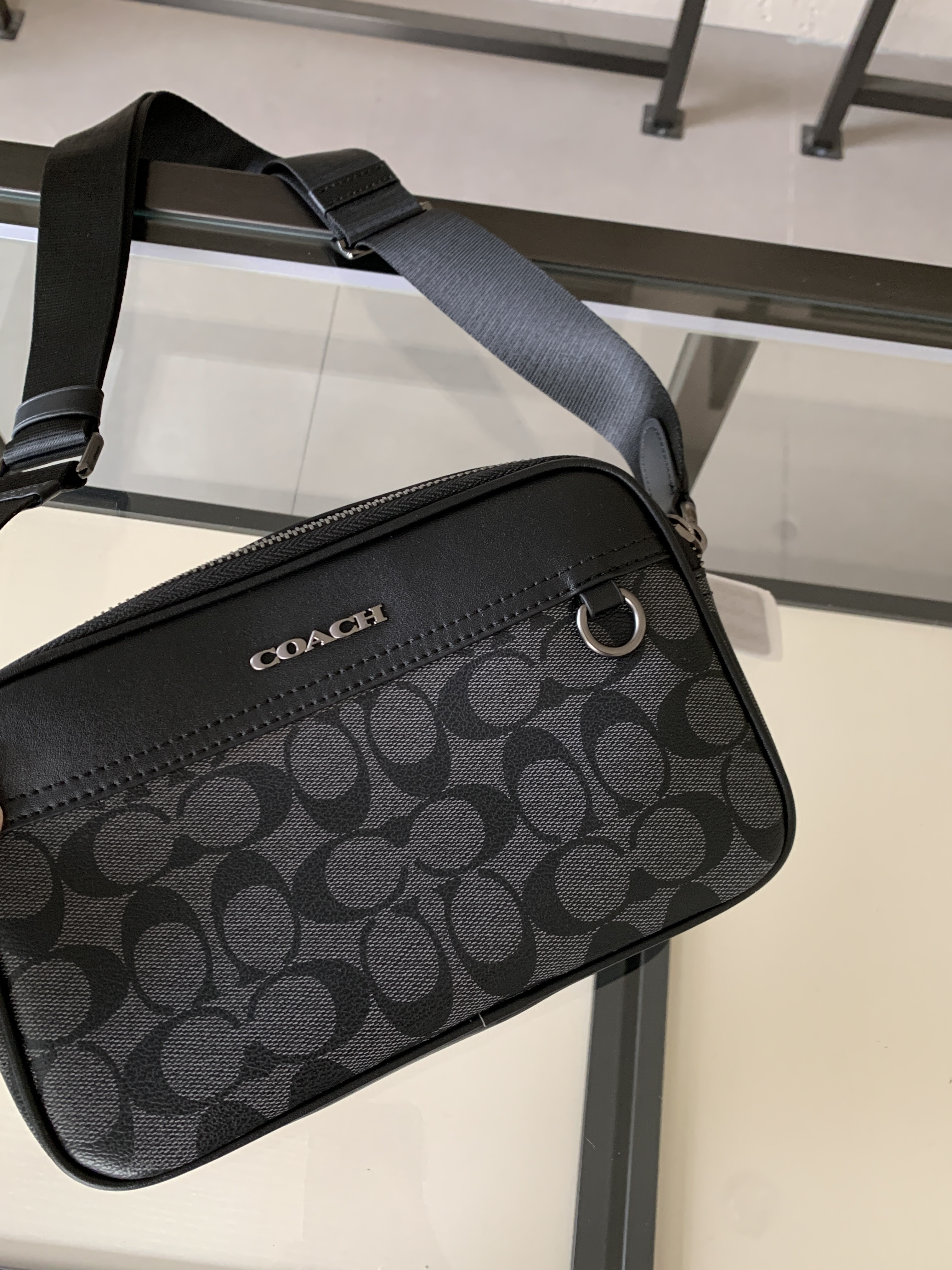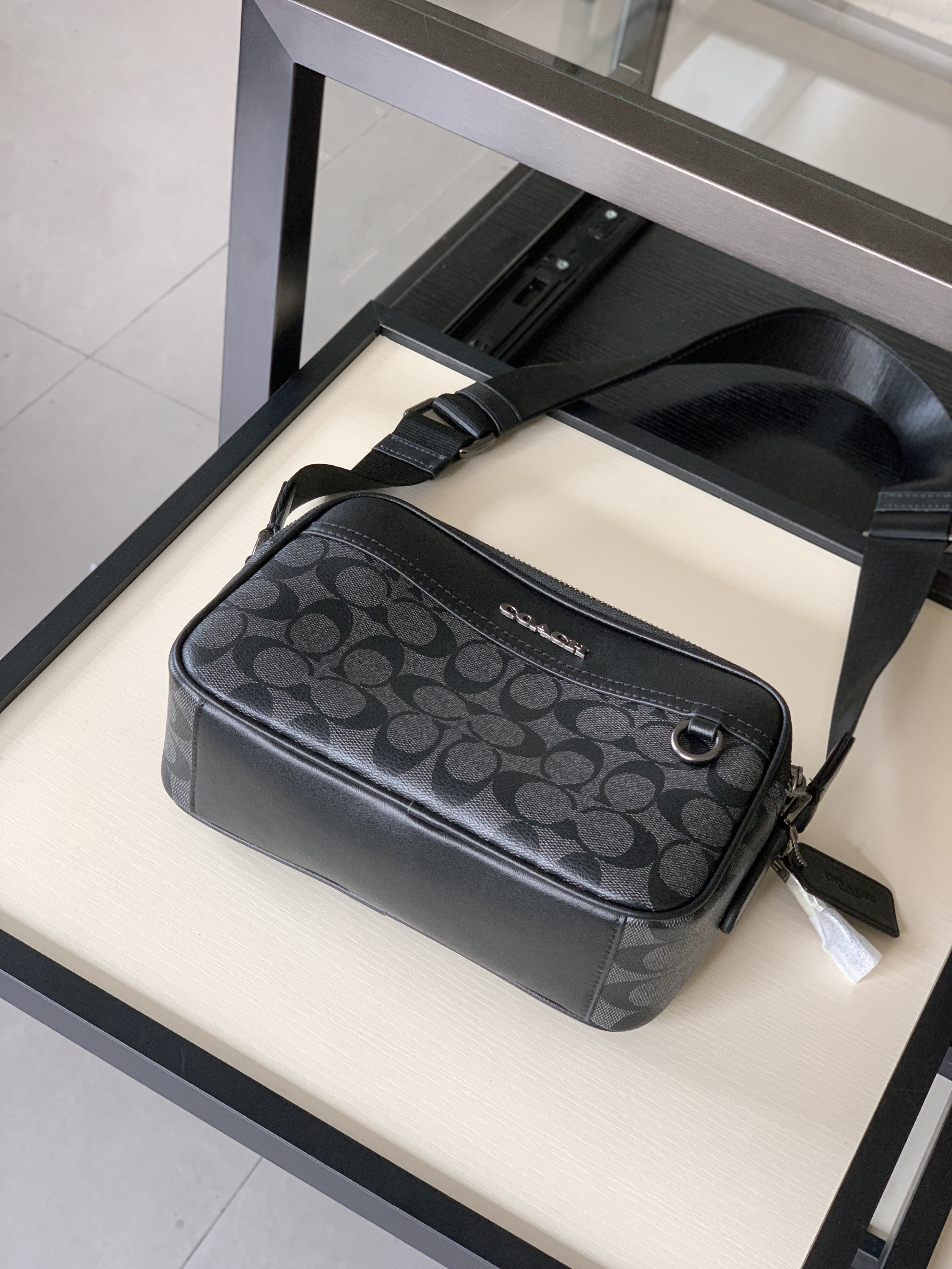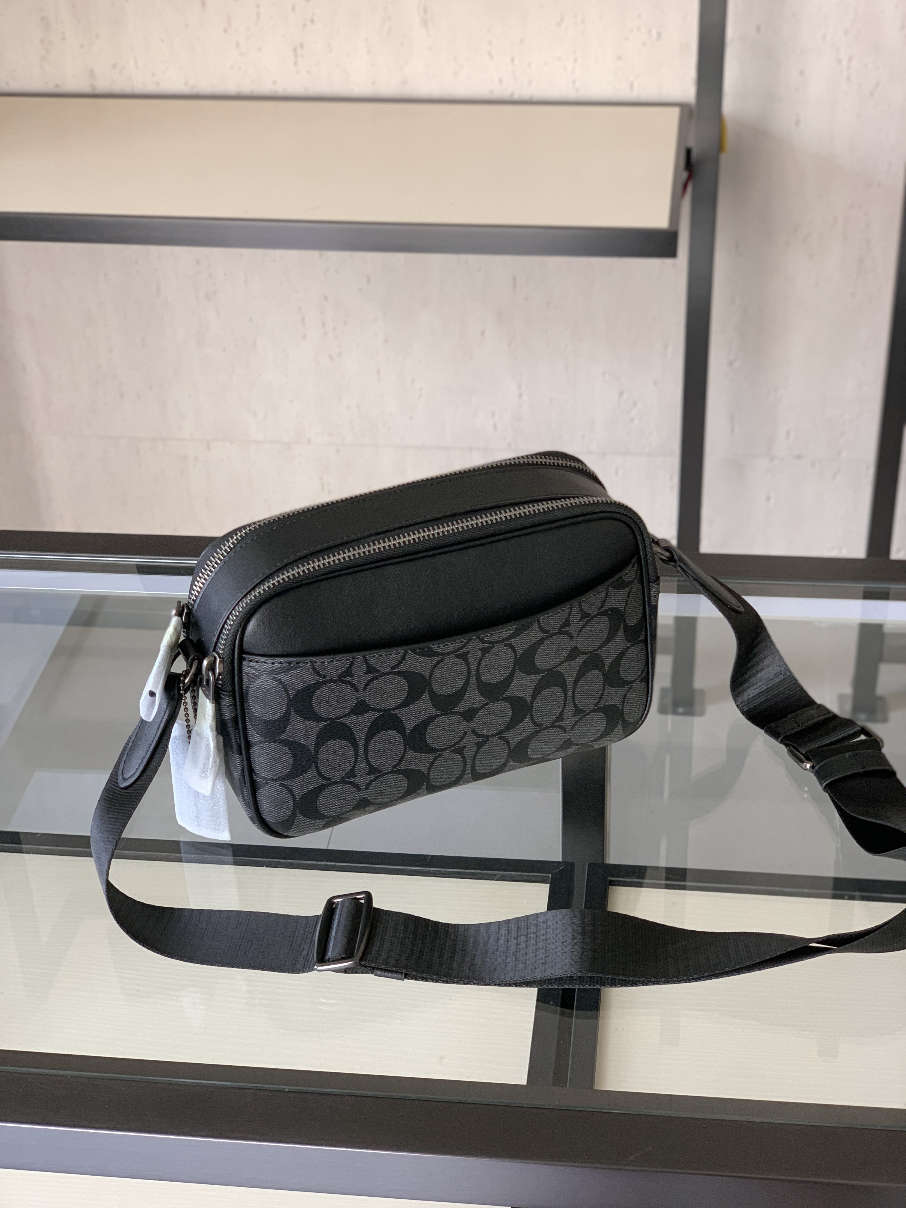 🔥升级版,双拉链❗️两个隔层可以分类放置物品!🌟肩带可调节‼️斜挎、单肩都可以🌟可商务、可休闲,非常百搭❗️炭黑色C印花 经典耐看,男生礼物推荐❤️🔥