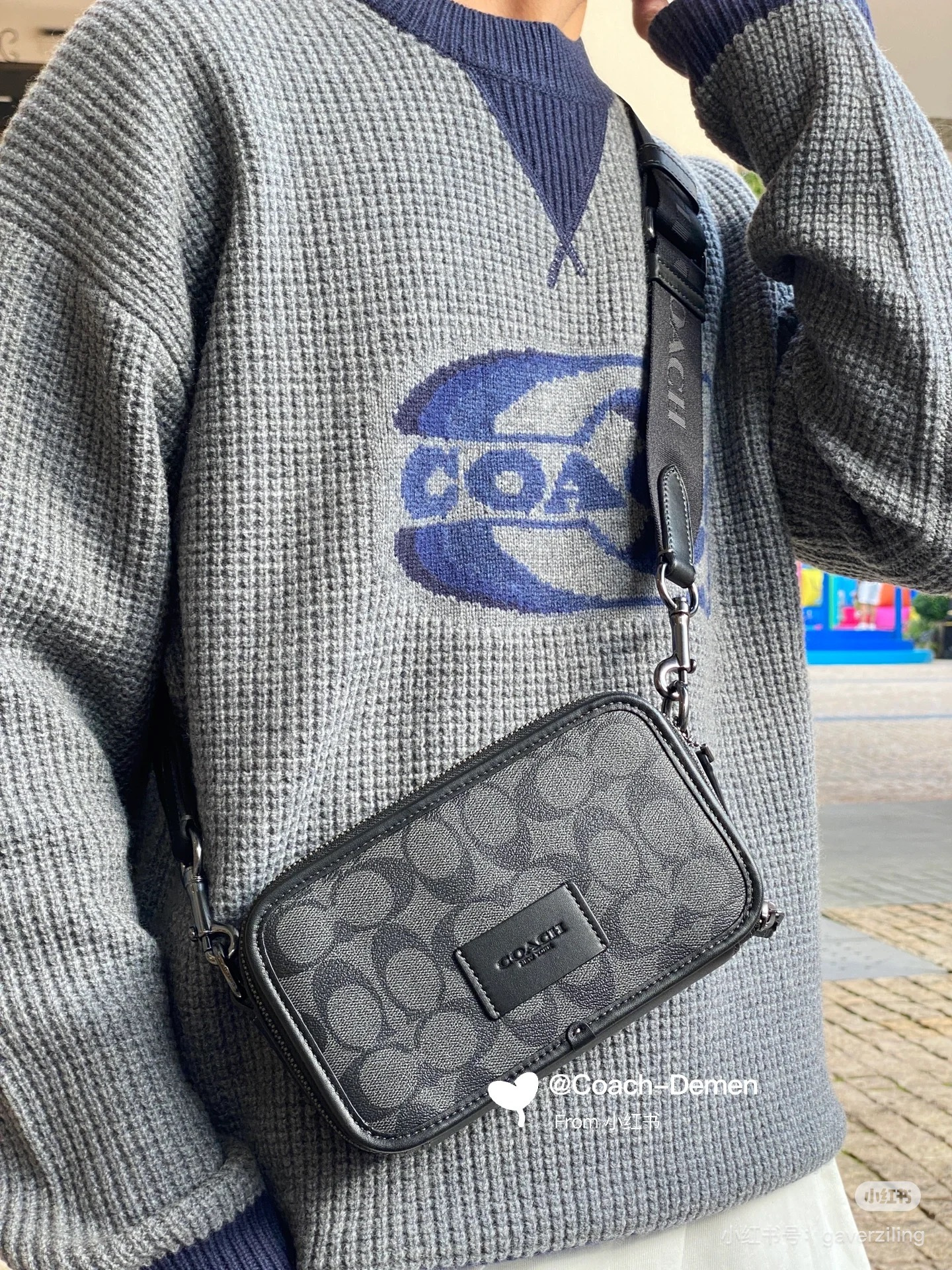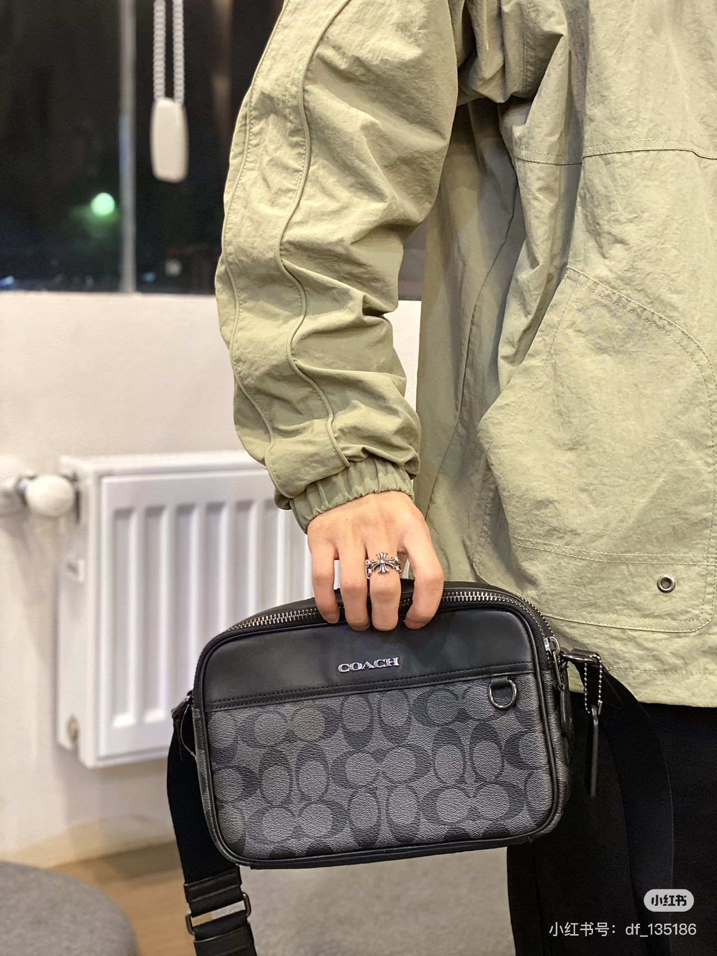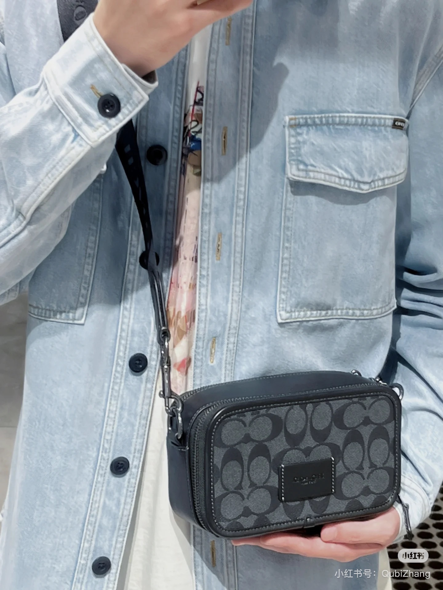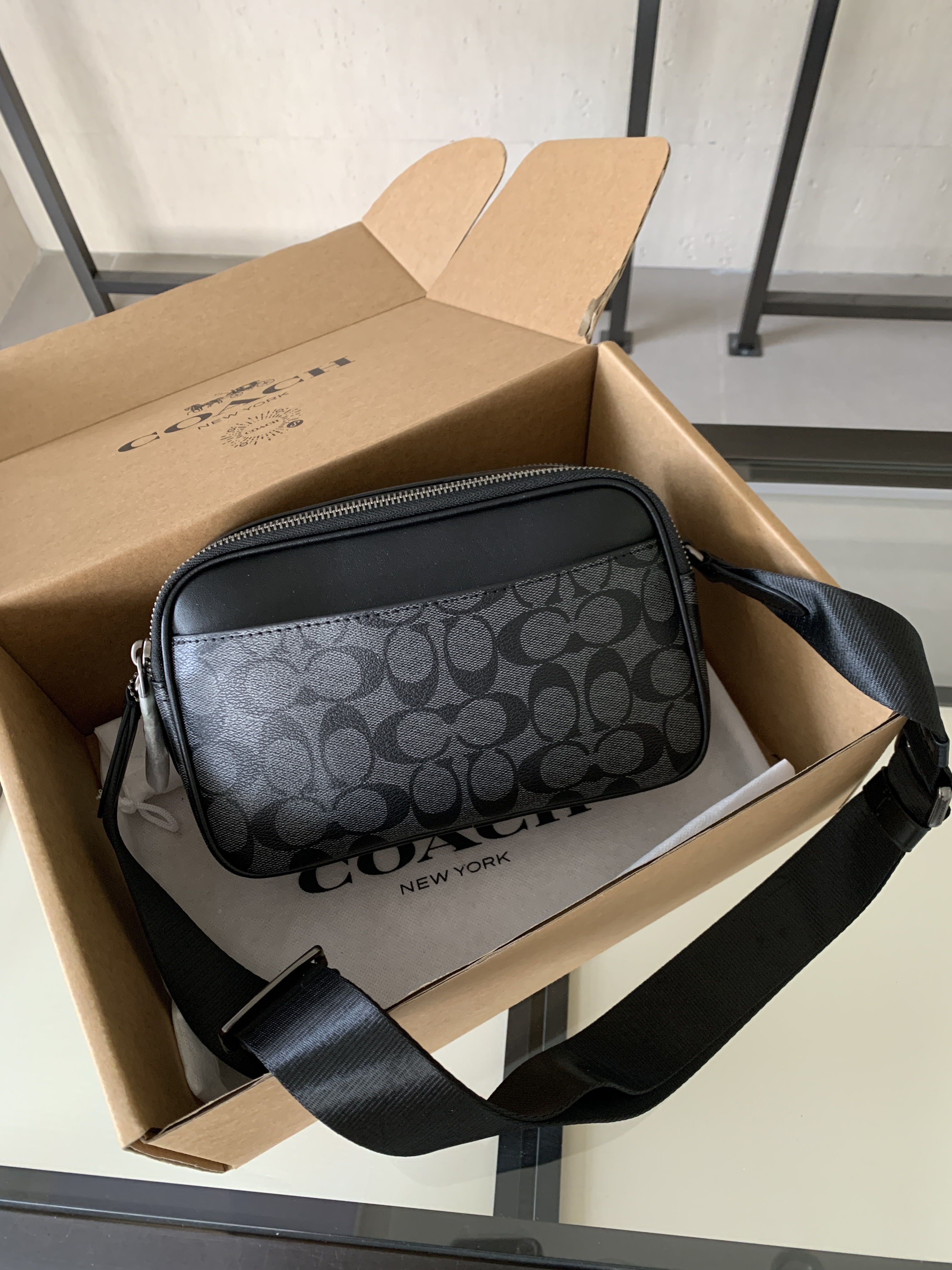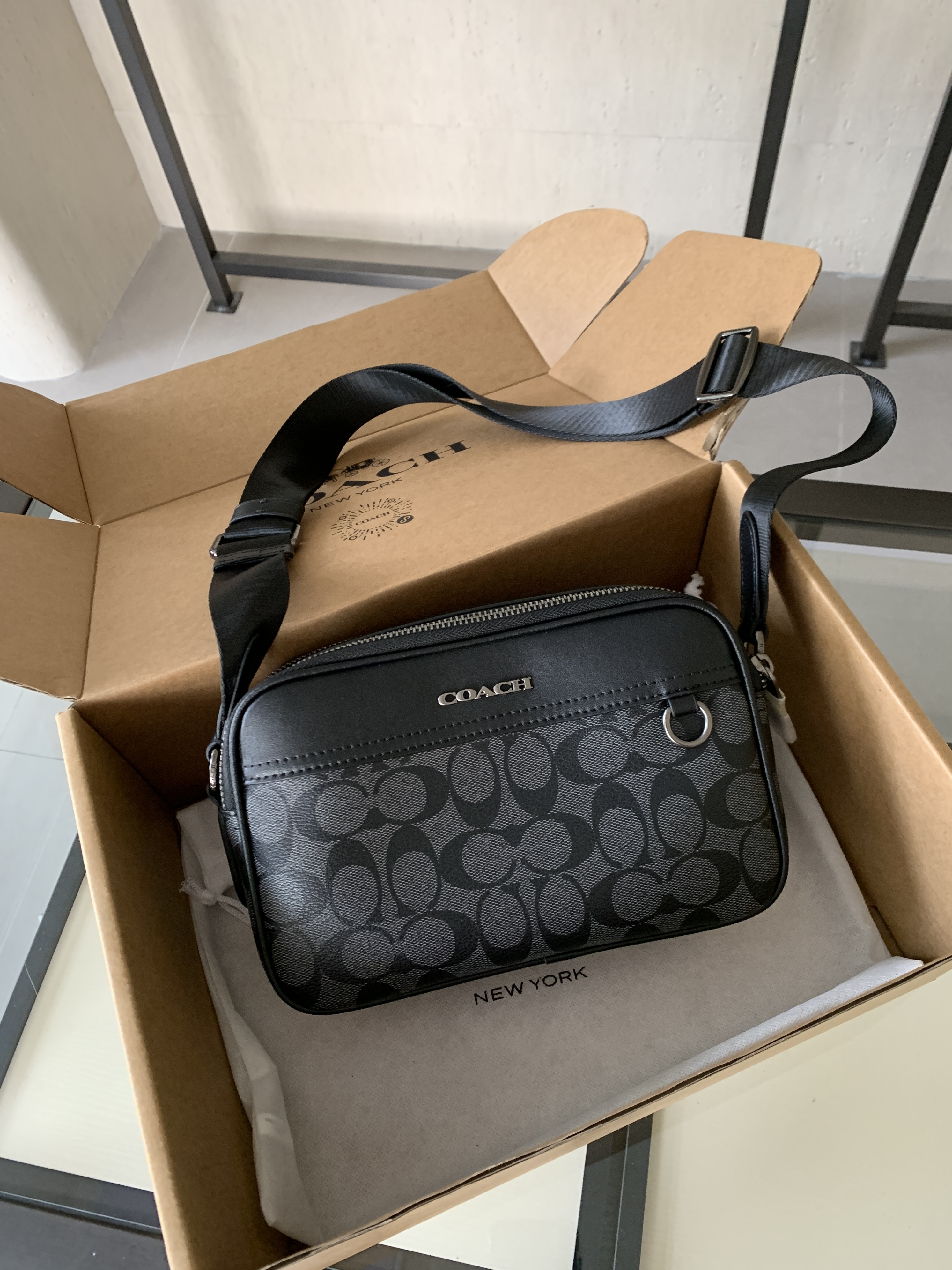 🔥升级版,双拉链❗️两个隔层可以分类放置物品!🌟肩带可调节‼️斜挎、单肩都可以🌟可商务、可休闲,非常百搭❗️炭黑色C印花 经典耐看,男生礼物推荐❤️🔥