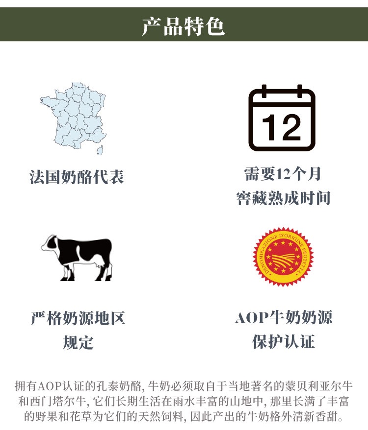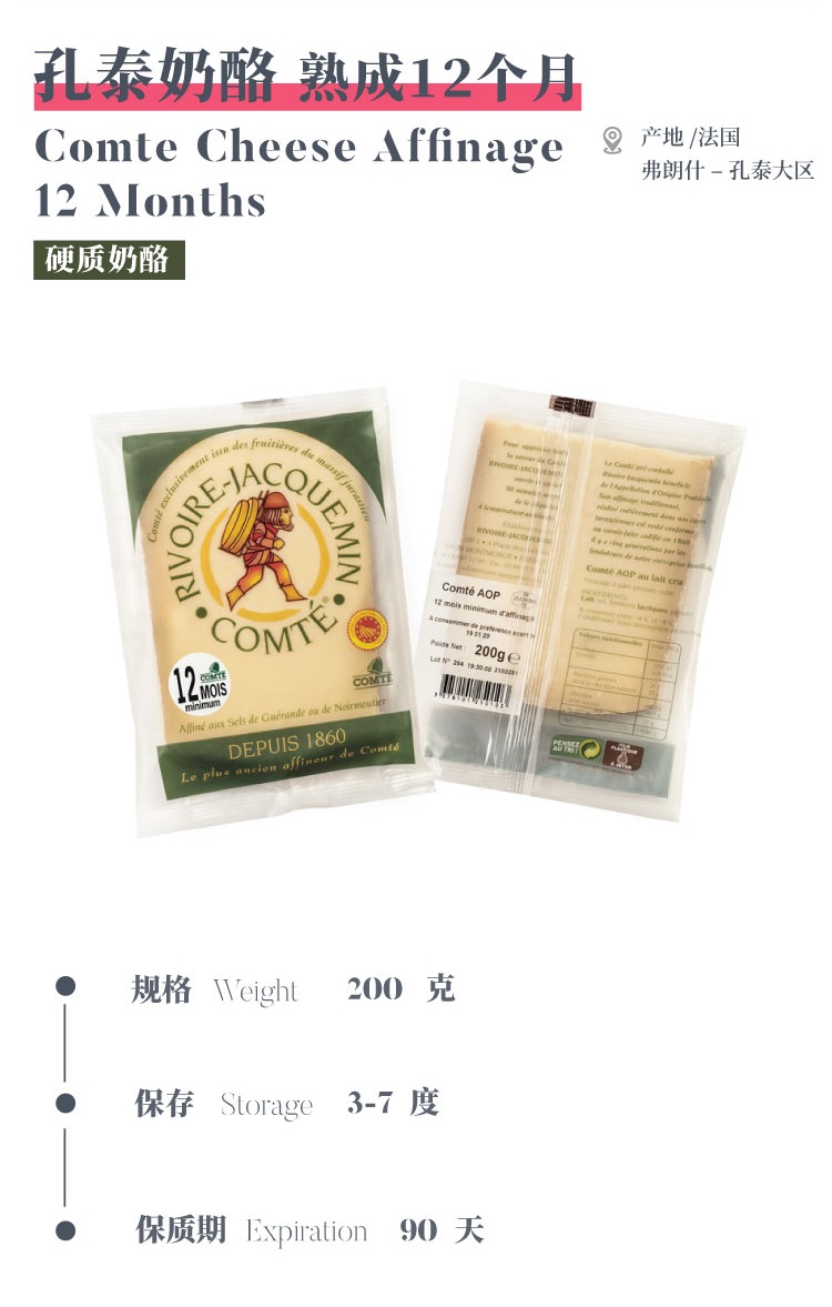 法国国民奶酪 孔泰奶酪 Comte 200g 浓郁奶香 经典硬质奶酪坚果味