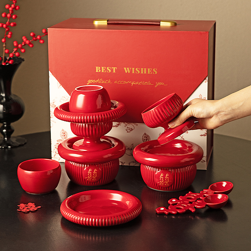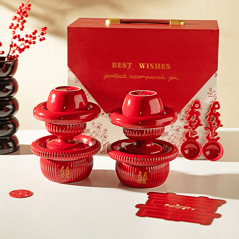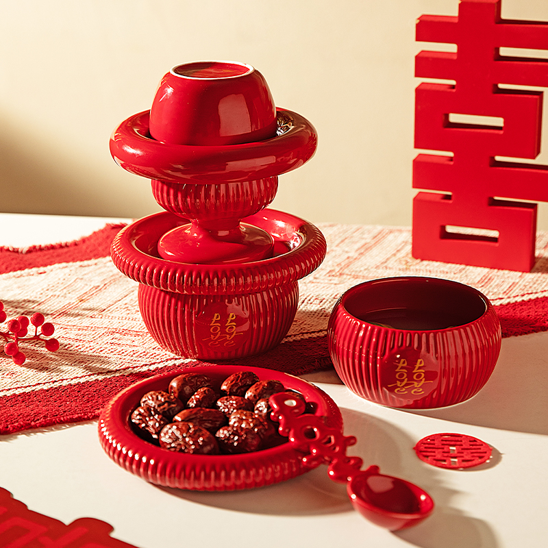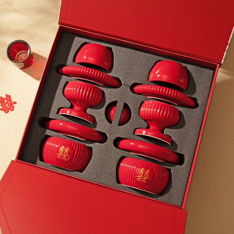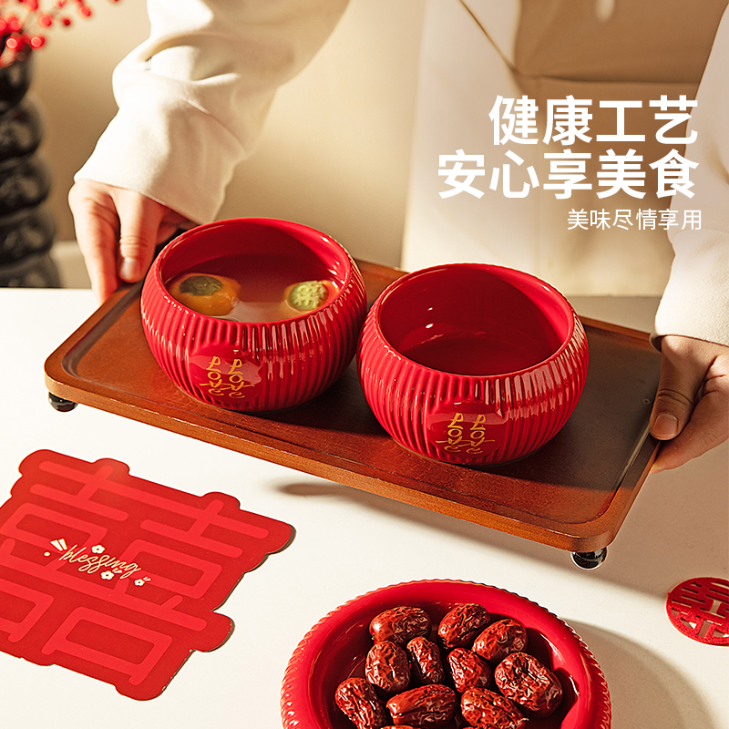 摩登主妇餐具碗碟套装结婚改口敬茶杯一对喜碗红色新婚礼物送新人