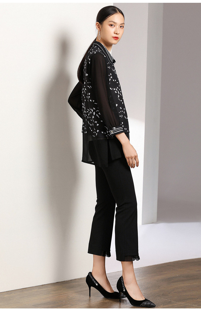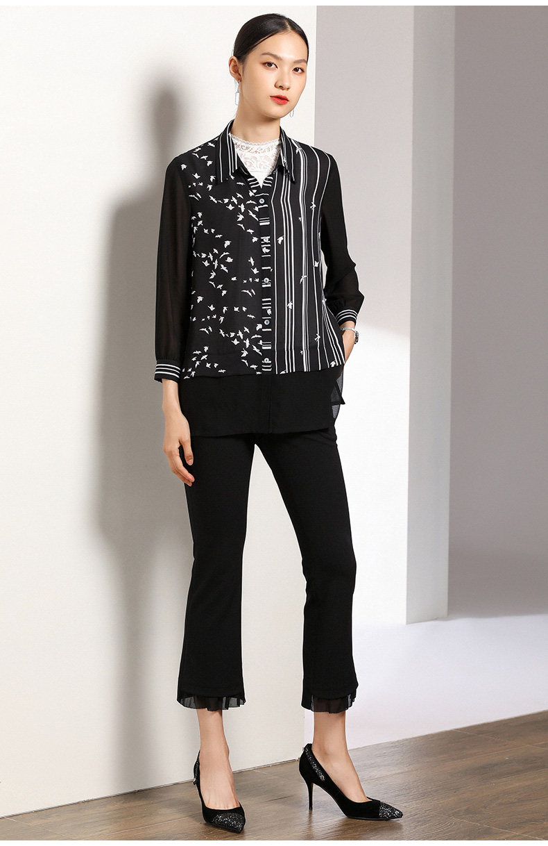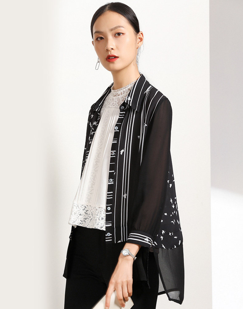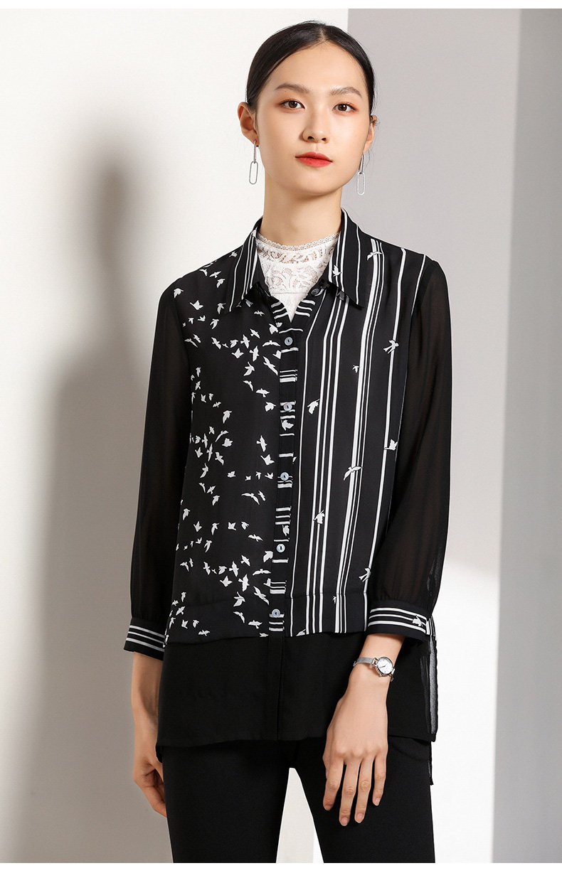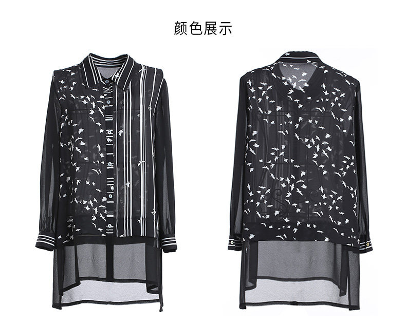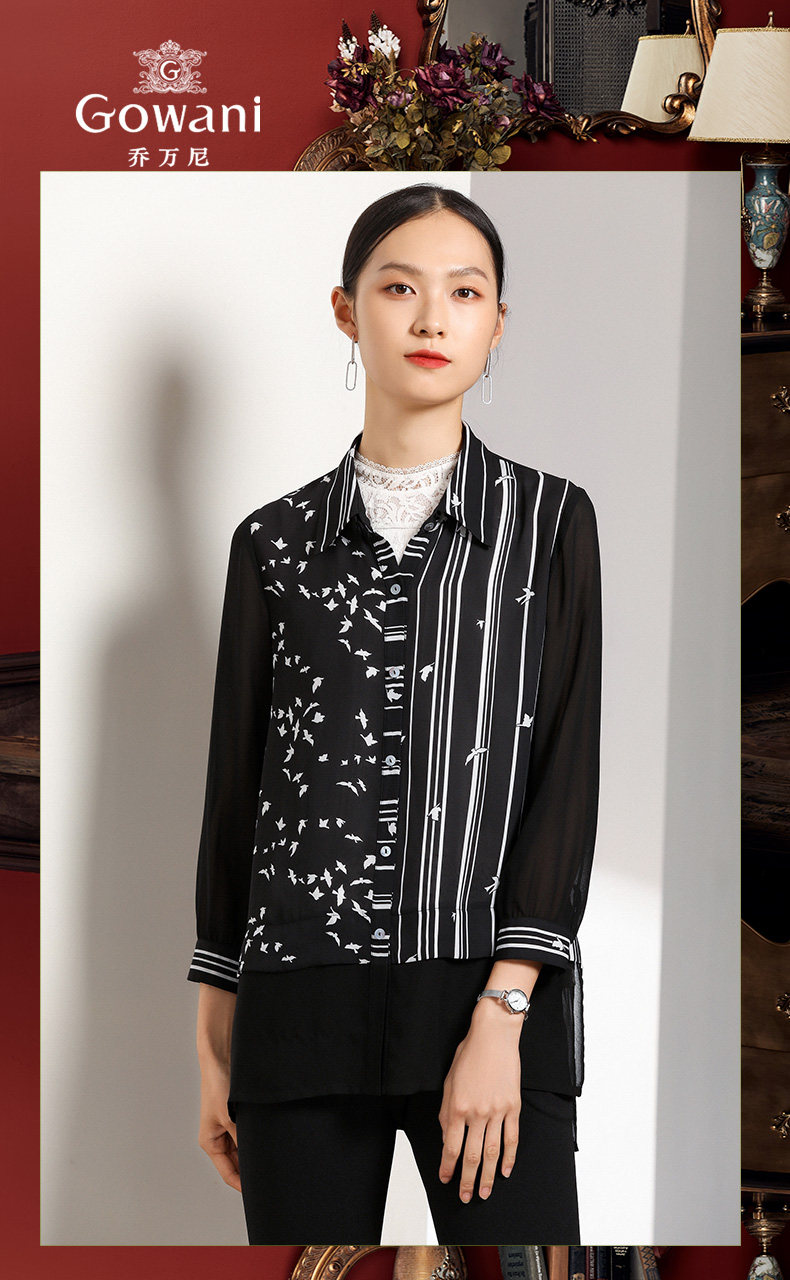 乔万尼初秋上衣设计感港风宽松直筒印花长袖衬衫EN3C350