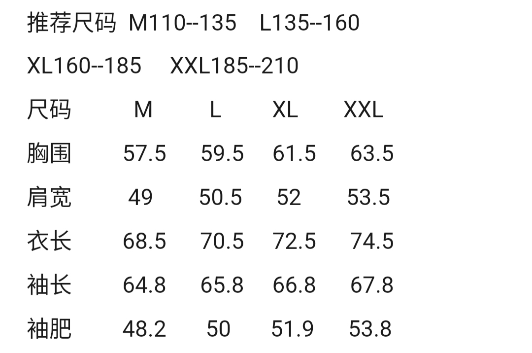 尺码 M L XL XL