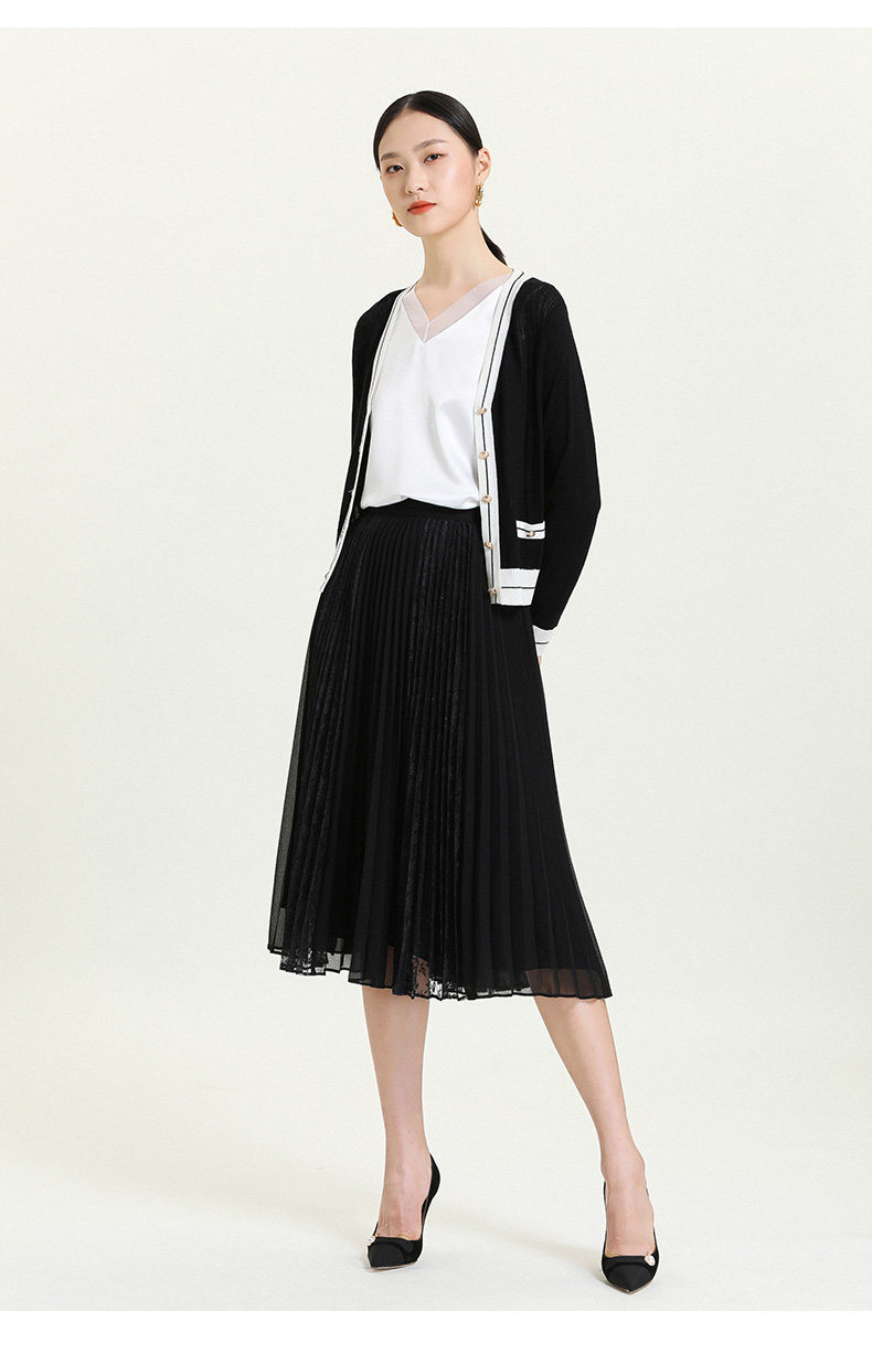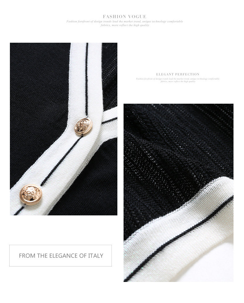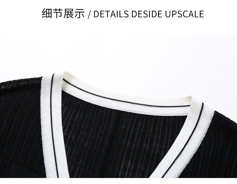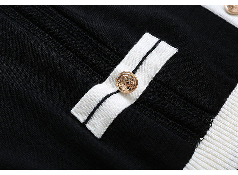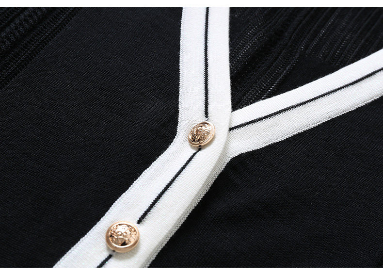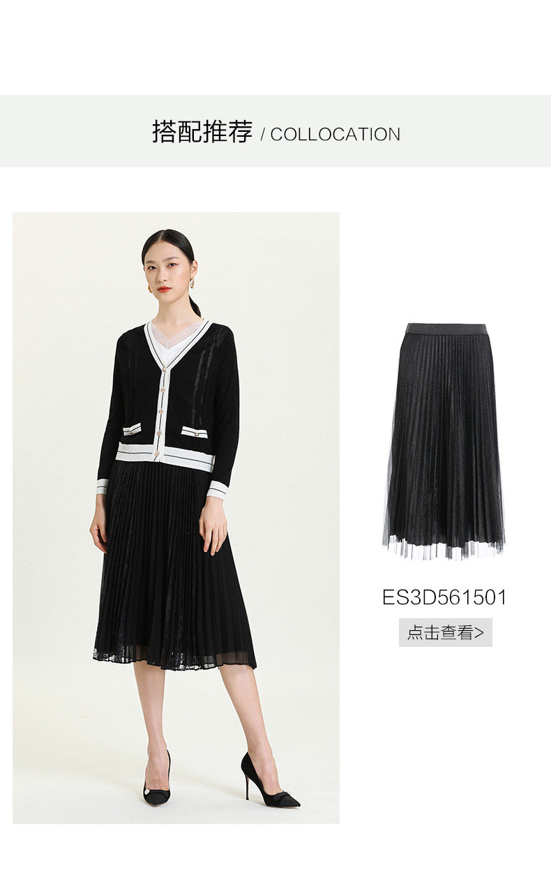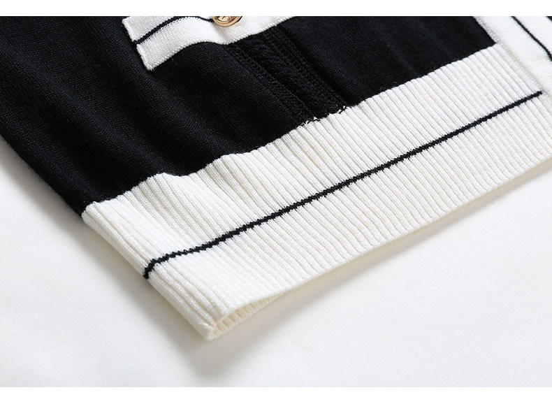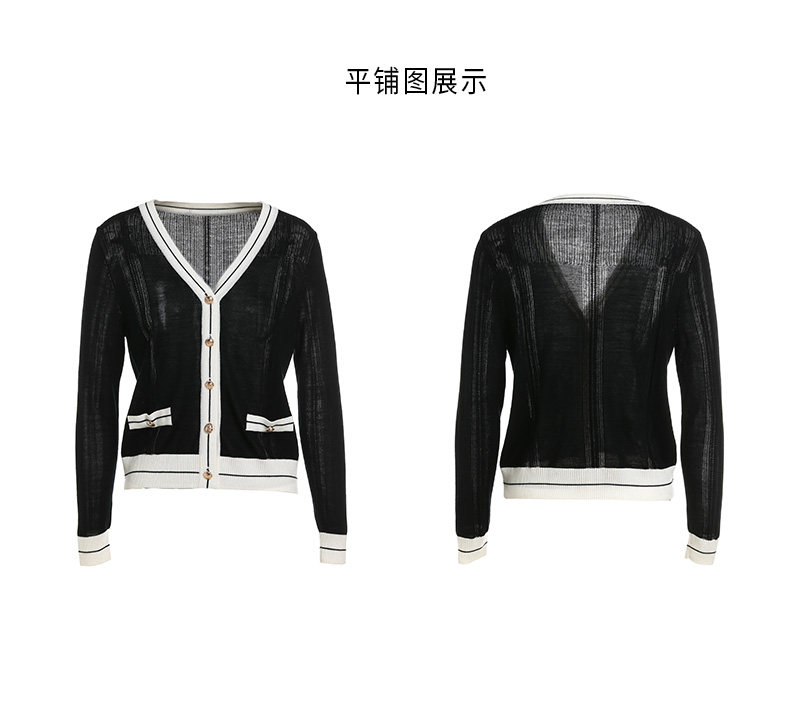 乔万尼秋季新款小香风气质V领针织开衫拼接色百搭设计感外套ES3M589