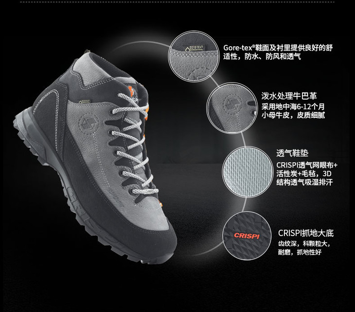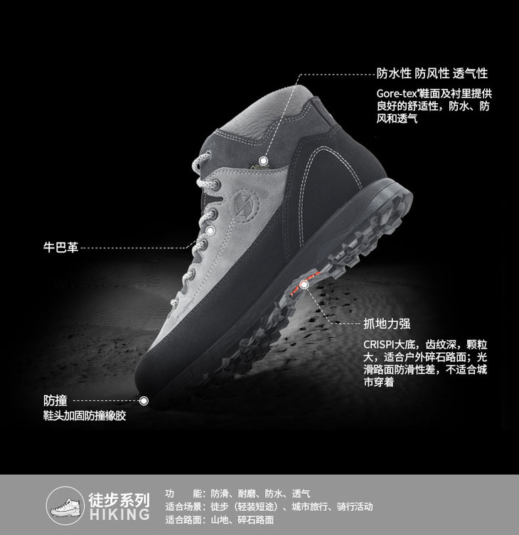 CRISPI Hemera Mid GTX 中性款户外防水减震耐磨徒步鞋跑马拉松比赛越野跑步耐力跑训练慢跑健身徒步运动