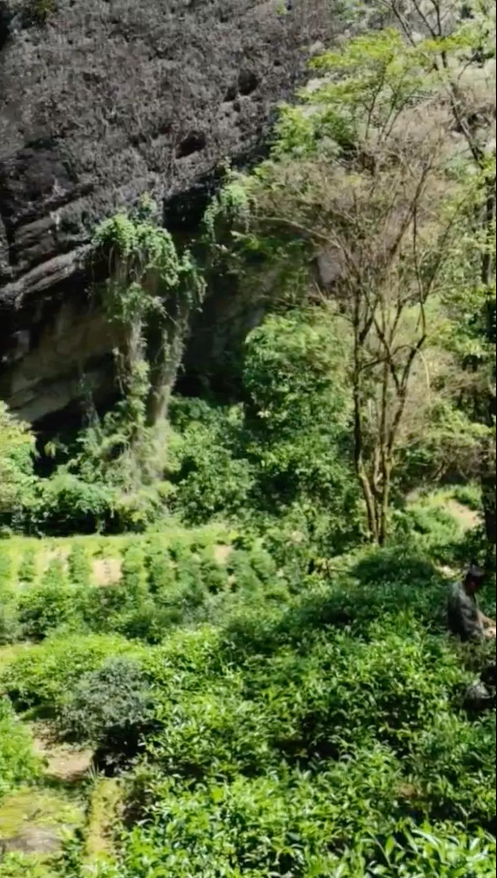 斑竹窠作为武夷岩茶核心山场,茶园地处风景区之内但又远离喧嚣,隐逸一方,幽然独立。峡谷两侧V形岩壁,光照较好,独特小微生态环境,更有利于茶叶品质。
