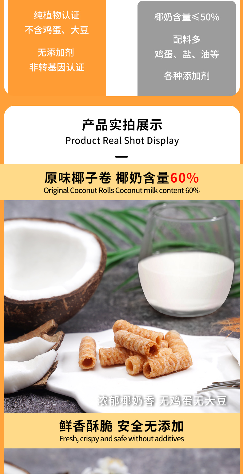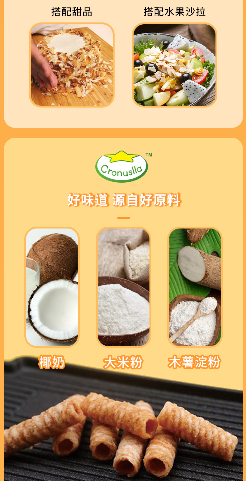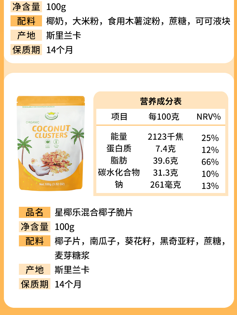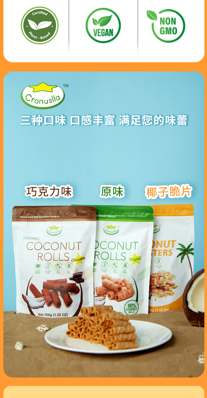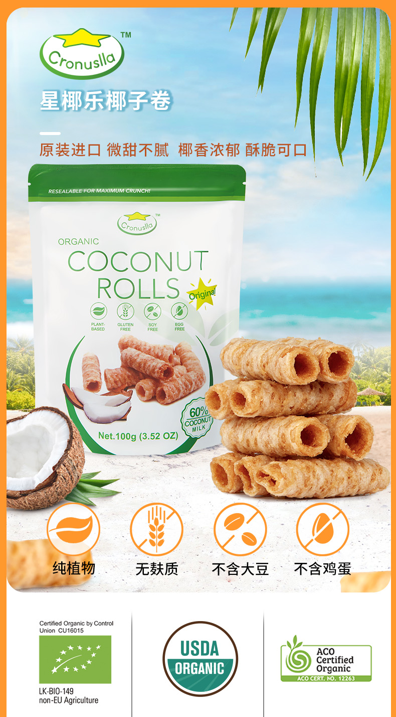 斯里兰卡有机椰子卷椰子片 无麸质无蛋奶非油炸零食