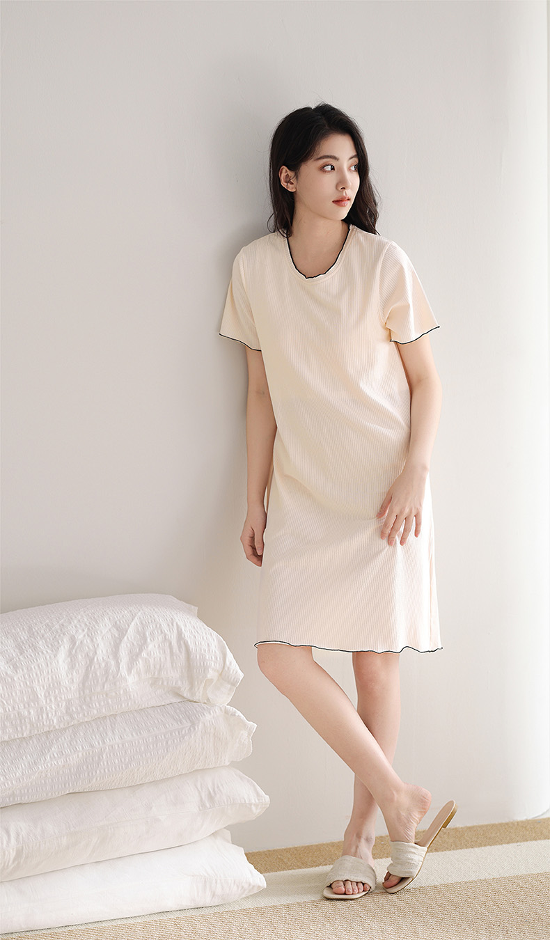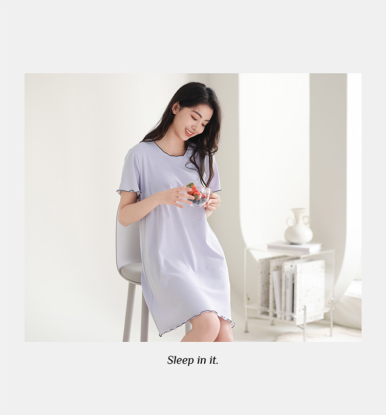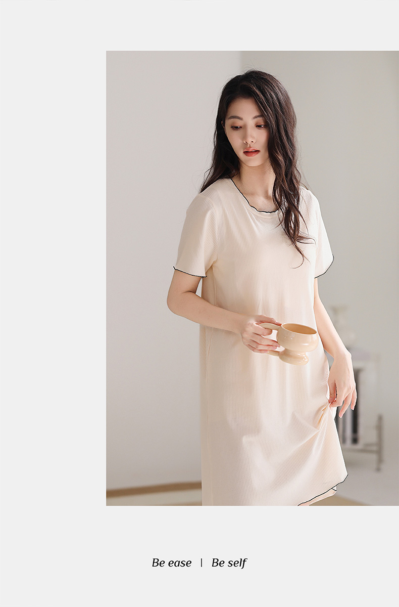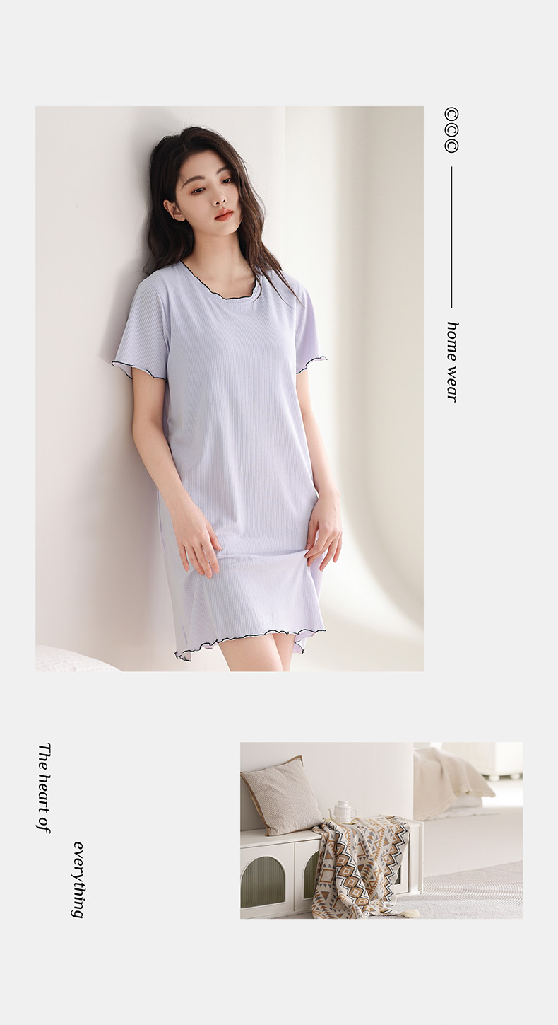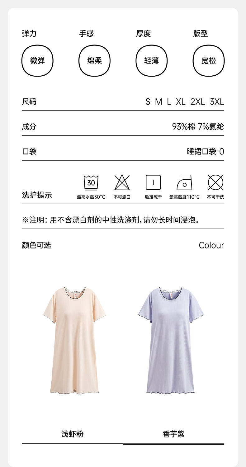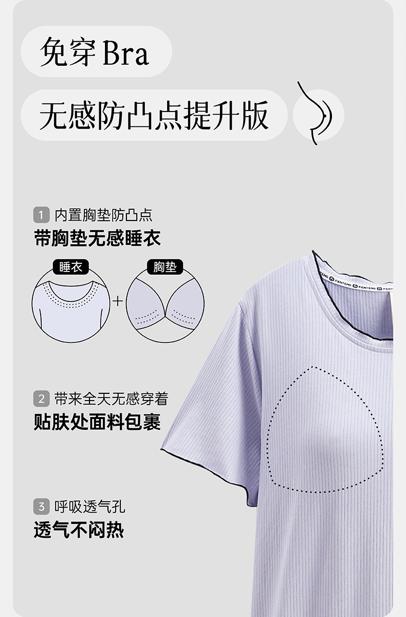 芬腾睡衣带胸垫一体薄款女款爆款裙子防凸点夏季透气法式连衣裙